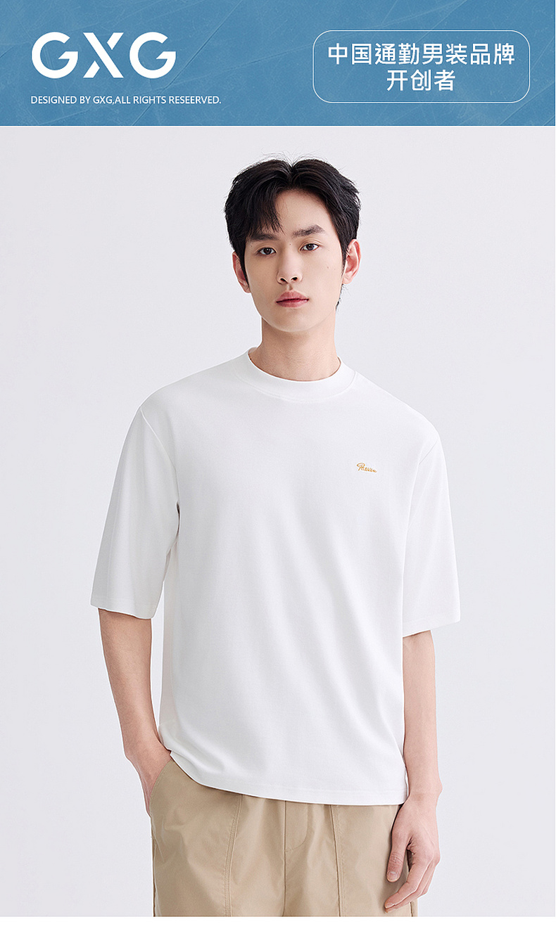 GXG男装 圆领T恤全身满印上衣短袖针织 休闲简约短袖T恤 2025夏季热卖