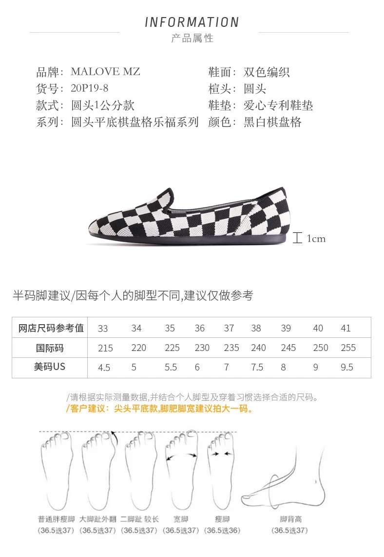 【哆啦】MALOVE MZ圆头平底菱形格乐福鞋BT138A/BT158A
