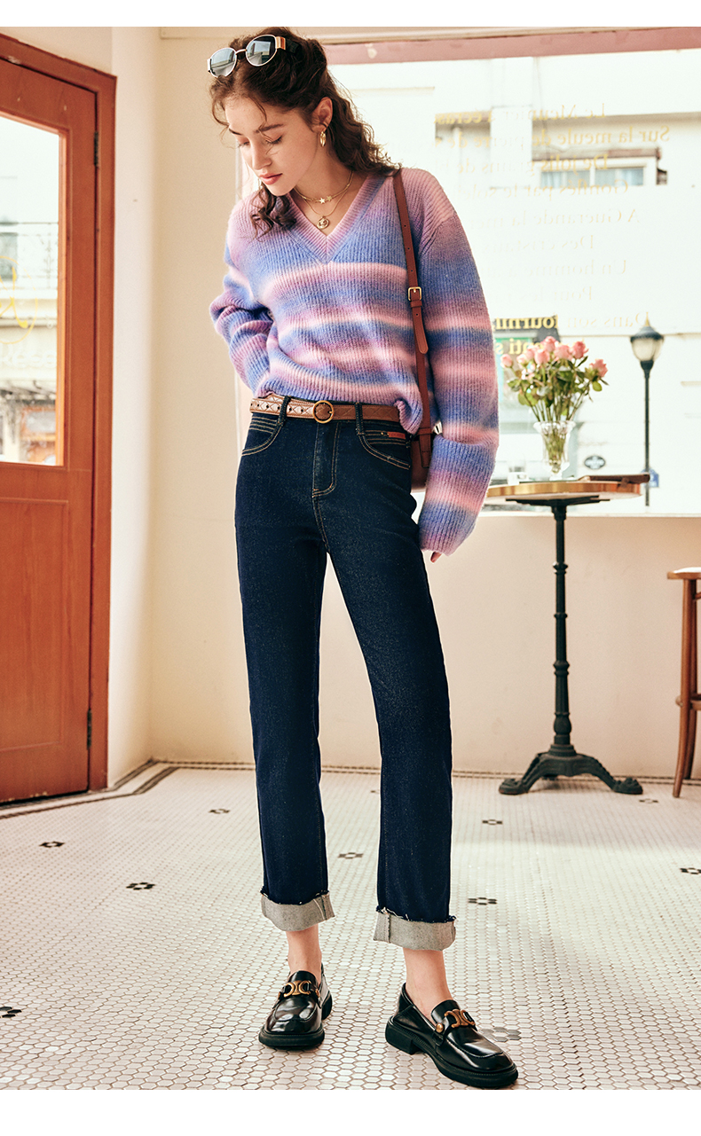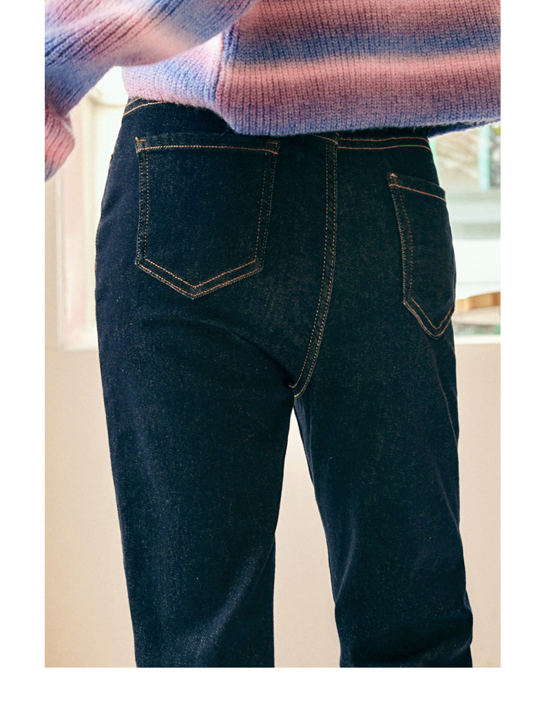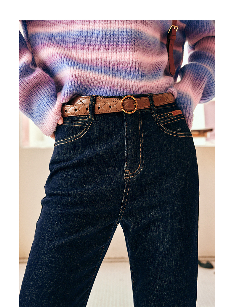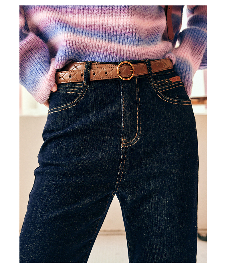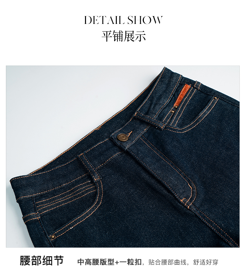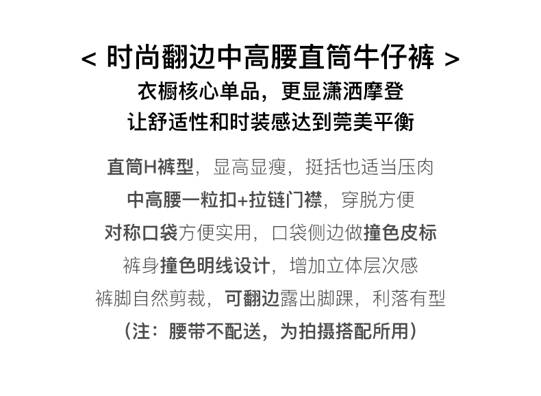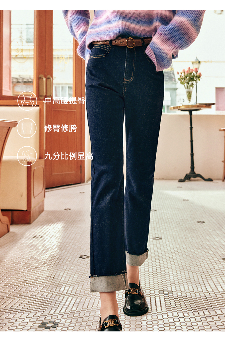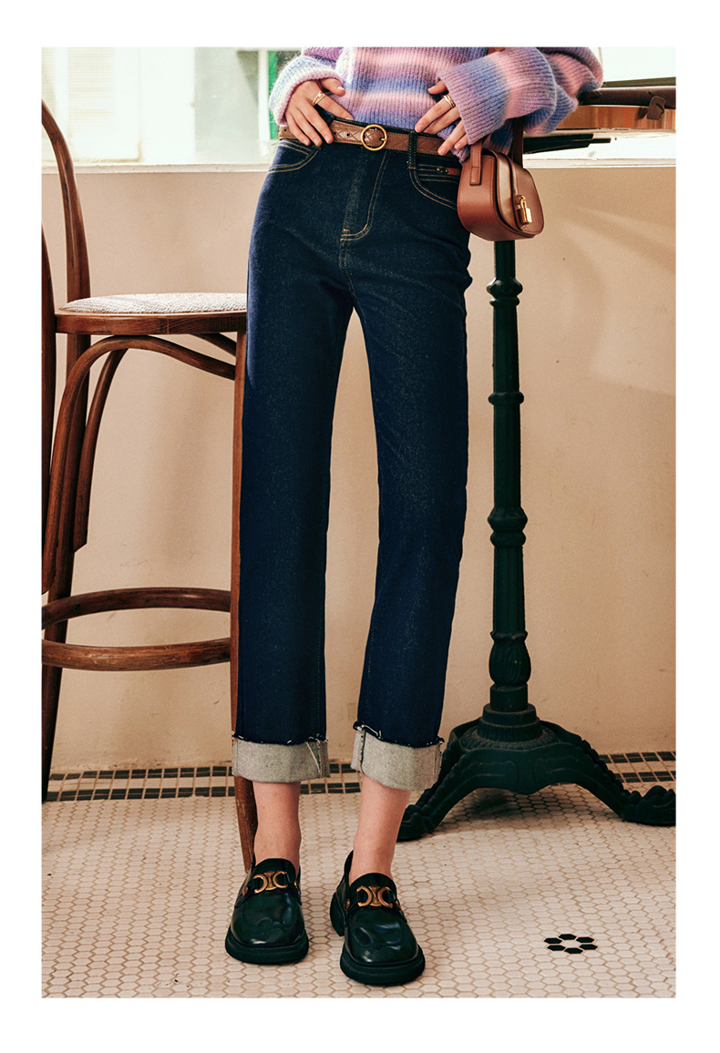 OLrain欧芮儿法式深色牛仔裤女秋冬2022年新款高腰直筒翻边阔腿裤