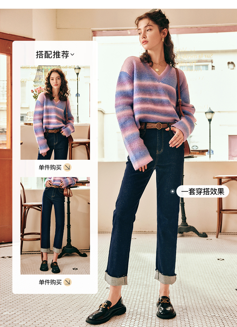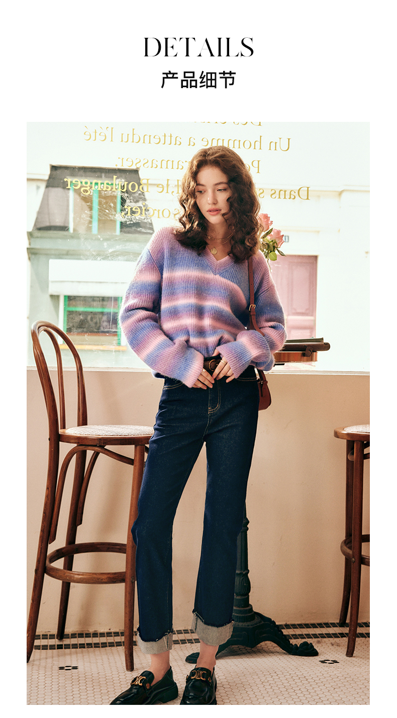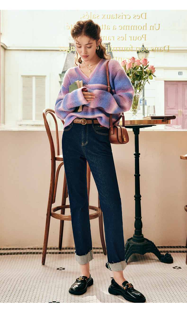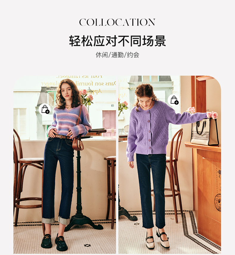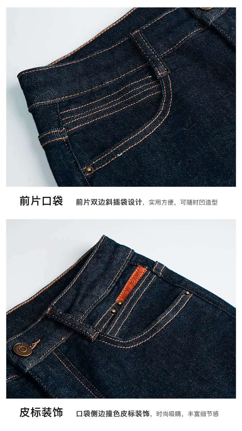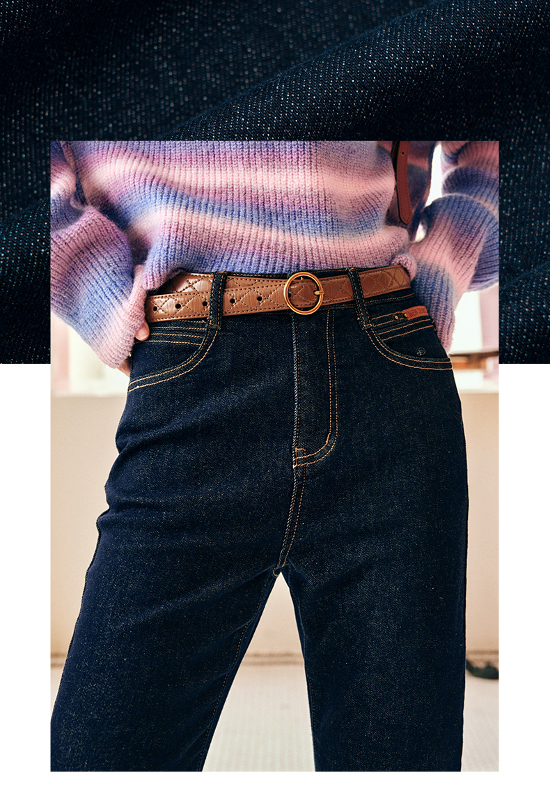 OLrain欧芮儿法式深色牛仔裤女秋冬2022年新款高腰直筒翻边阔腿裤