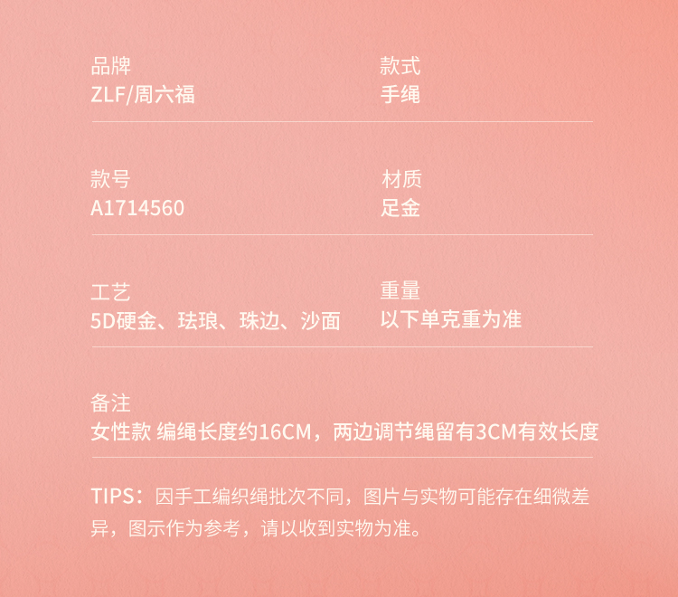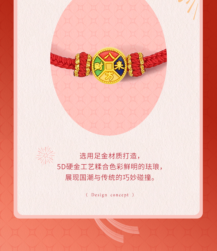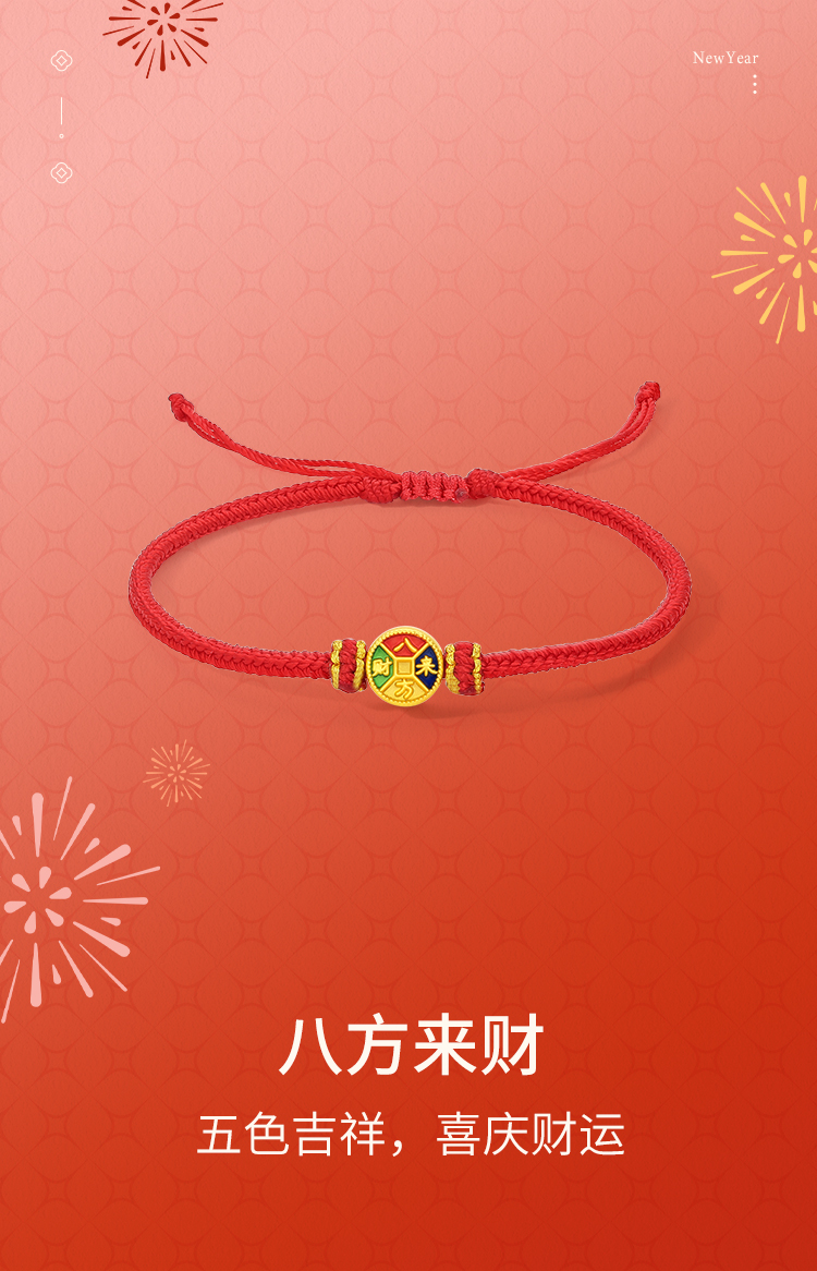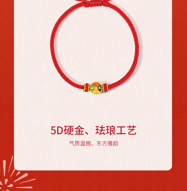 周六福黄金手绳女款5d硬金定价八方来财招财铜钱珐琅红手绳手饰