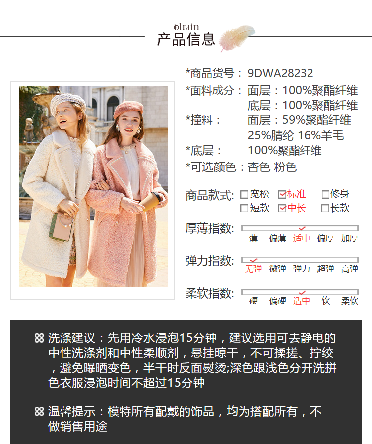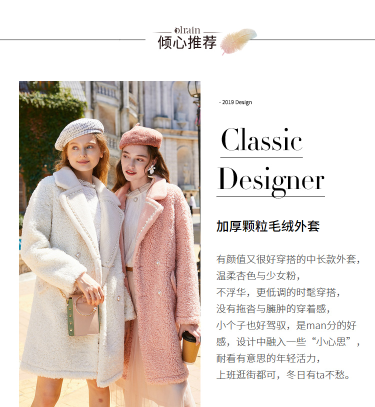 - “精致”是欧芮儿olrain品牌文化的核心,欧芮儿认为,精致的女人,不但要外在动人,更要内在迷人,内外兼修,有魅力、有气质、有内涵,自信而不自傲,优雅而不矫揉,自有万种风情而不轻浮,更不故作矜持。
