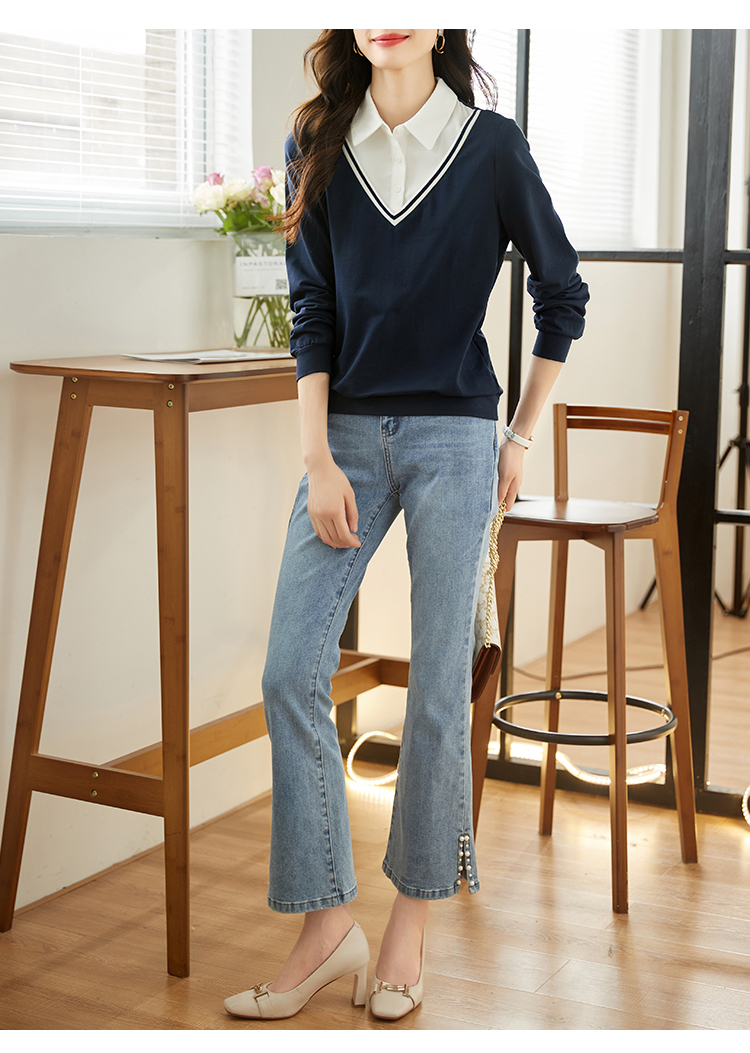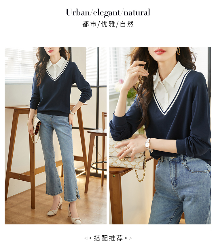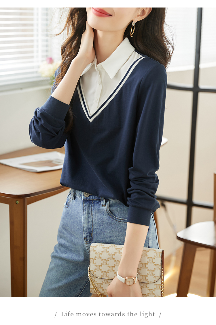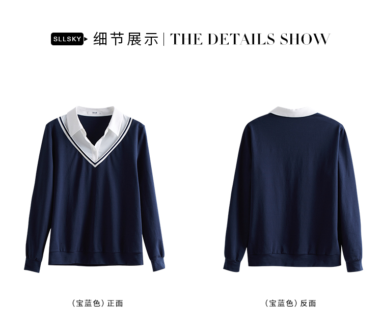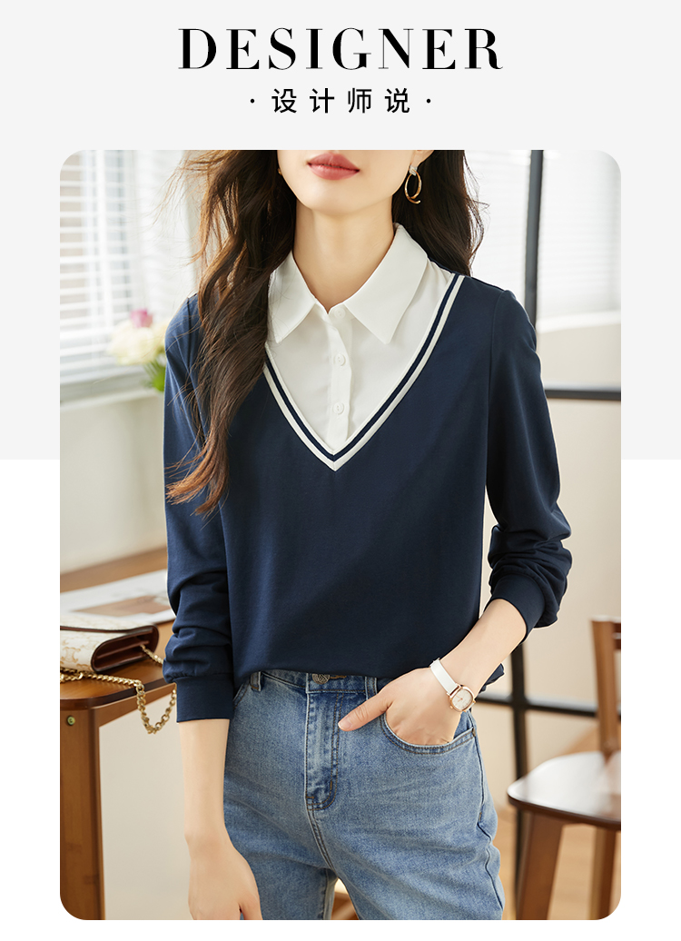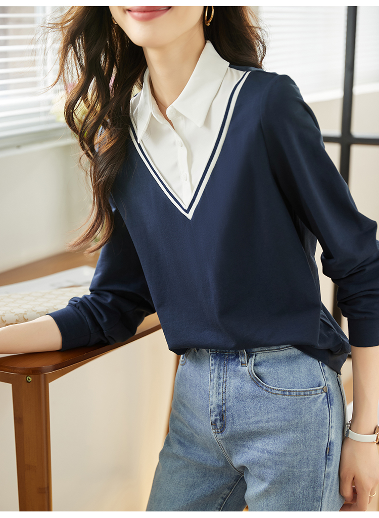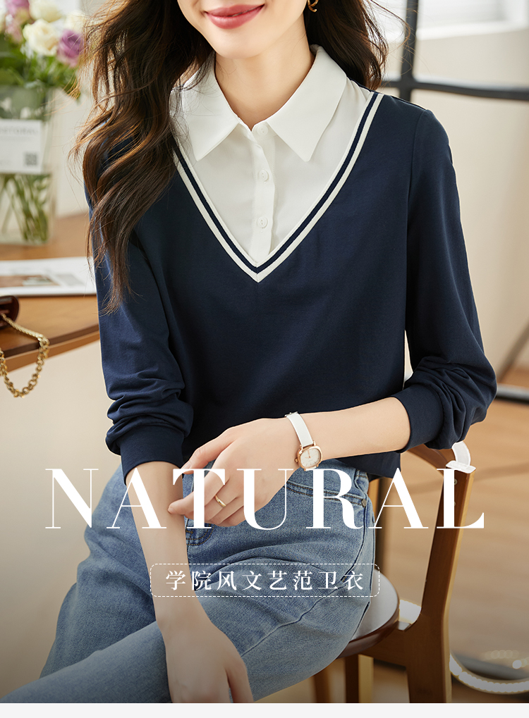 【59元福袋不支持退换】熙世界秋装新款学院文艺风衬衫翻领上衣拼接长袖假两件卫衣女