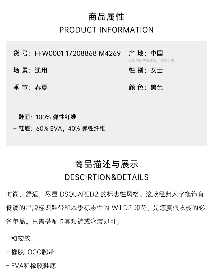 DSQUARED2 女士字母徽标贴片Wild2人字拖鞋 黑色 FFW0001 17208868 M4269