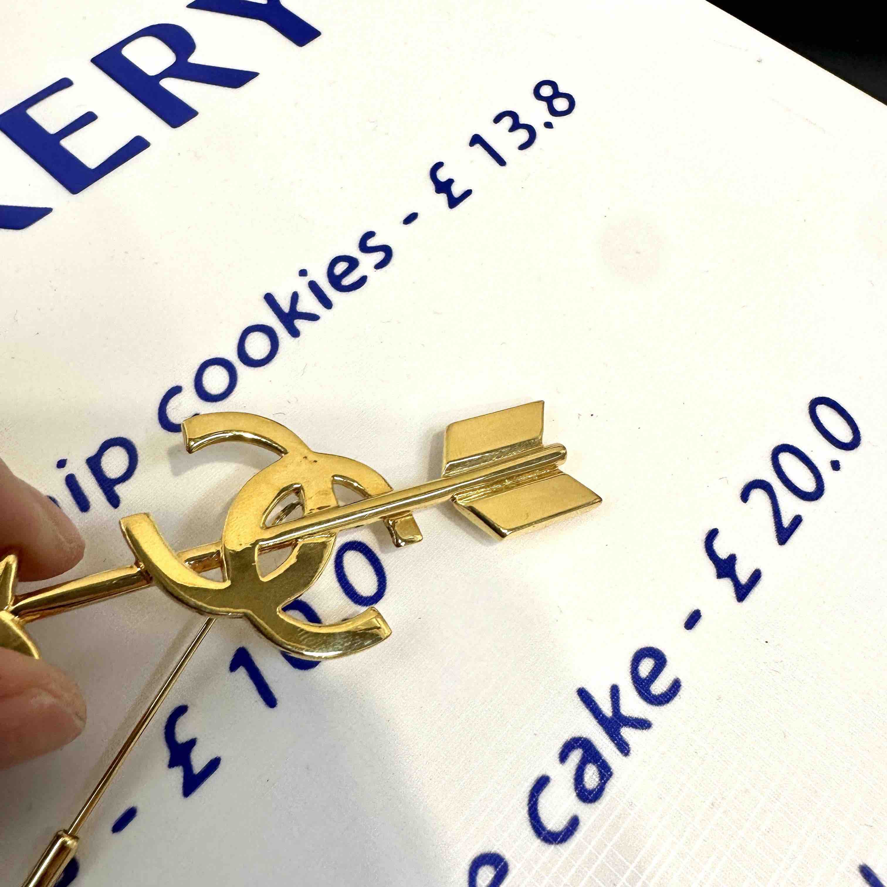 【商品详情】正品二手 CHANEL vintage 1991 双c 箭头 胸针 ✨95新 8x4。金属表面正常使用感,整体新✋🏻