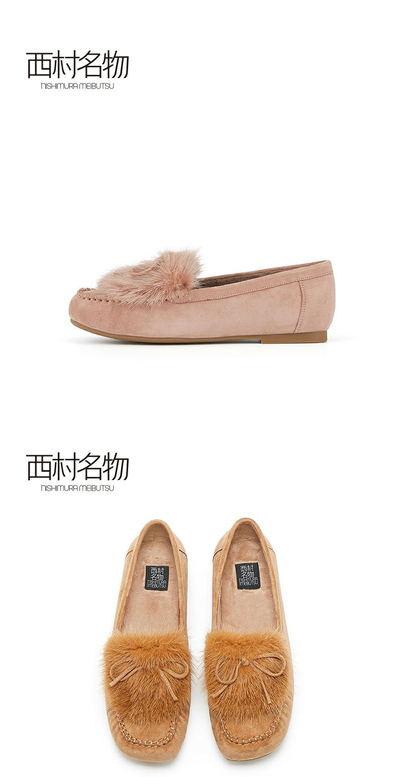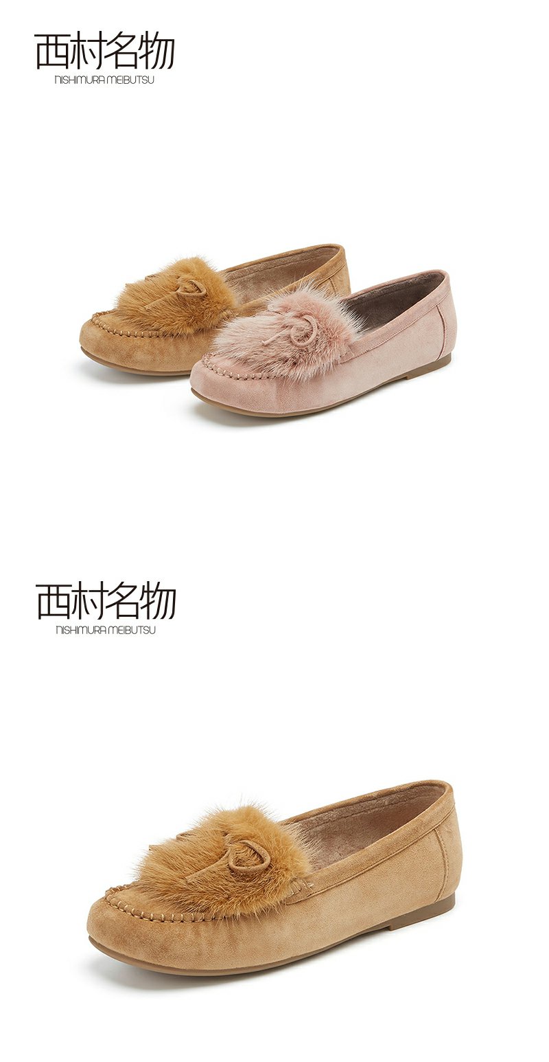 西村名物豆豆鞋女2022年秋季新款英伦平底百搭一脚蹬毛毛鞋37821