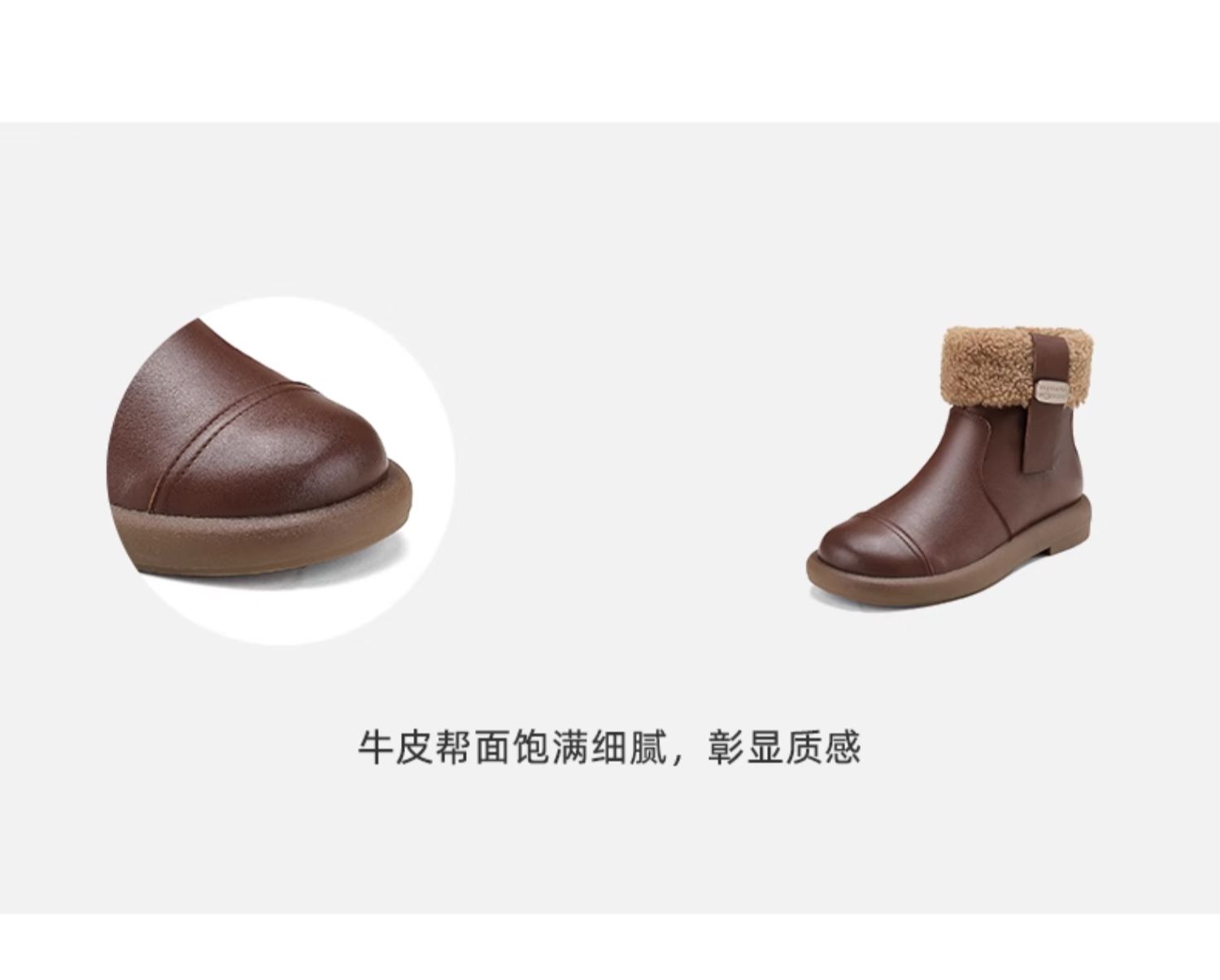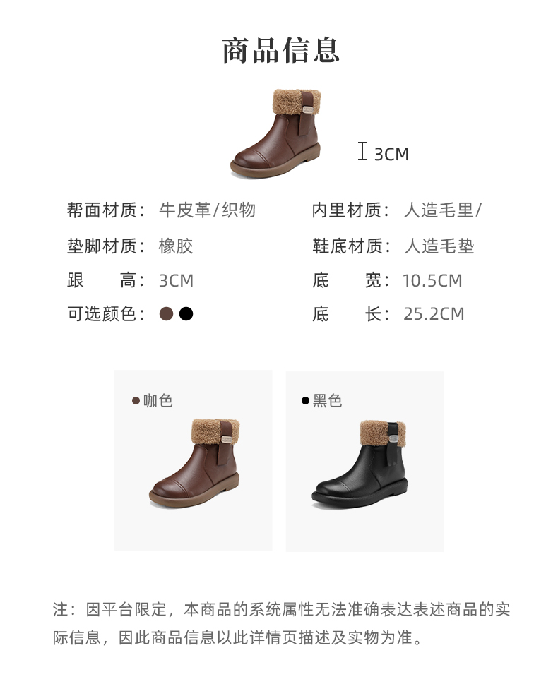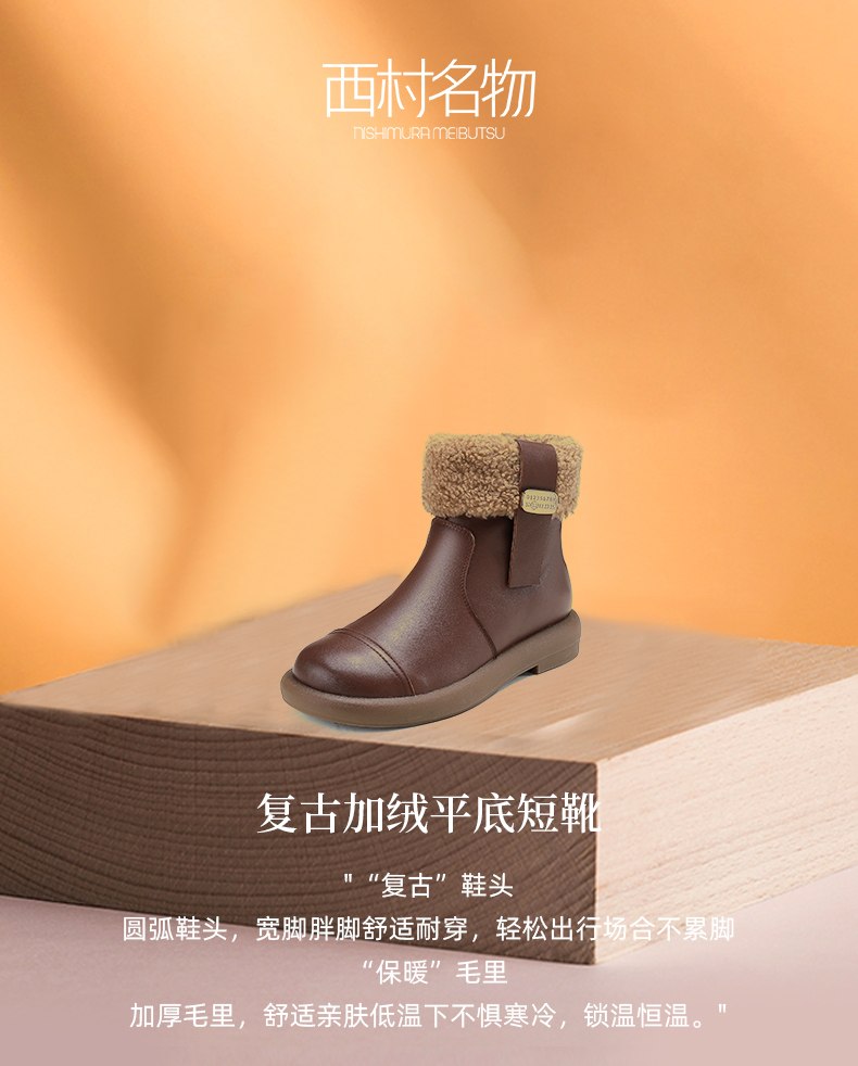 西村名物2024冬季新款真皮复古加绒短靴舒适平底毛毛雪地靴女X24DS47251