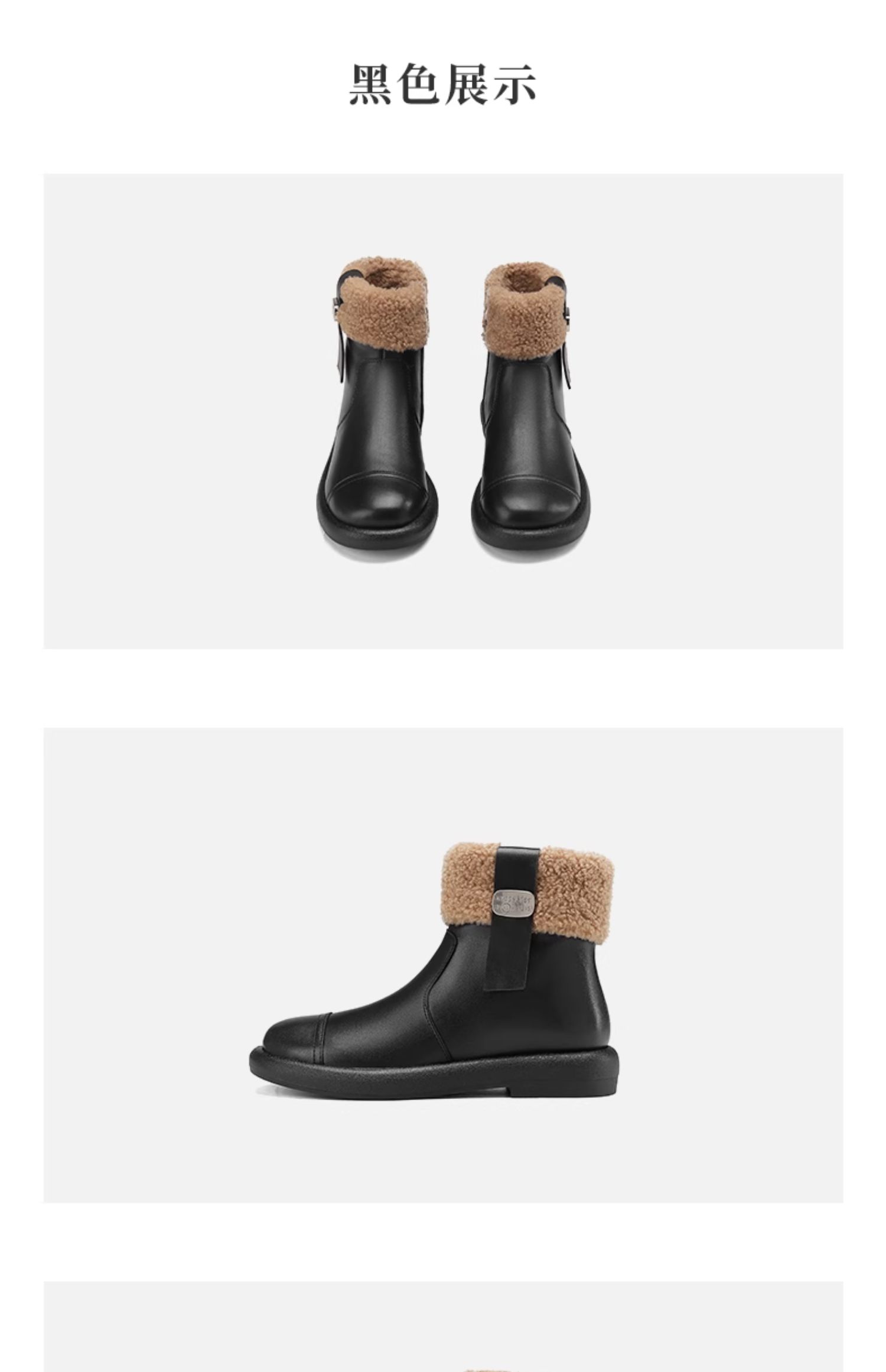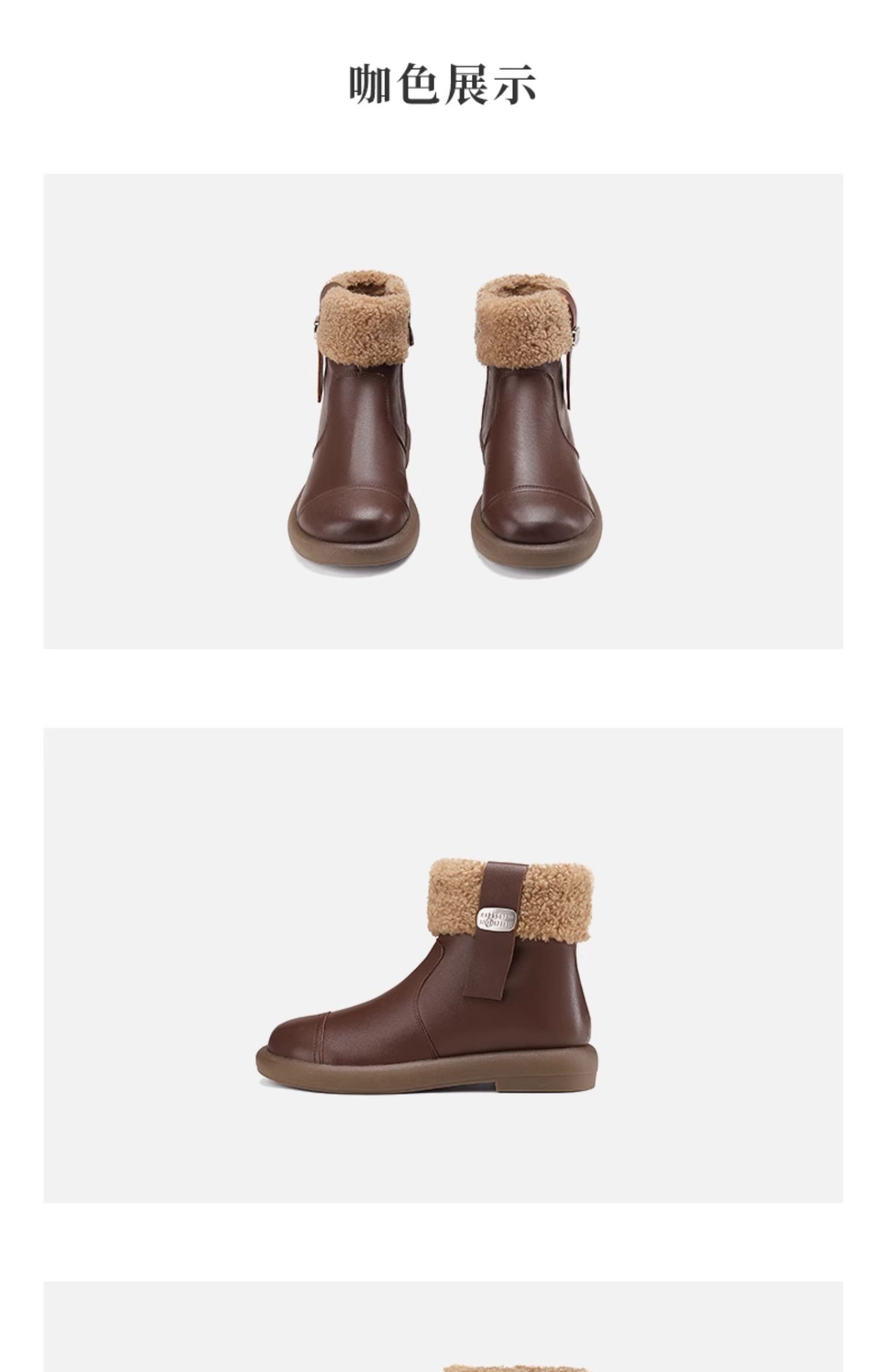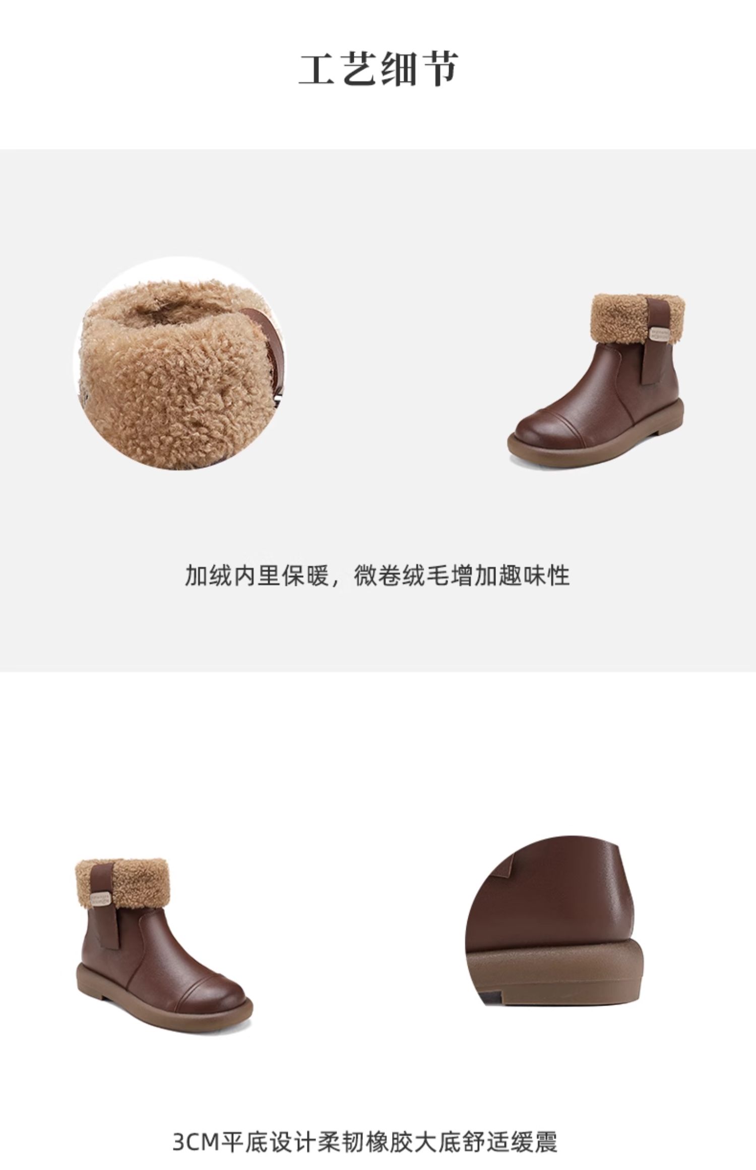 西村名物2024冬季新款真皮复古加绒短靴舒适平底毛毛雪地靴女X24DS47251