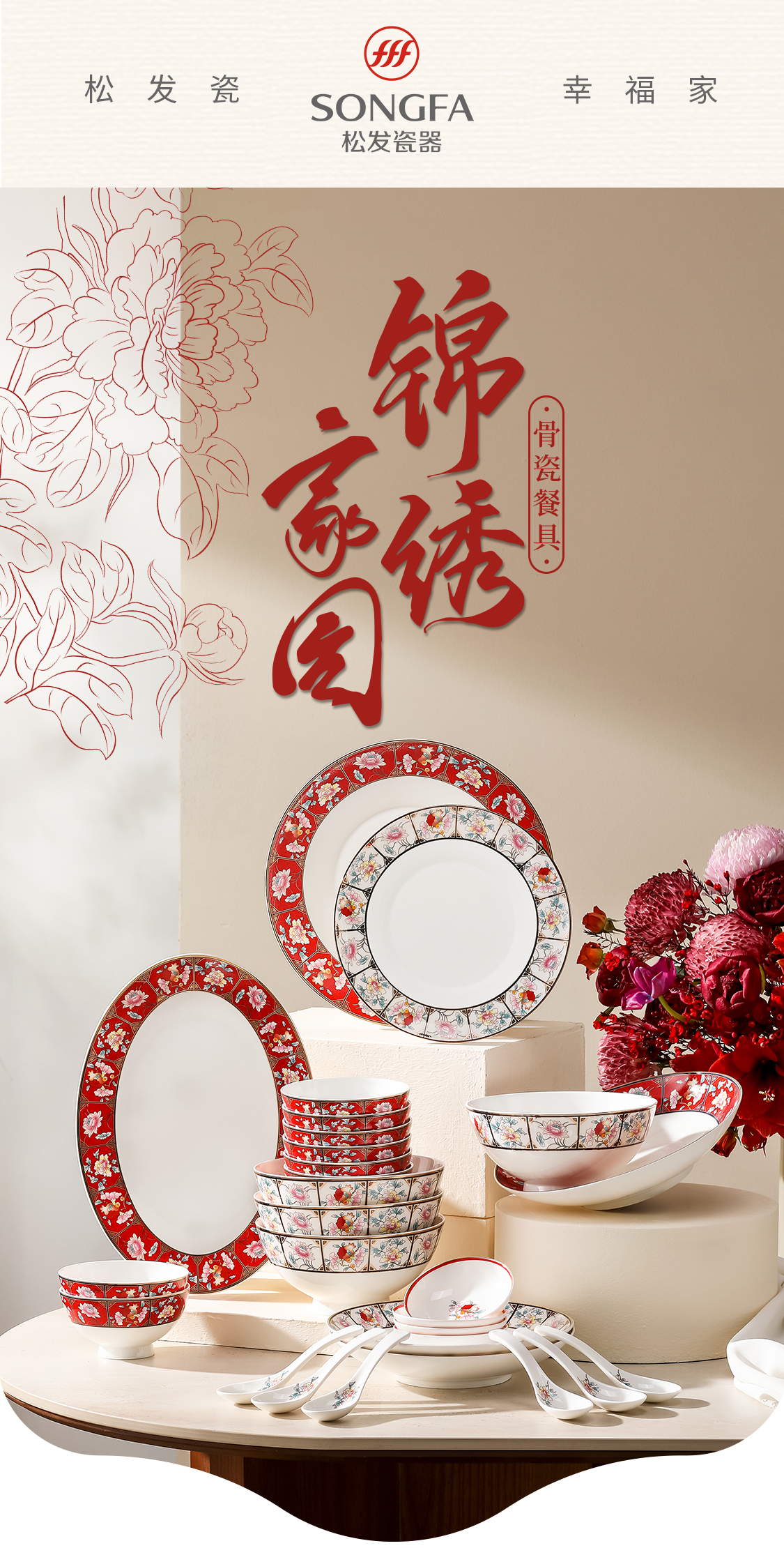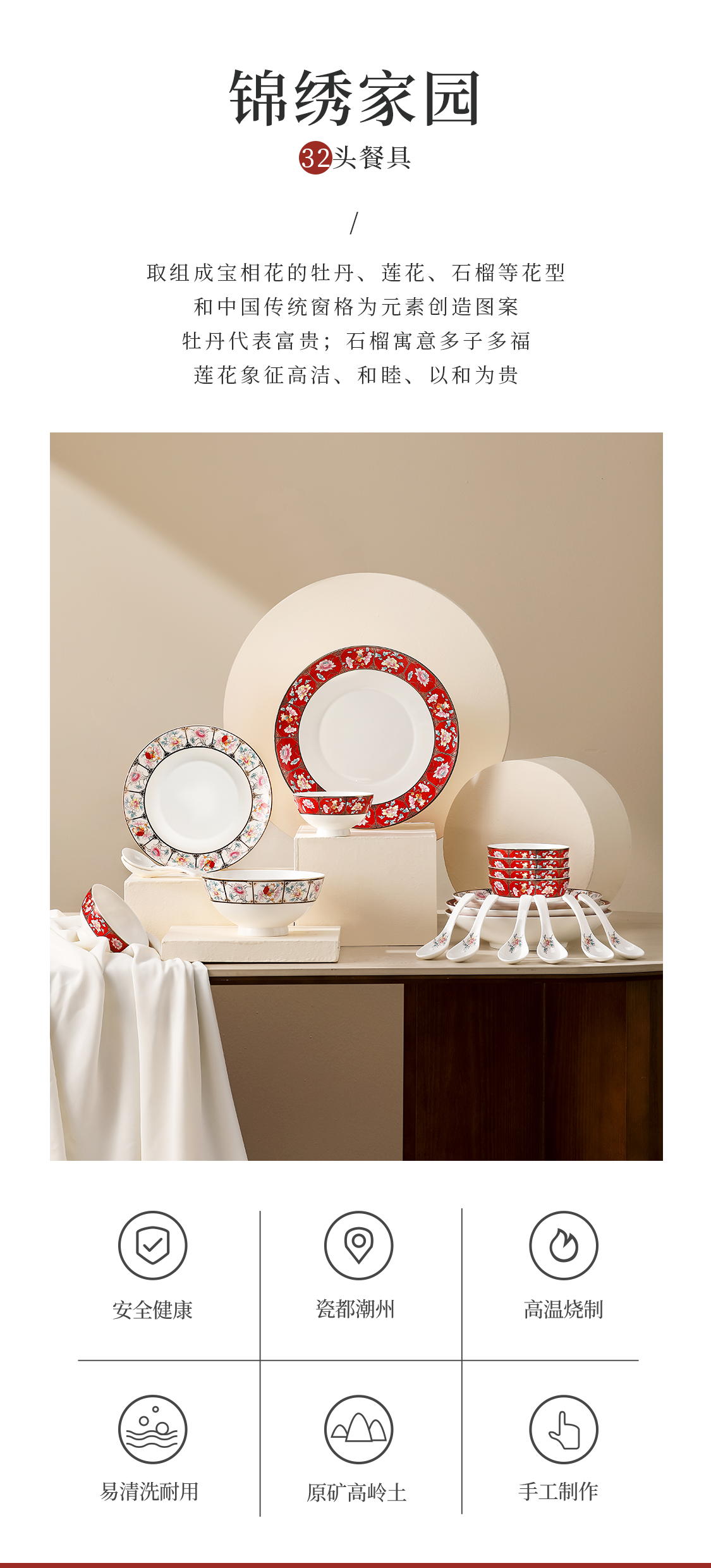 32头锦绣家园骨瓷餐具