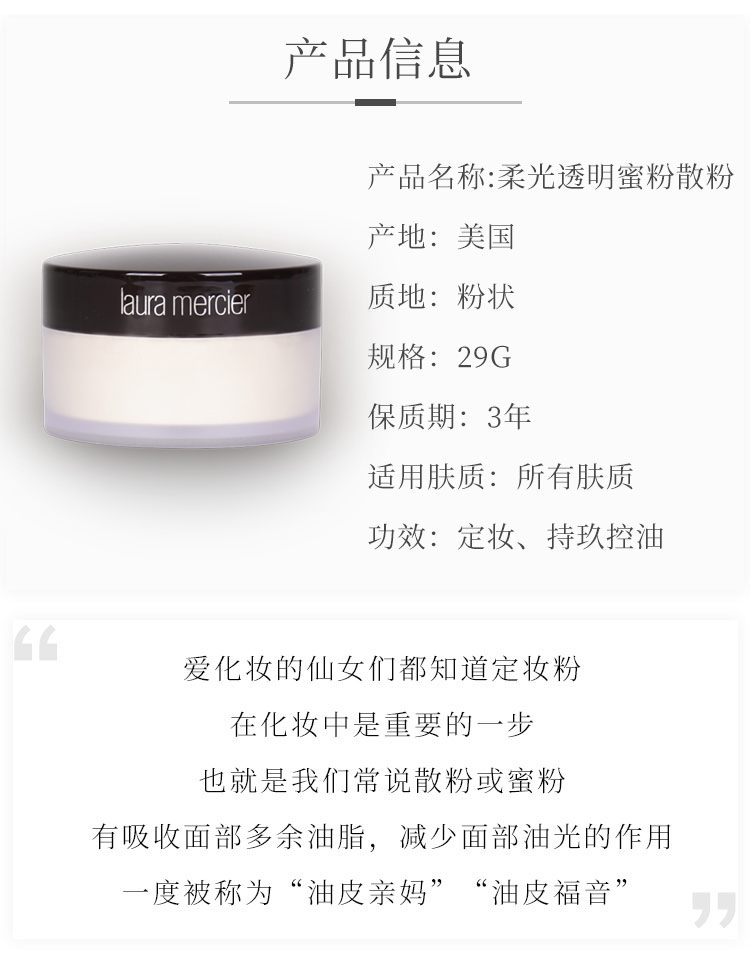 Laura Mercier罗拉散粉柔光透明蜜粉控油遮瑕持久29g