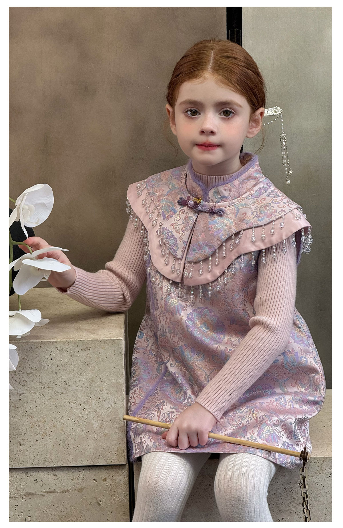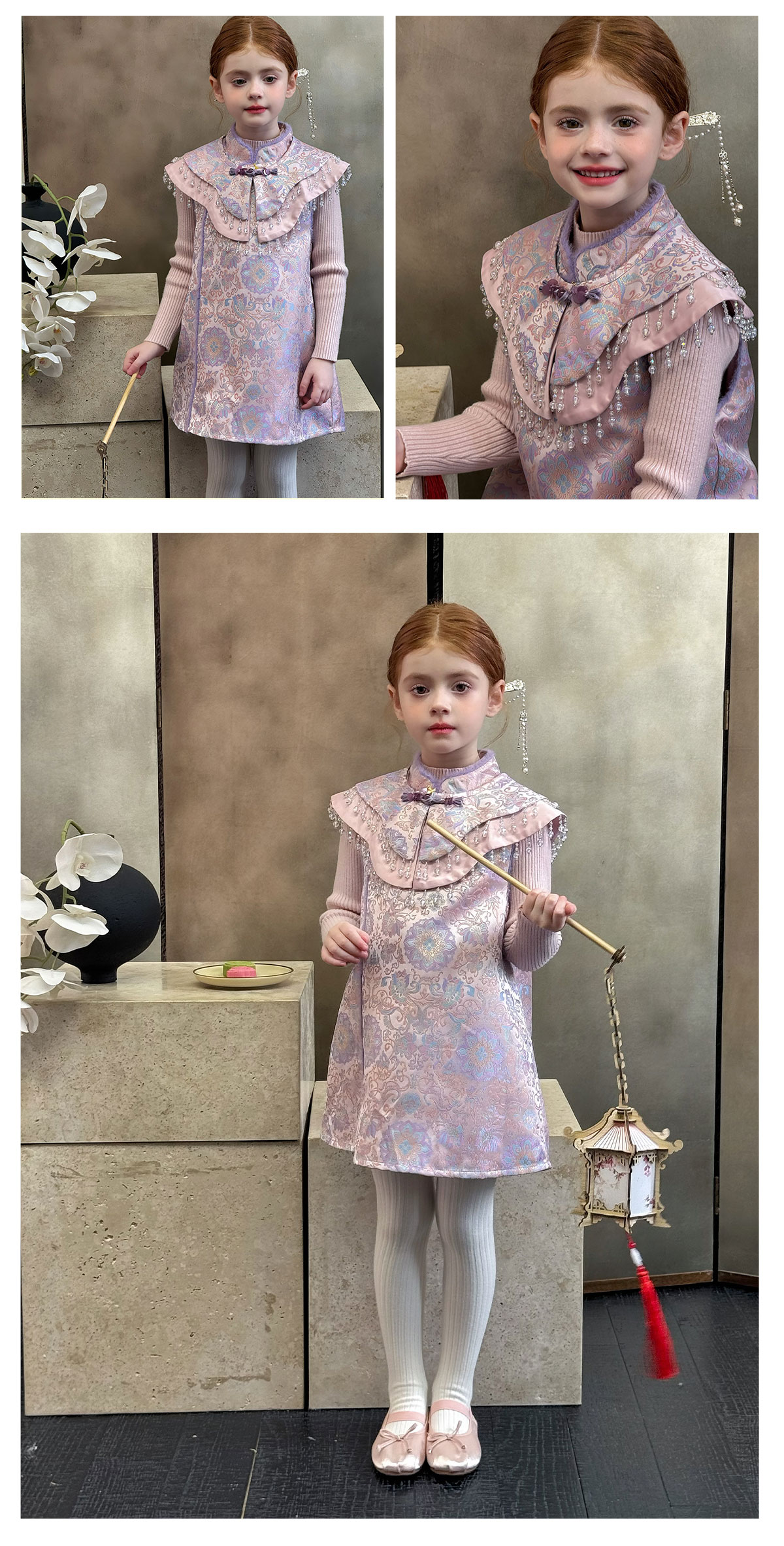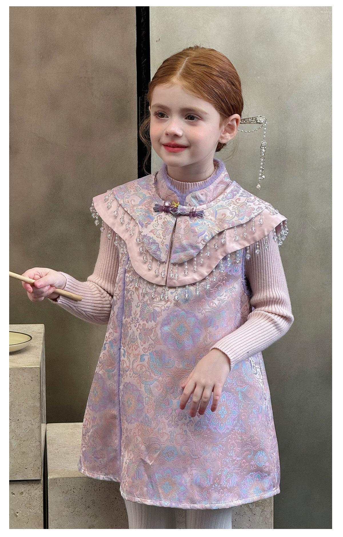 littletime女童旗袍2025秋冬新款儿童新中式国风连衣裙女宝礼服裙