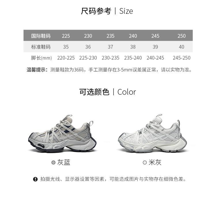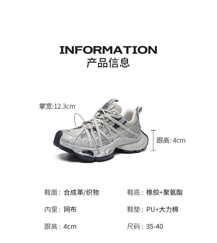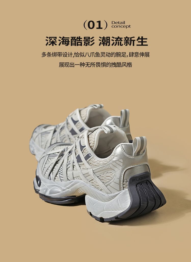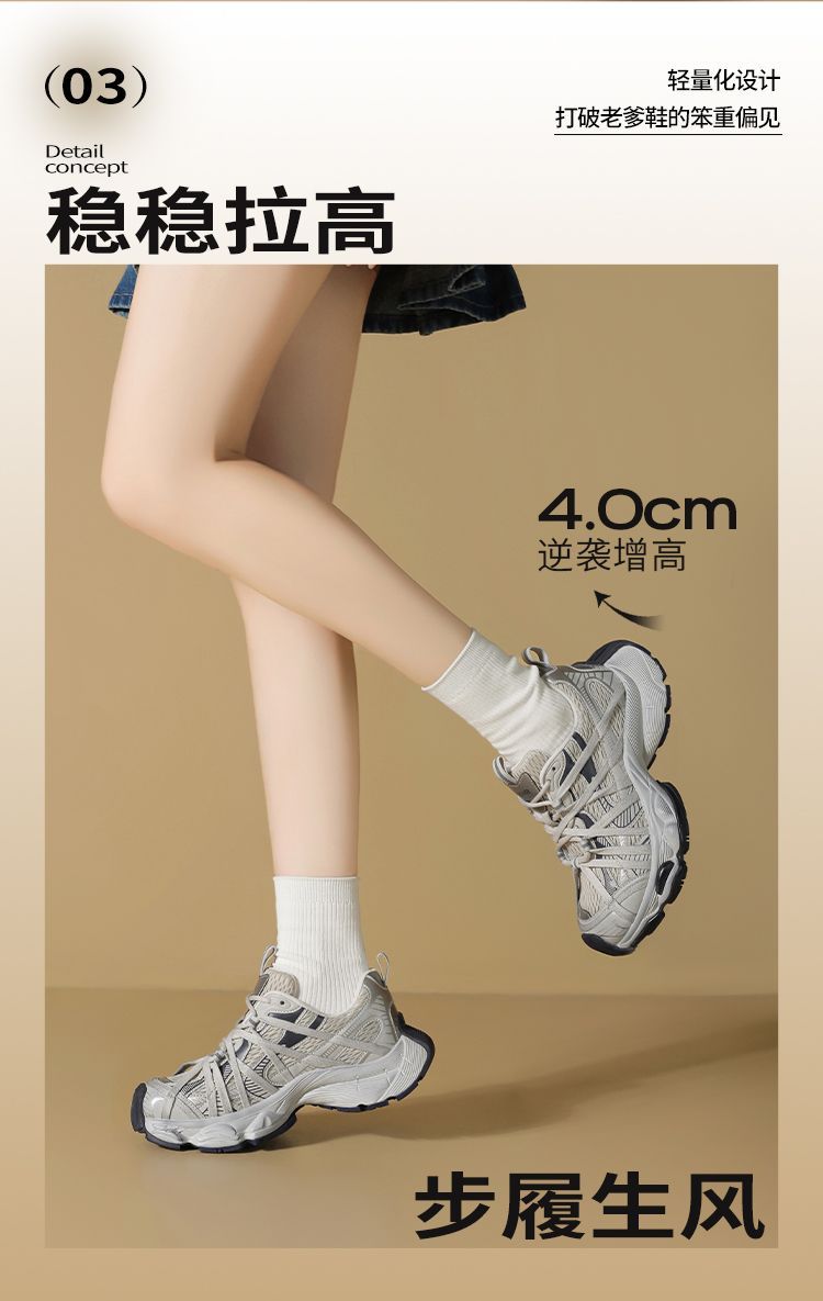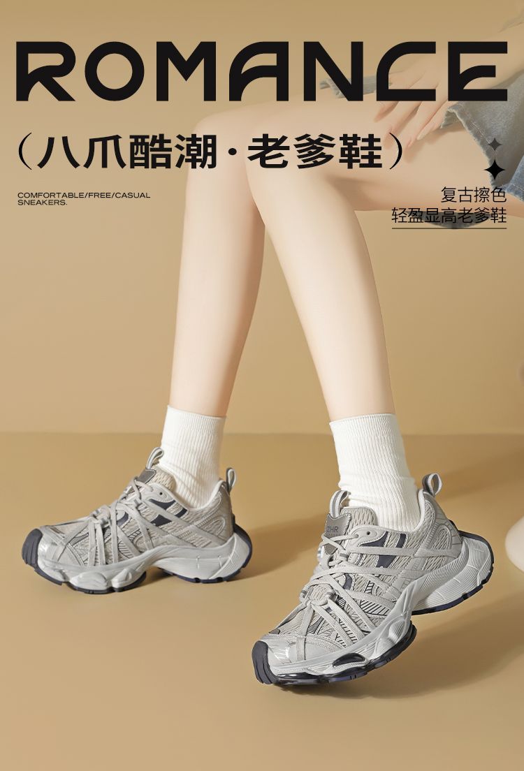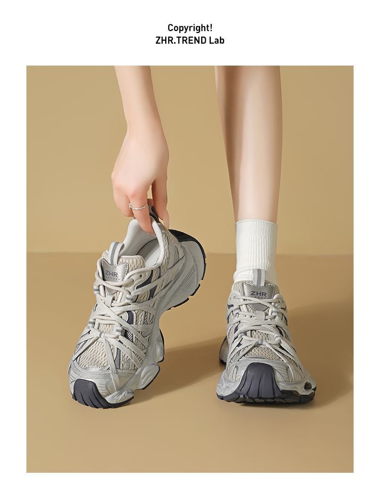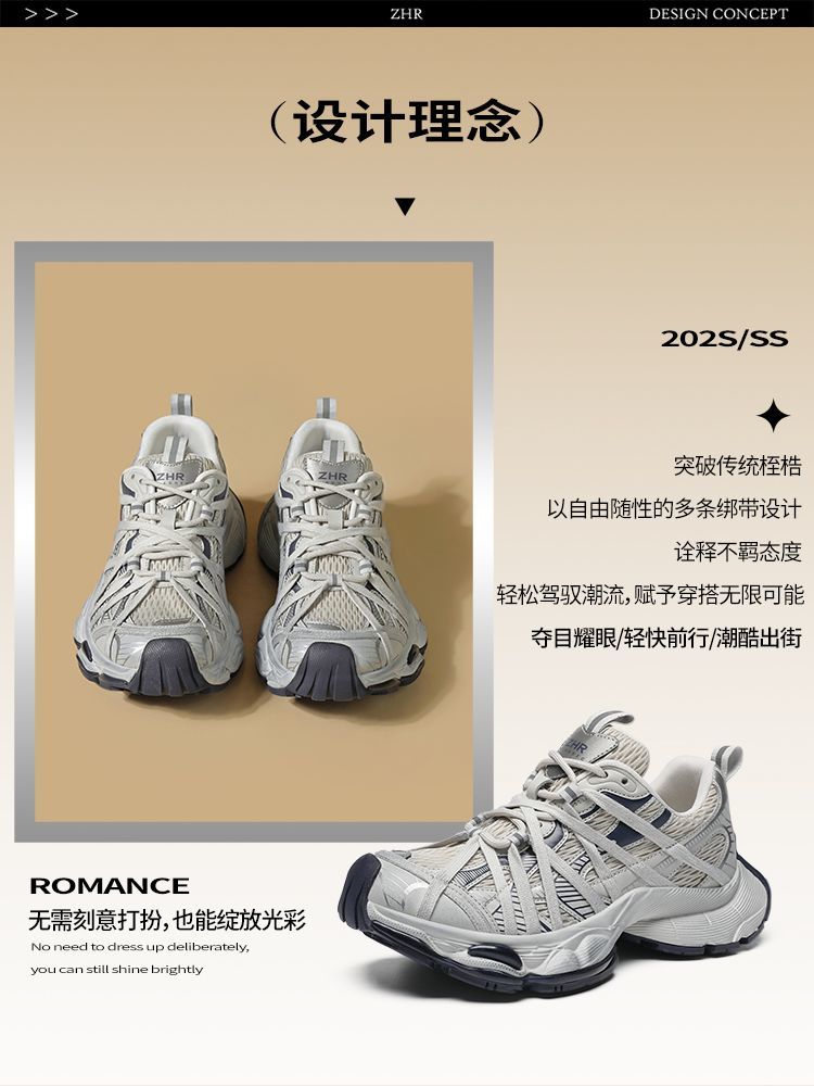 ZHR则则巴黎风厚底老爹鞋2025春夏八爪鞋带运动鞋网面透气脏脏鞋