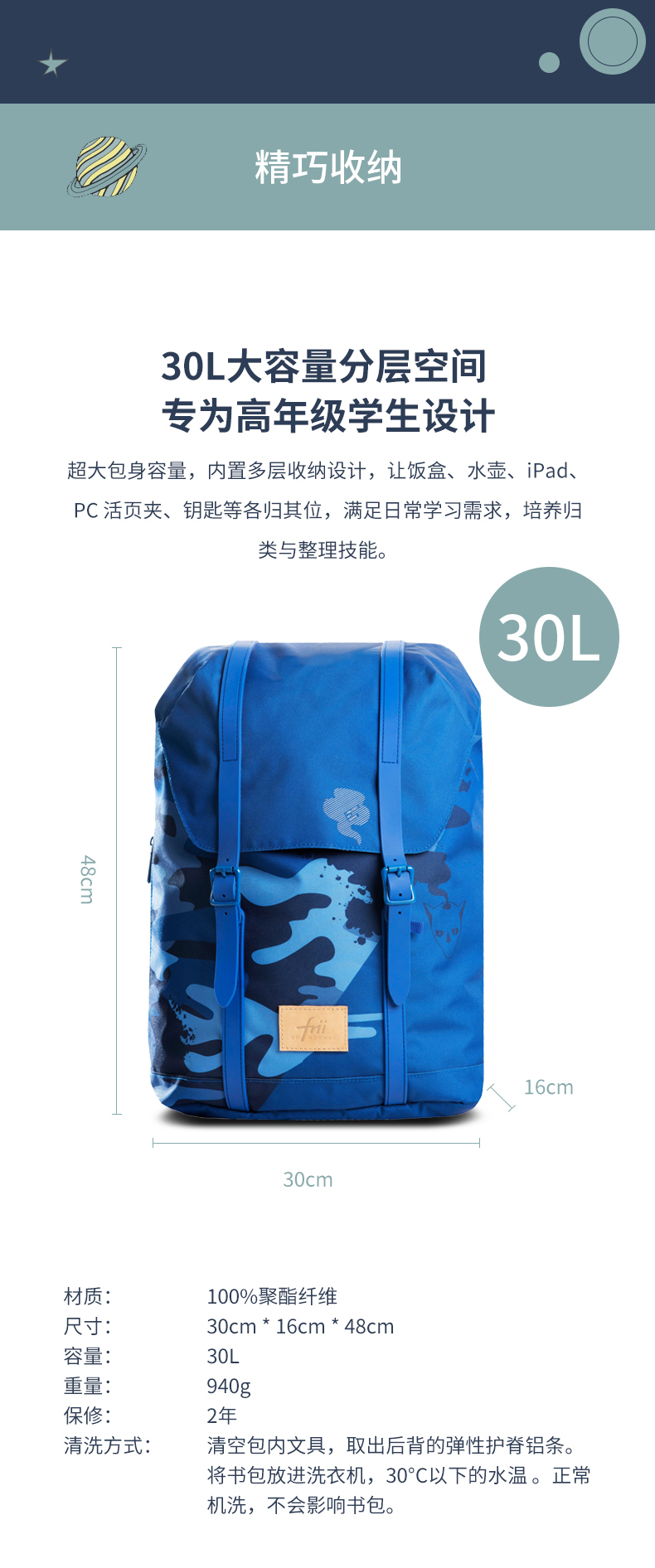 挪威FRII OF NORWAY 小学生书包减负护脊 30L 21年新款(符合人体工程学背负设计,保护儿童脊椎健康,专为高年级学生设计)