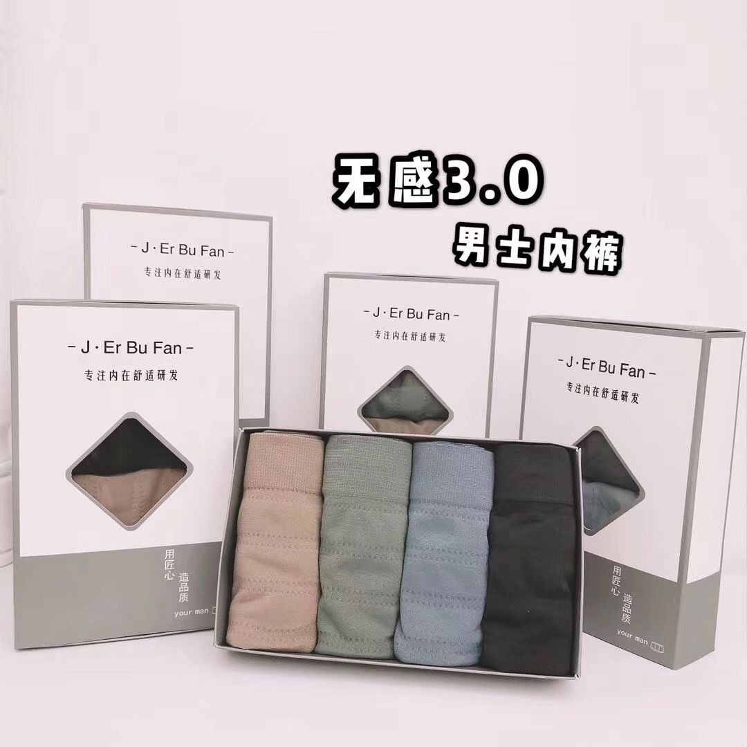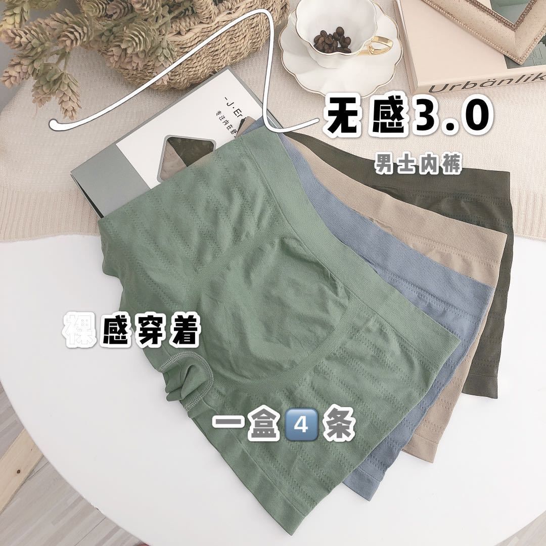 4条装无感男士内裤四角短裤高弹无痕零束缚透气均码潮男平角裤衩七夕情人节
