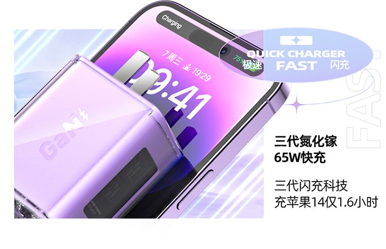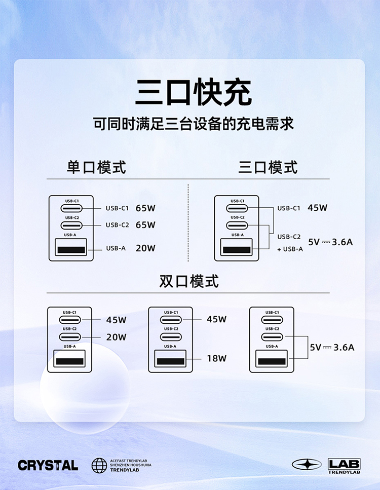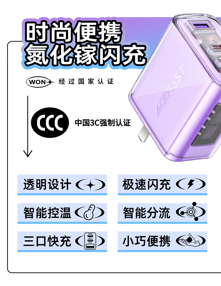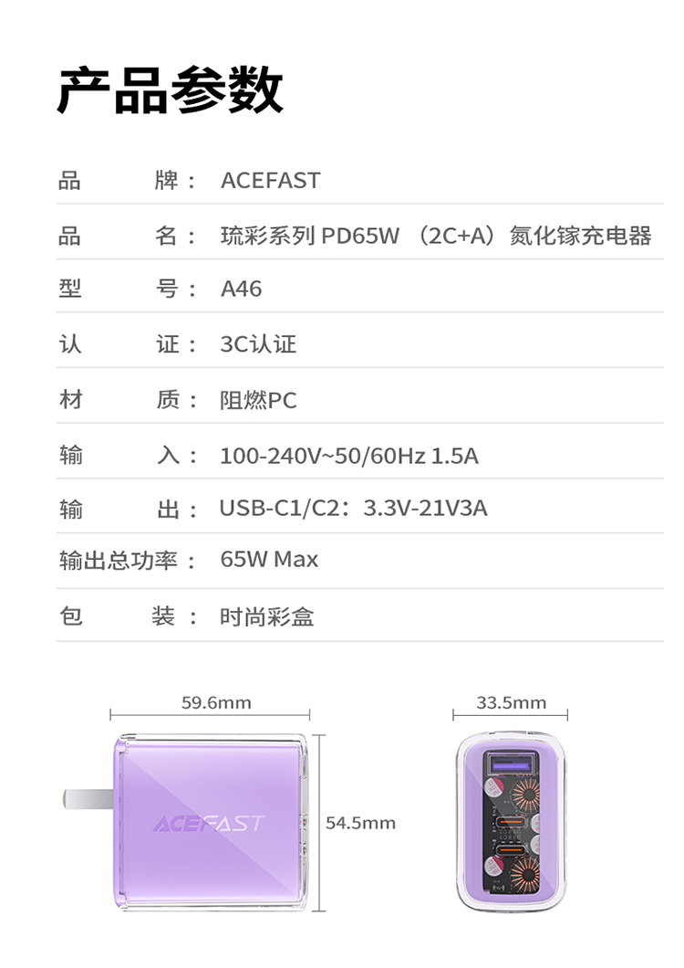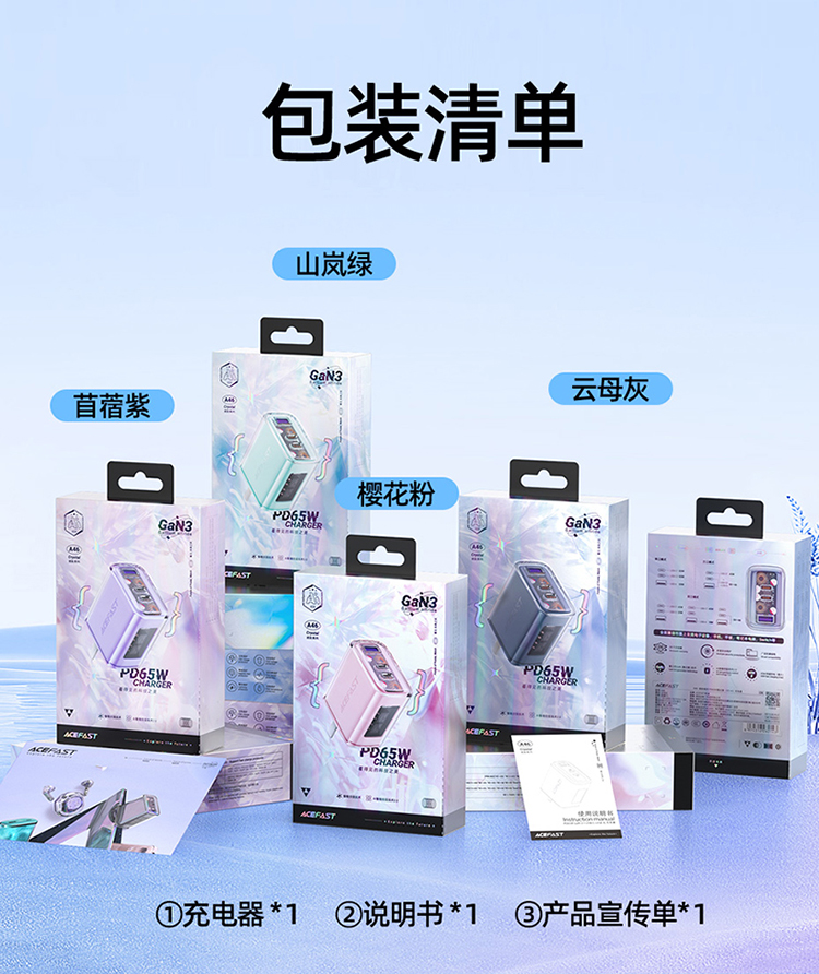 ACEFAST琉彩系列 PD65W (2C+A)氮化镓充电器 (中规)A46