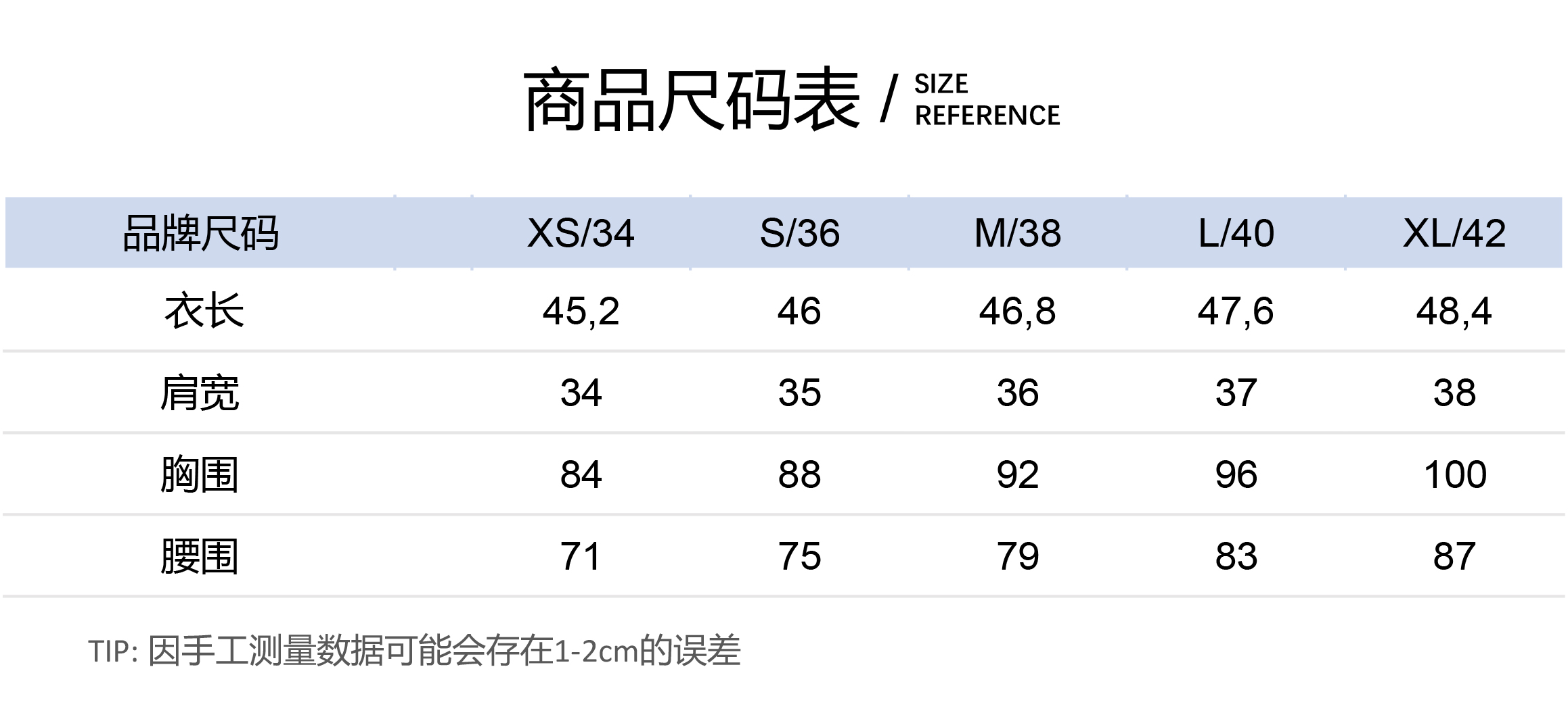 马甲尺码表:长裤尺码表: