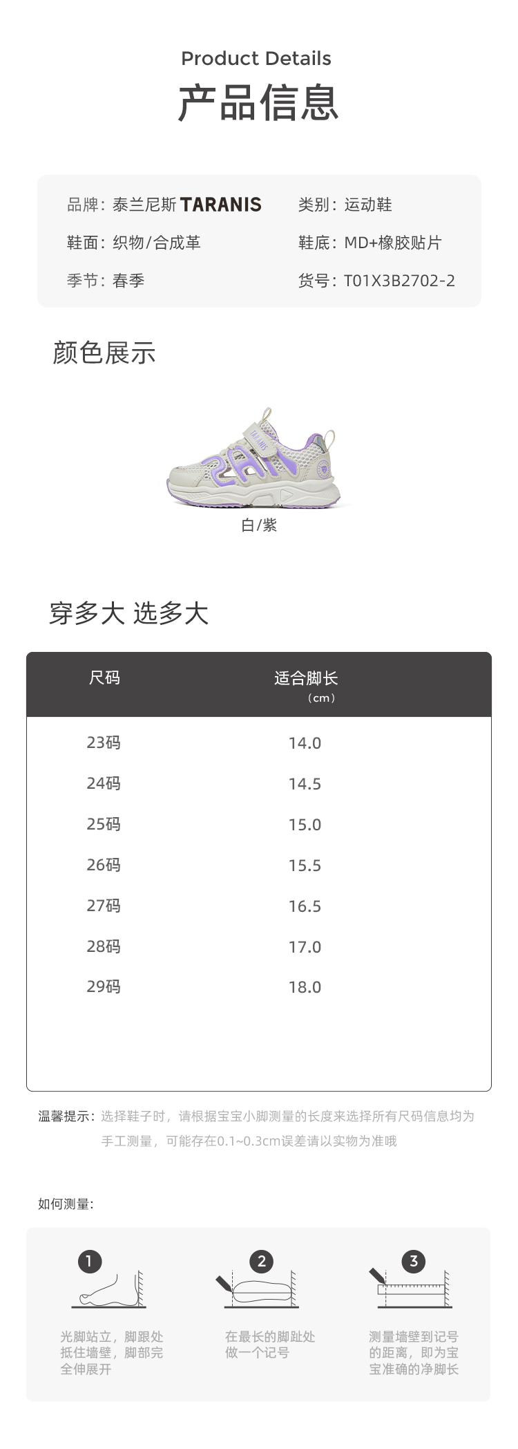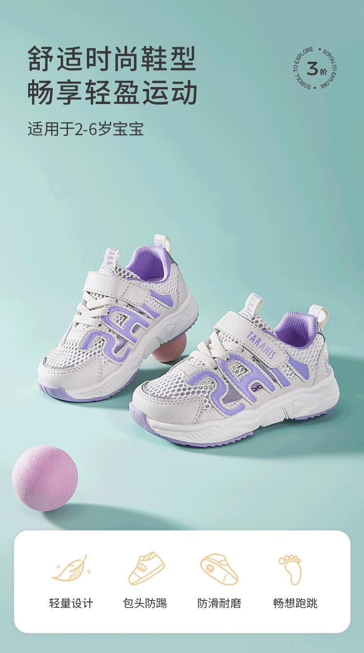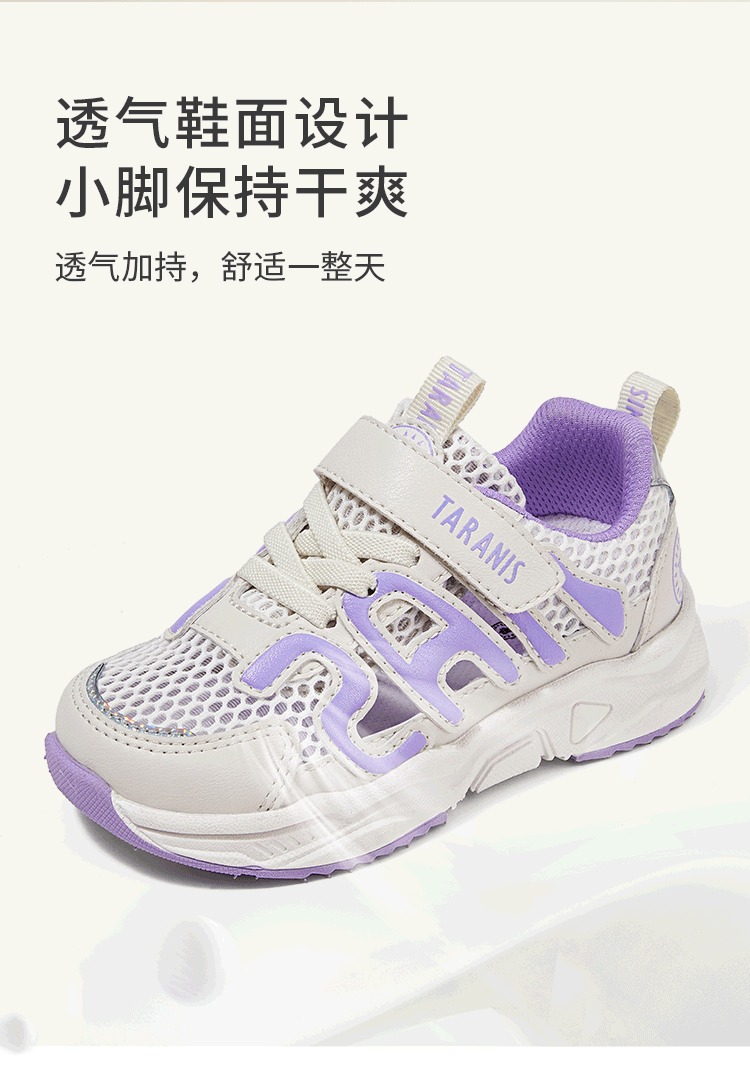 泰兰尼斯春款小童段女童字母镂空透气运动鞋T01X3B2702