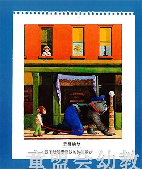 在书中安东尼?布朗埋伏下的线索很多,无论文艺复兴、古典主义还是超现实主义,其中总有那么一些作品信息量很大、线索很多,安东尼?布朗的绘本恰恰也是其中一例。这使得书中的故事所占的比重更小,阅读绘本在这儿更不仅仅是读故事了。其实这也给读者留下许多阅读的乐趣,增加了反复阅读、反复品味的机会,也增加了家长和孩子、老师和学生之间不断研究、探讨和争论的机会。