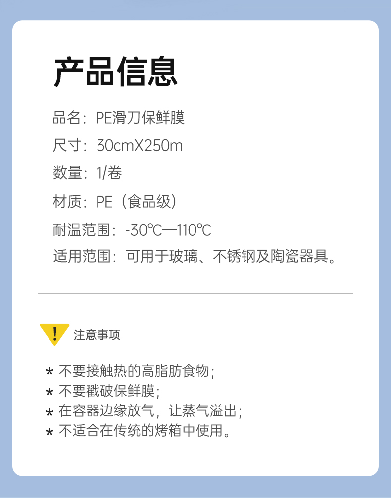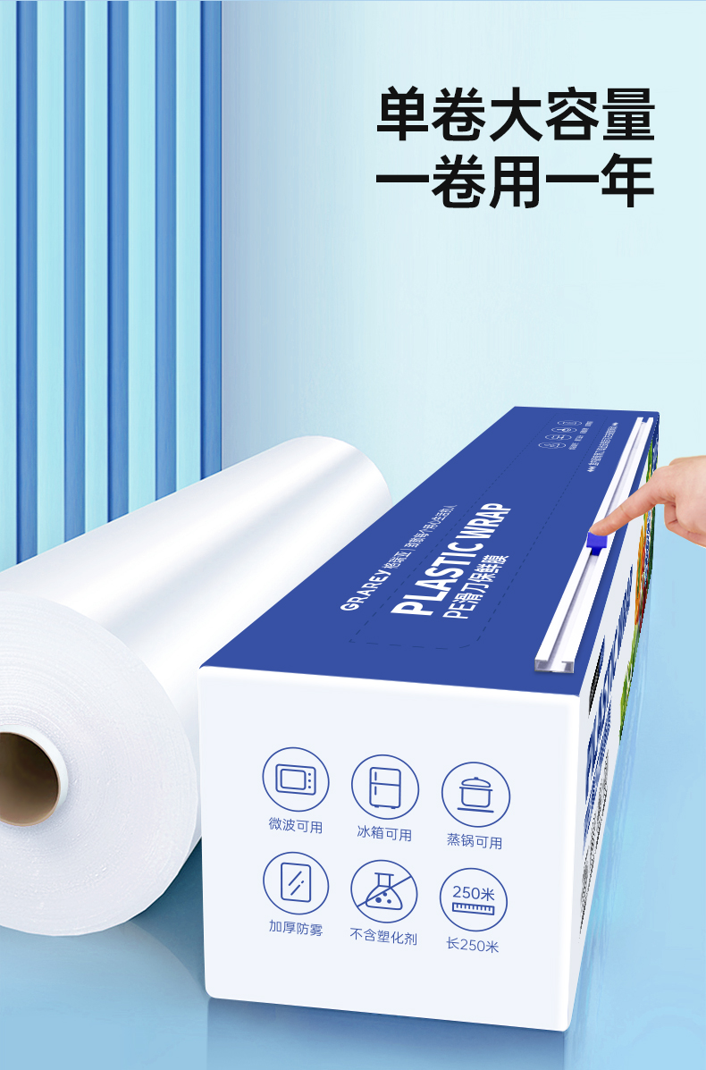 250米 PE滑刀保鲜膜 耐冷耐热不起雾,持久锁鲜A-4707 格瑞亚-