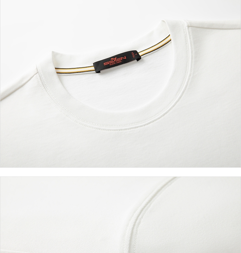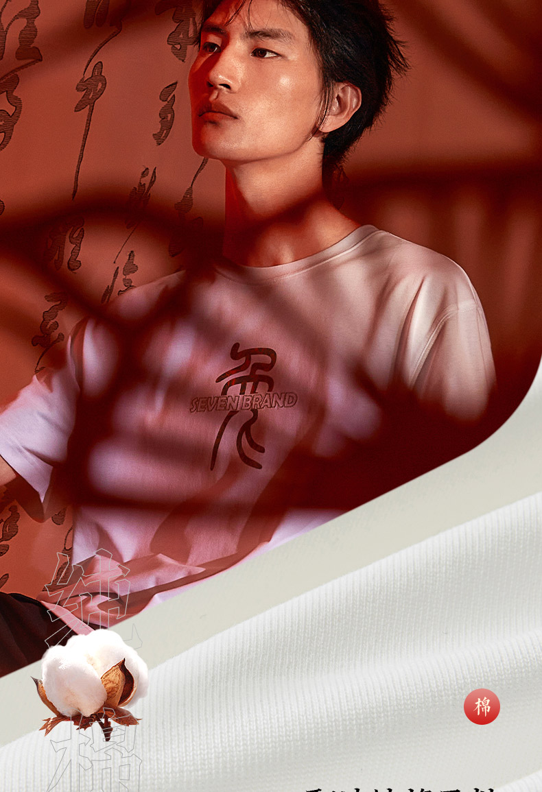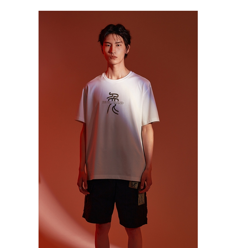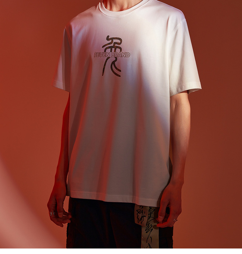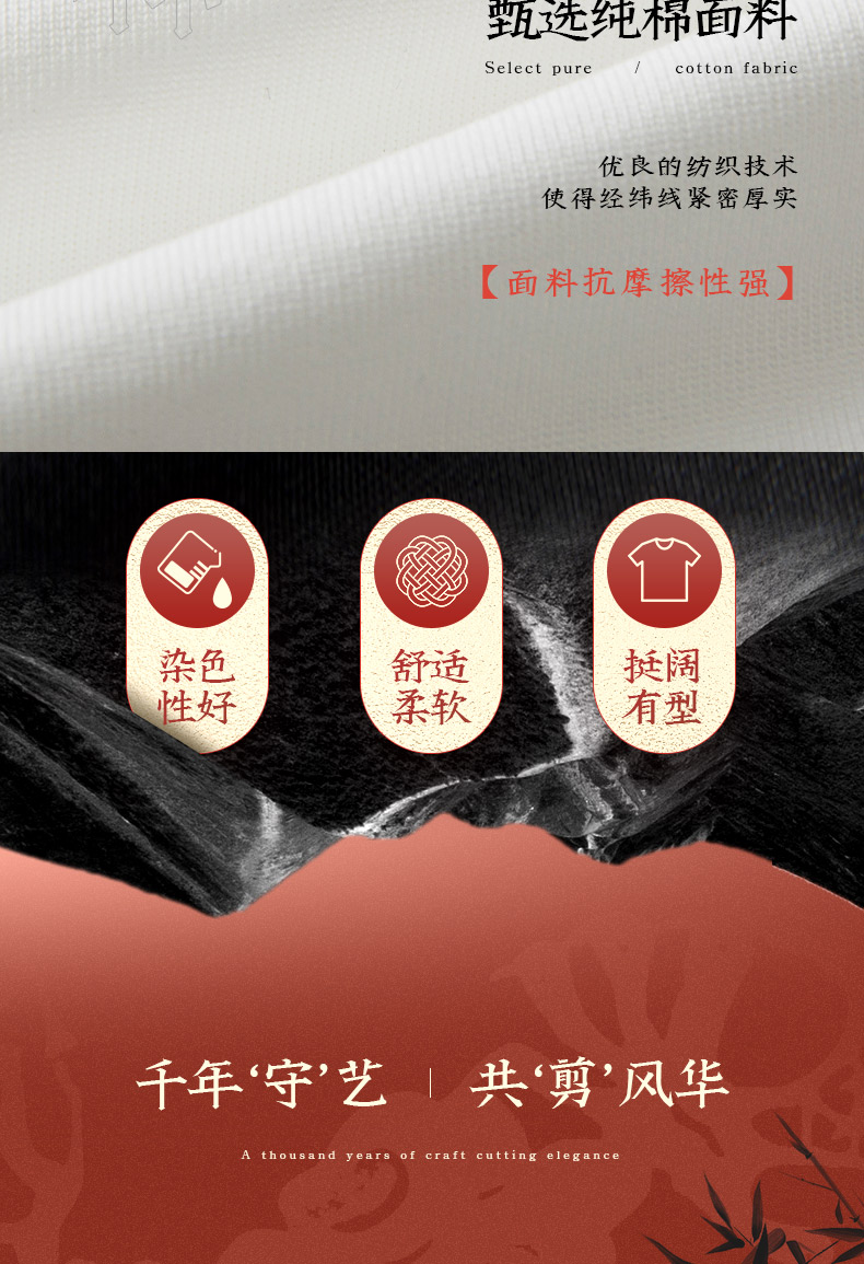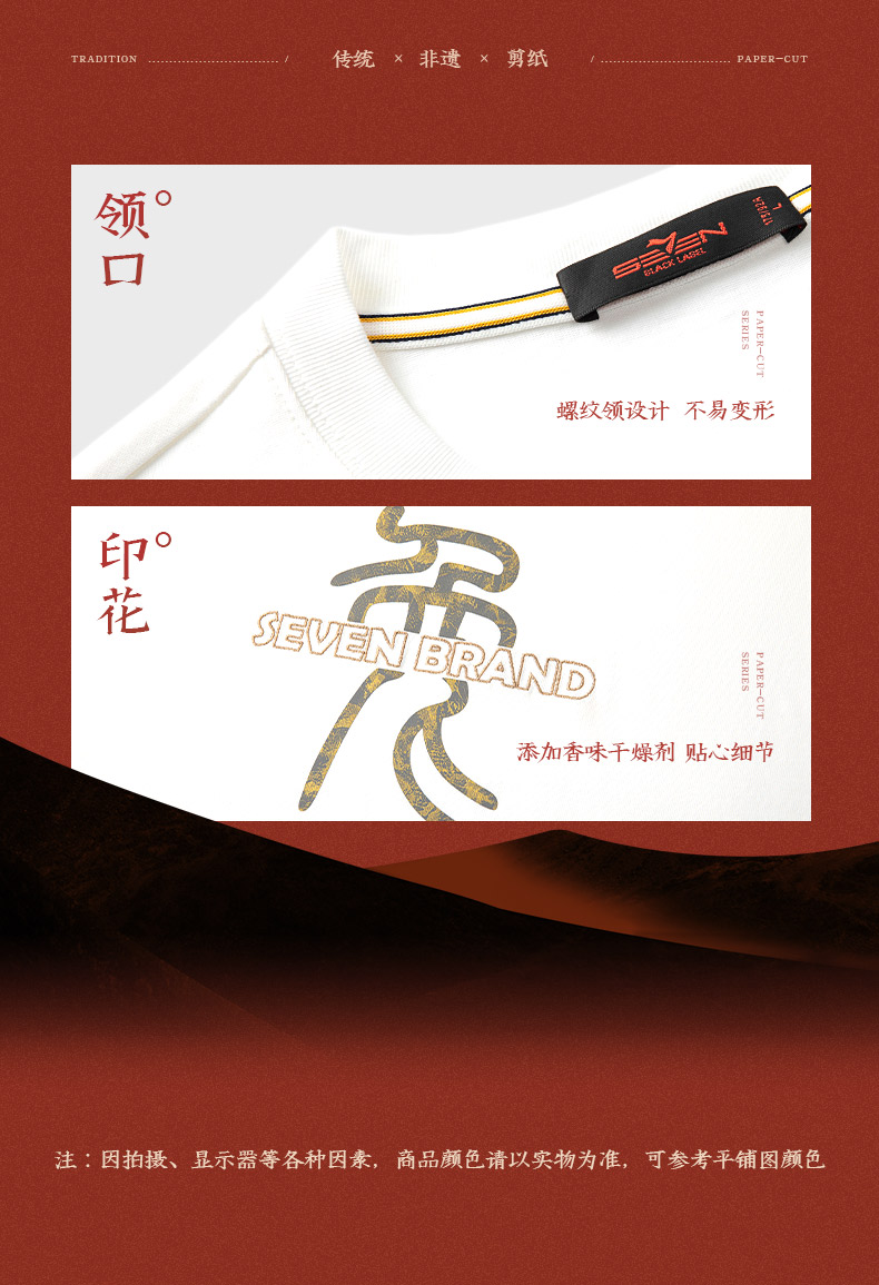 【非遗剪纸】柒牌男士纯棉T恤时尚休闲夏季新款白色圆领短袖上衣 124T72910