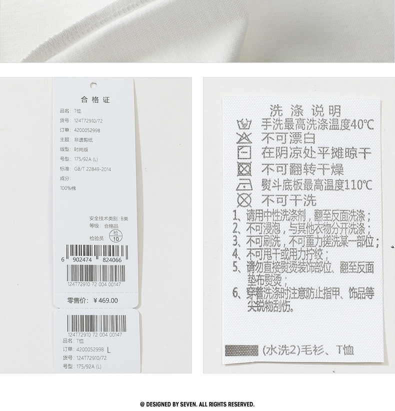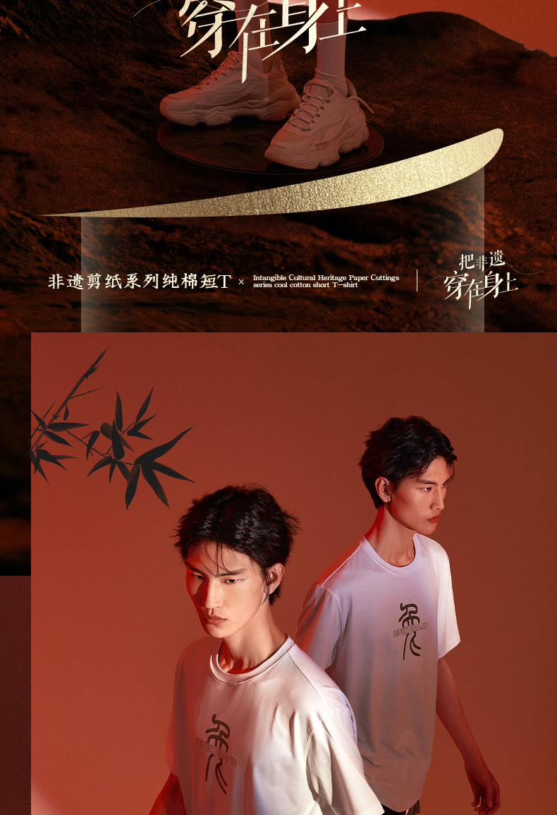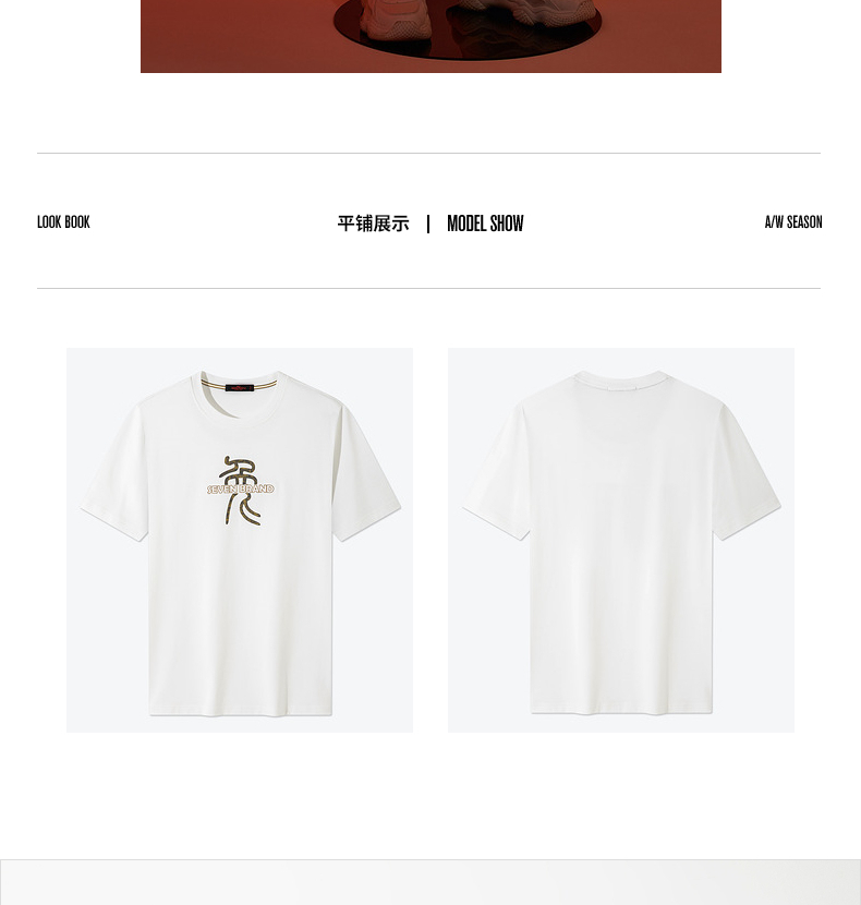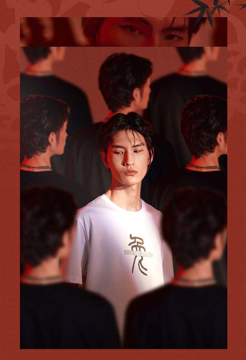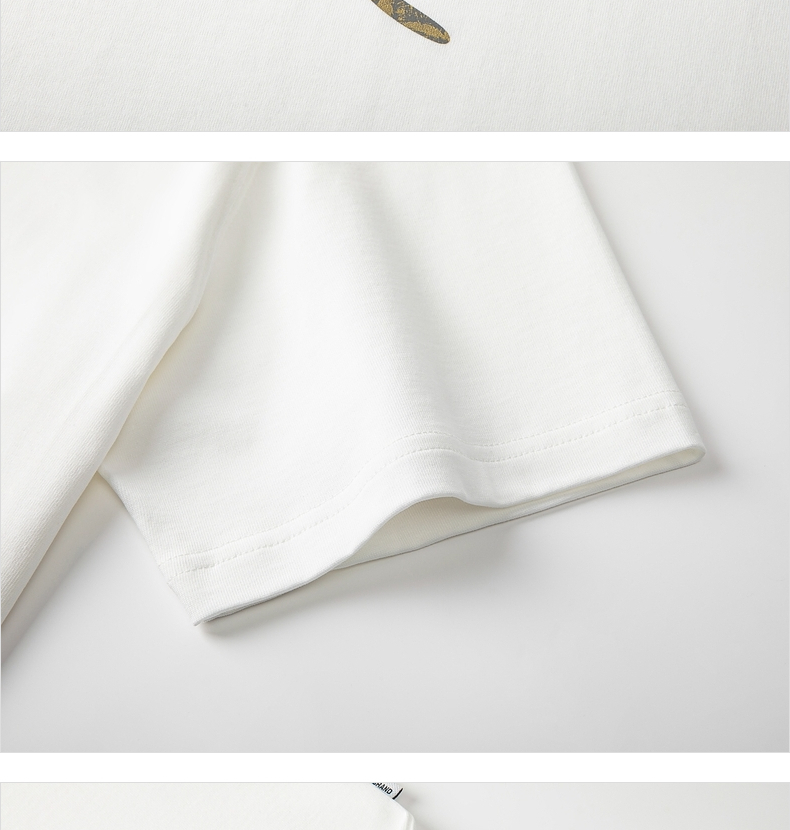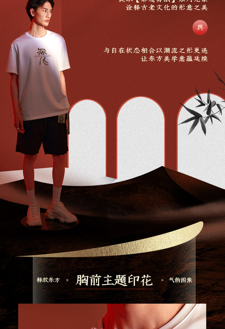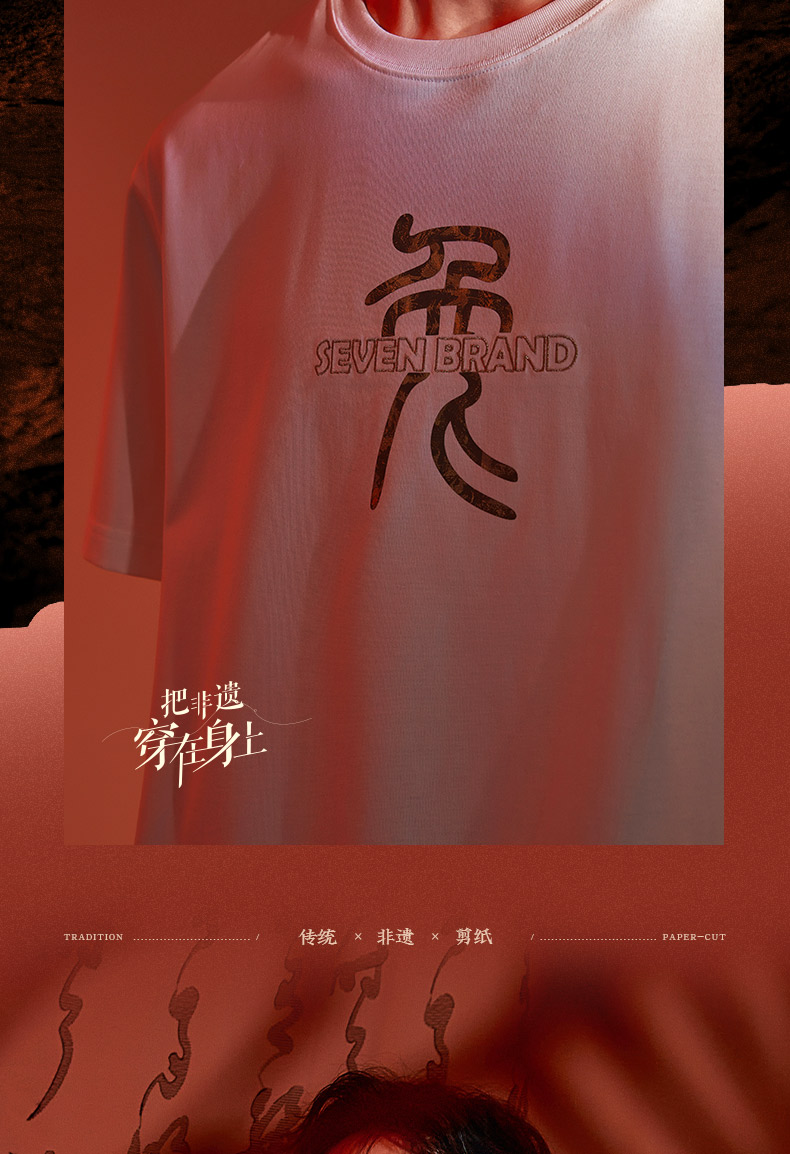 【非遗剪纸】柒牌男士纯棉T恤时尚休闲夏季新款白色圆领短袖上衣 124T72910