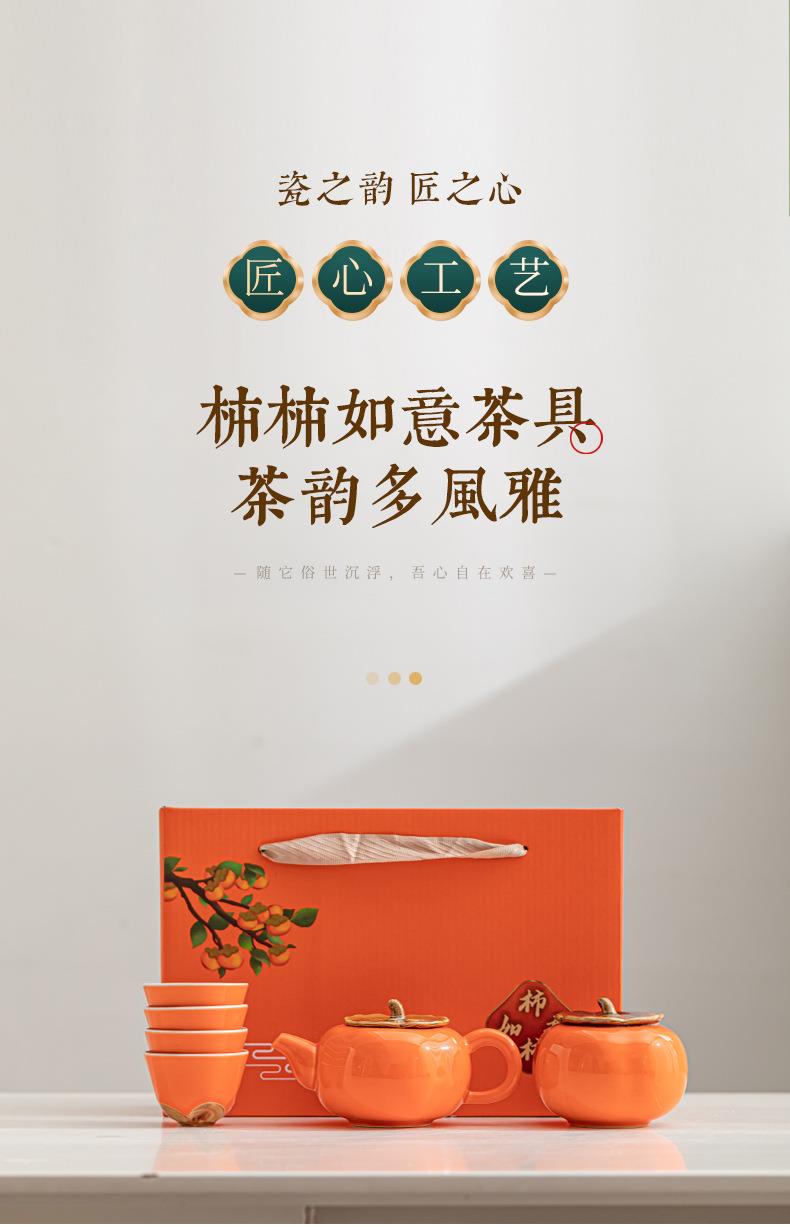 柿柿如意茶具套装柿子茶壶茶杯事事礼盒伴手礼年会公司陶瓷礼品小