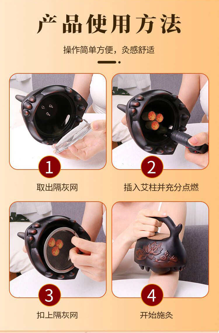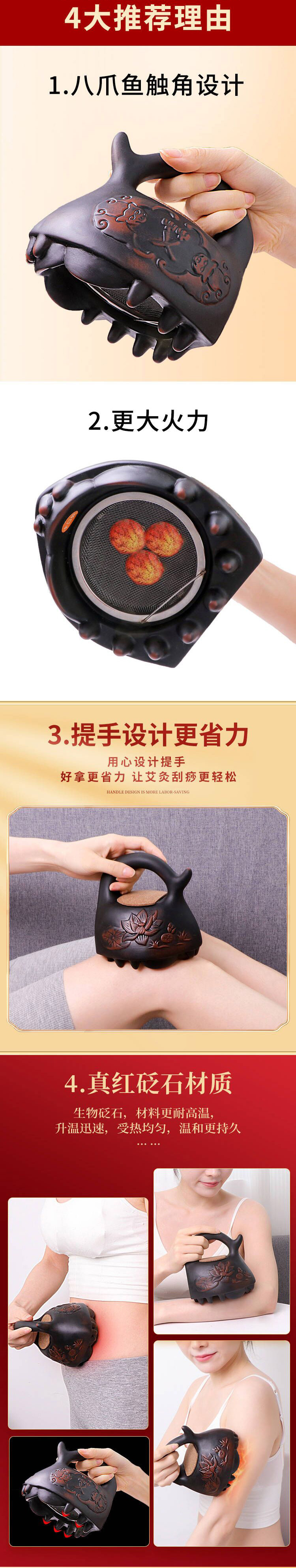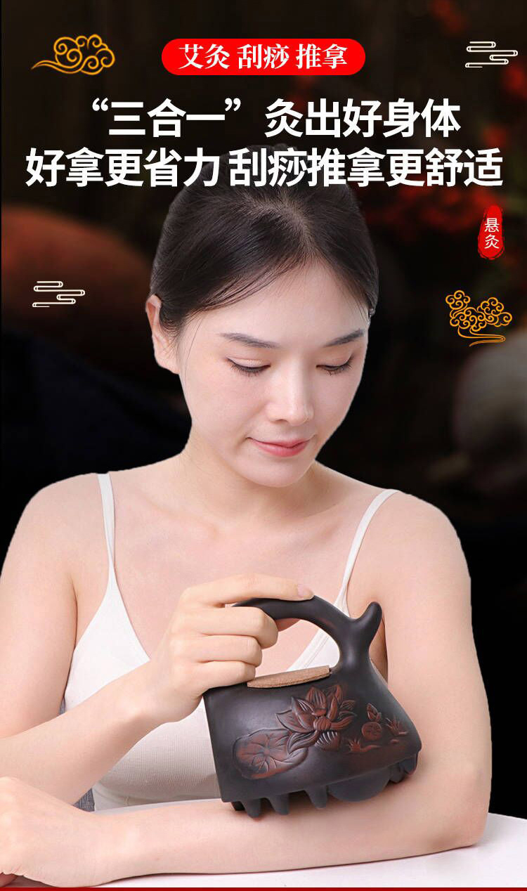 新款【红砭石熨斗灸】砭石艾灸器具推拿艾灸刮痧一体罐全身家用随身灸盒熏蒸通用型艾柱