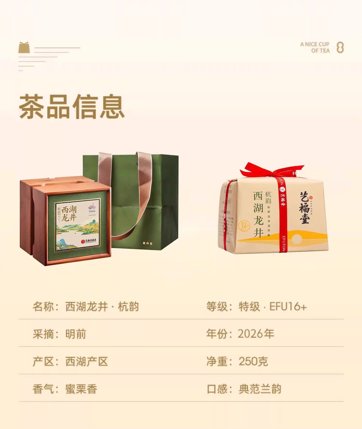 【新茶上市】艺福堂 明前特级龙井茶 杭韵西湖龙井EFU16+ 2026新茶 250g/包