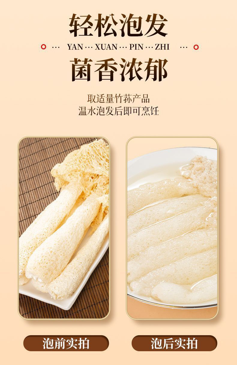 冠辉长裙竹荪(150g/250g) 新鲜干货 严格甄选 轻松泡发 菌香浓郁 自然原色 菌柄粗壮 原色无硫 #M663