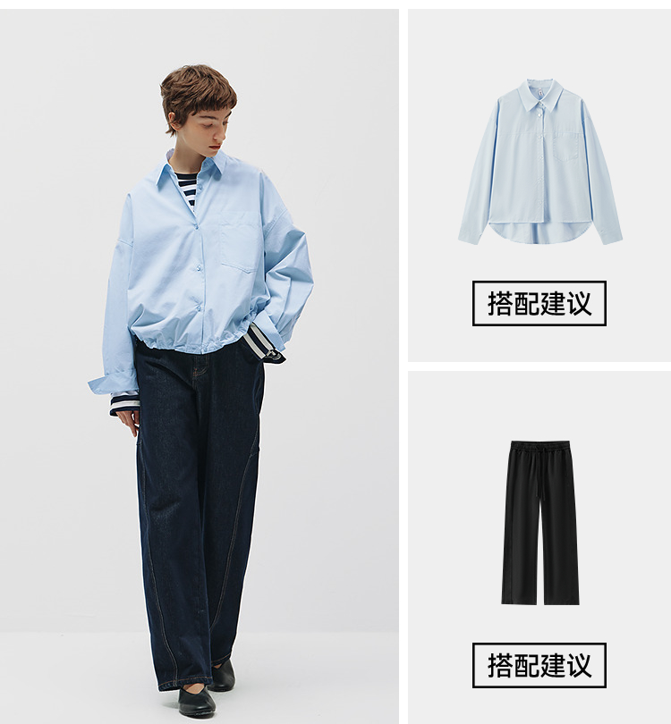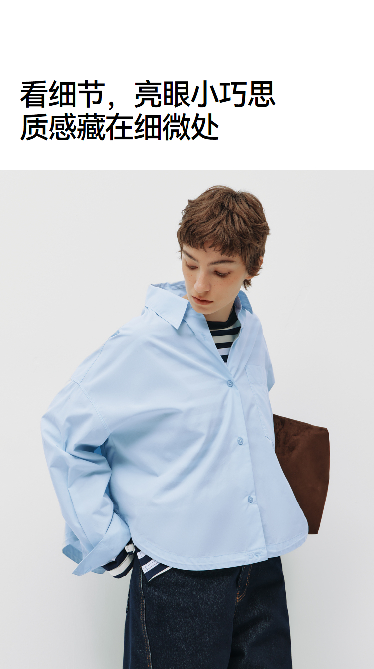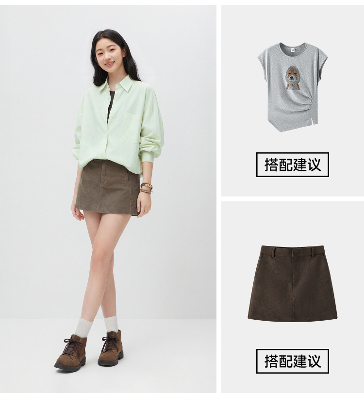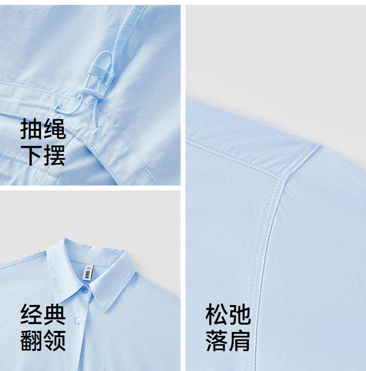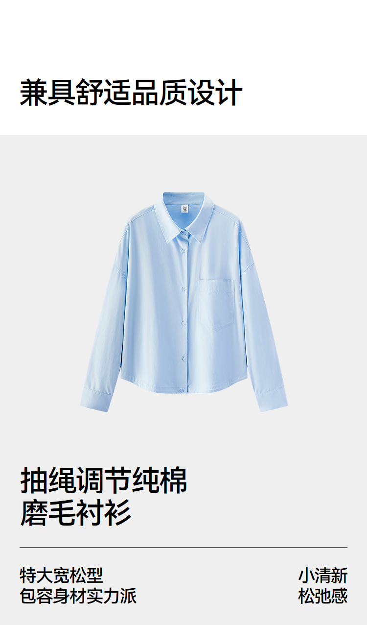 商场同款|森马长袖衬衫女春季磨毛纯棉oversize抽绳2026新款衬衣