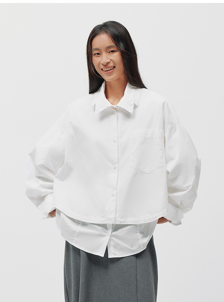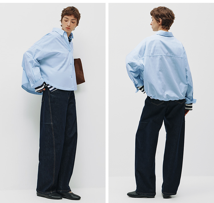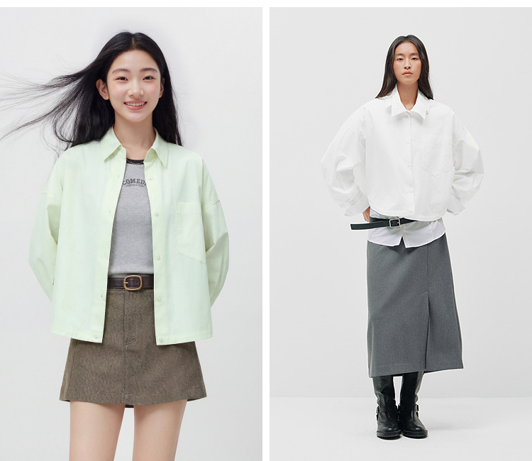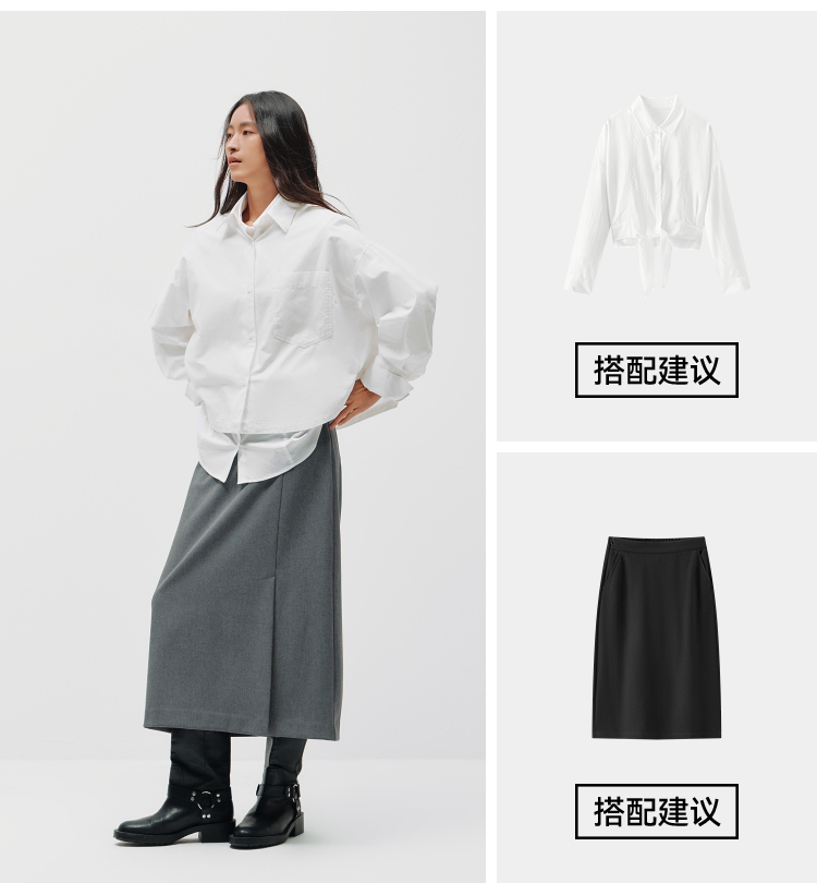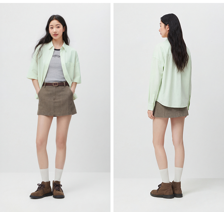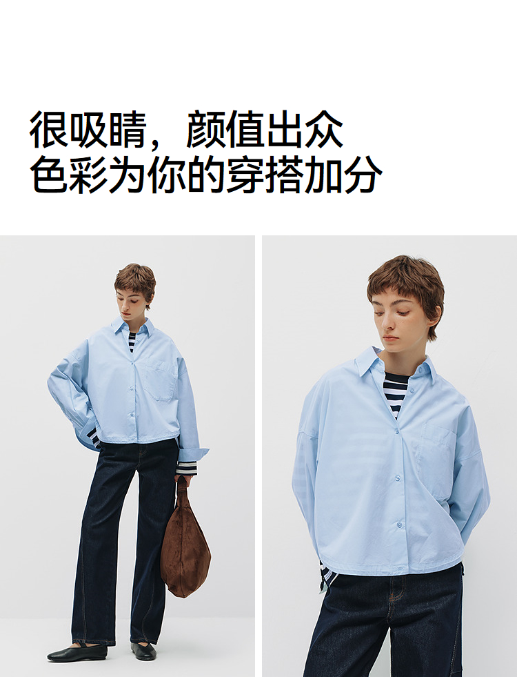 商场同款|森马长袖衬衫女春季磨毛纯棉oversize抽绳2026新款衬衣