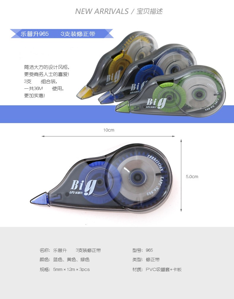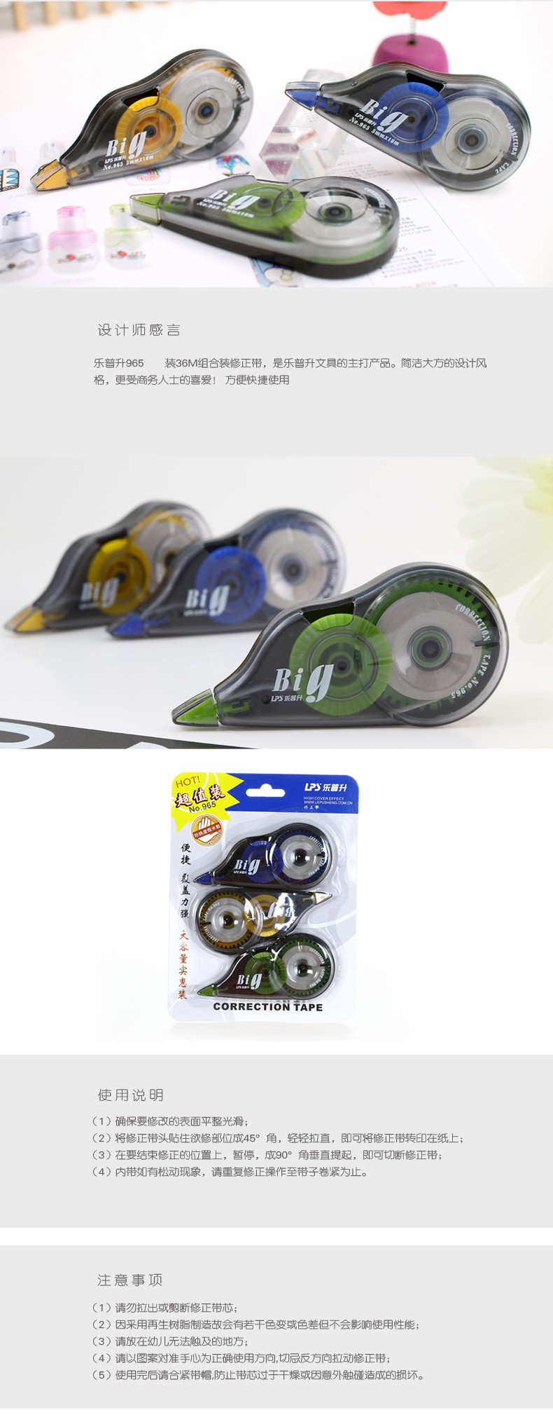 乐普升5mm*12m/3个装修正带(965)学生用涂改带改正带实惠装改正带 可便携改错带