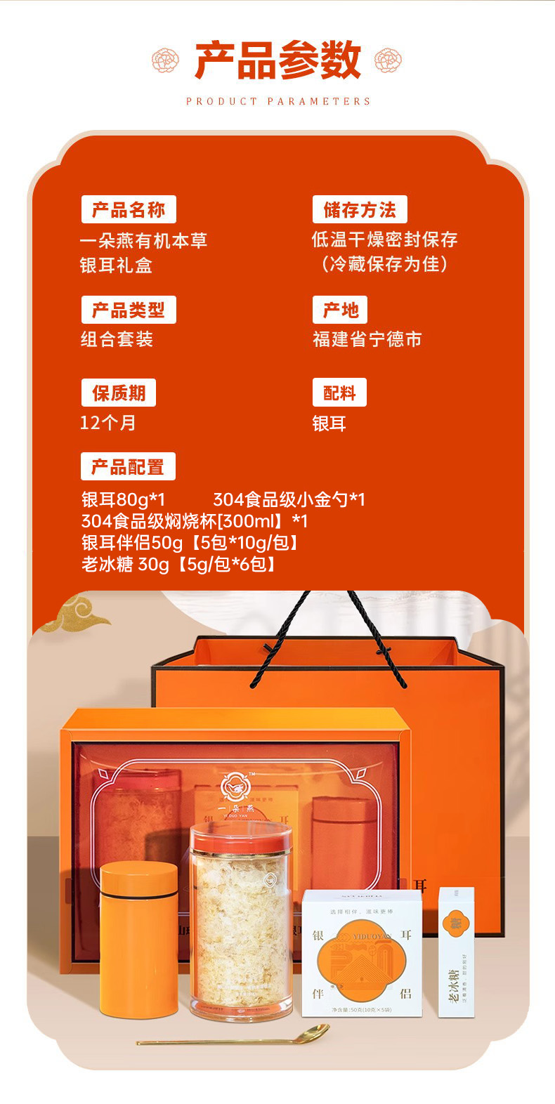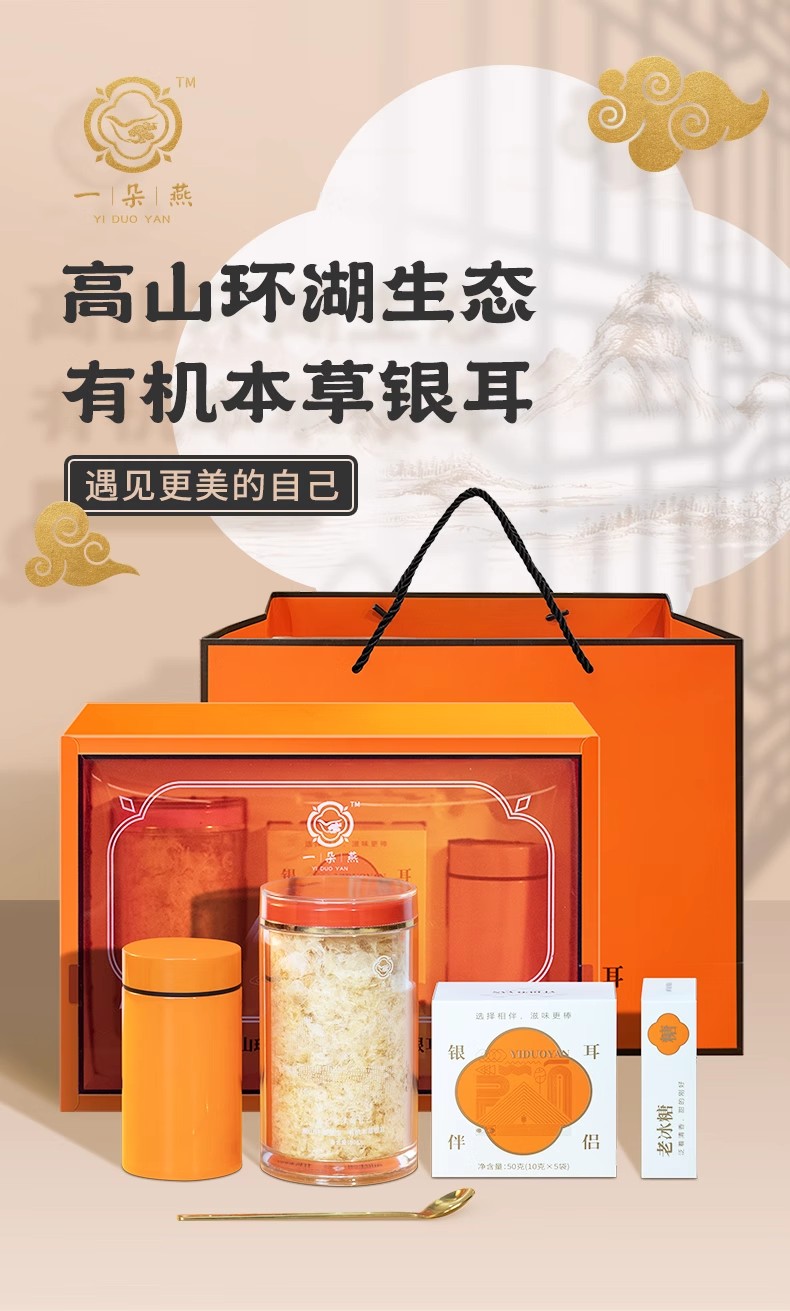 【一朵燕】有机本草银耳礼盒版橙色礼盒一罐装送礼袋