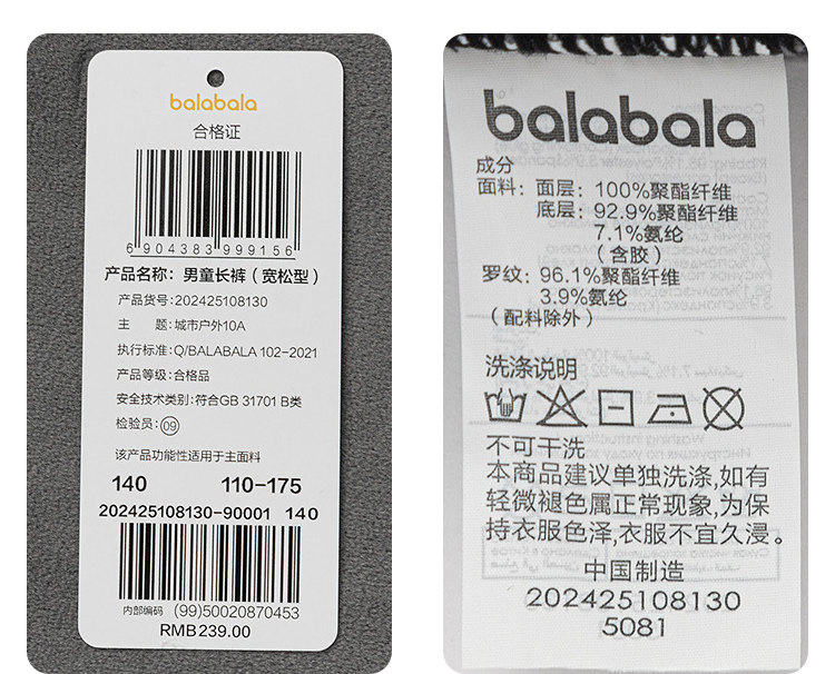 【商场同款】巴拉巴拉童装男童加绒裤子2025秋冬新款儿童束脚长裤