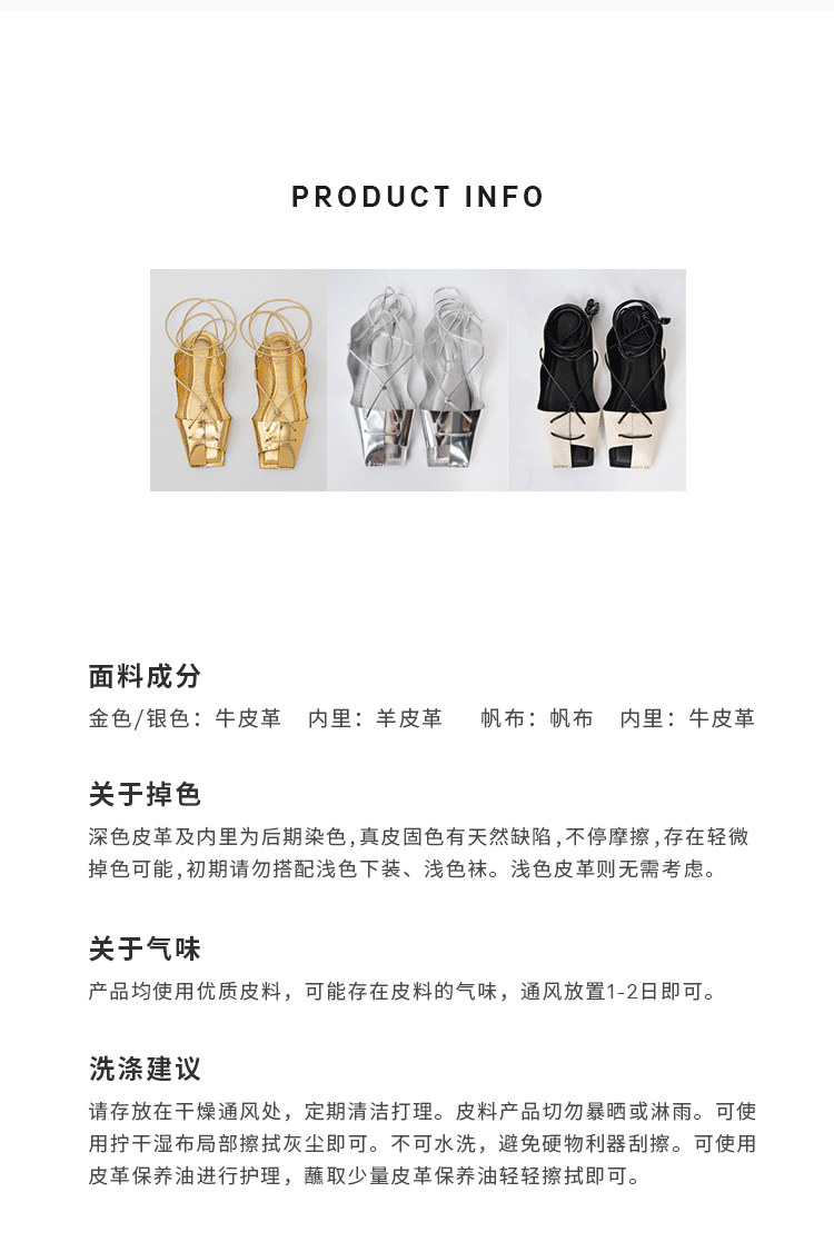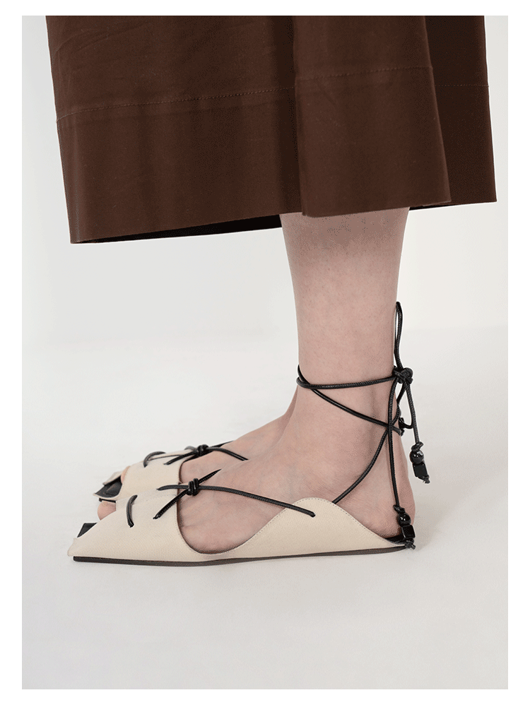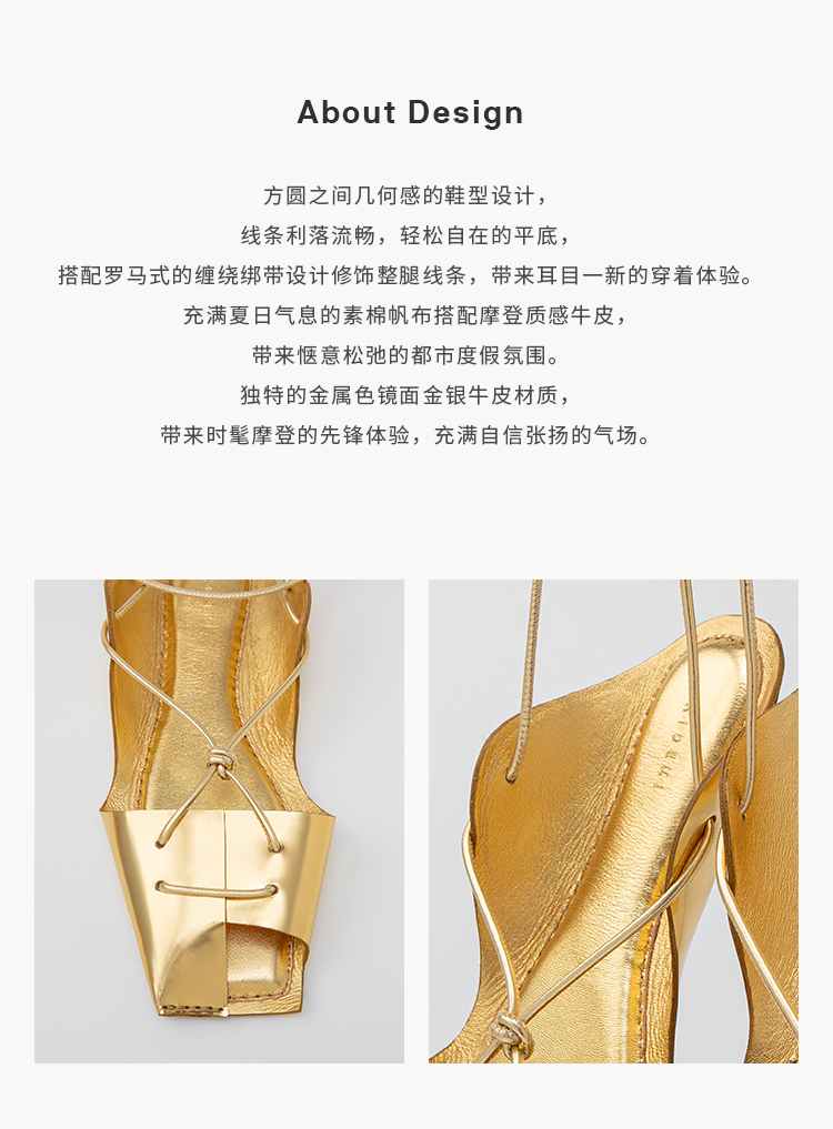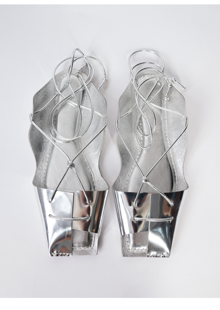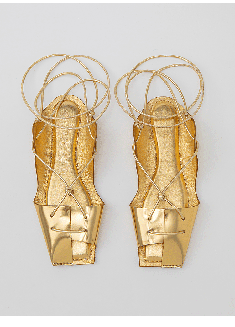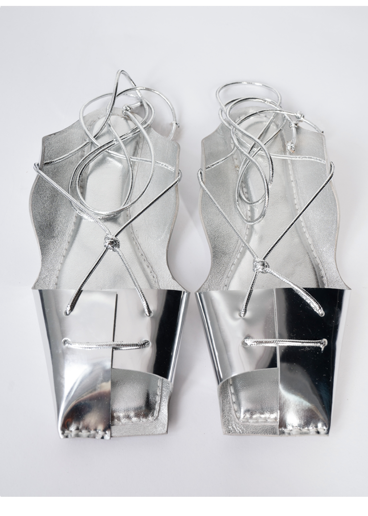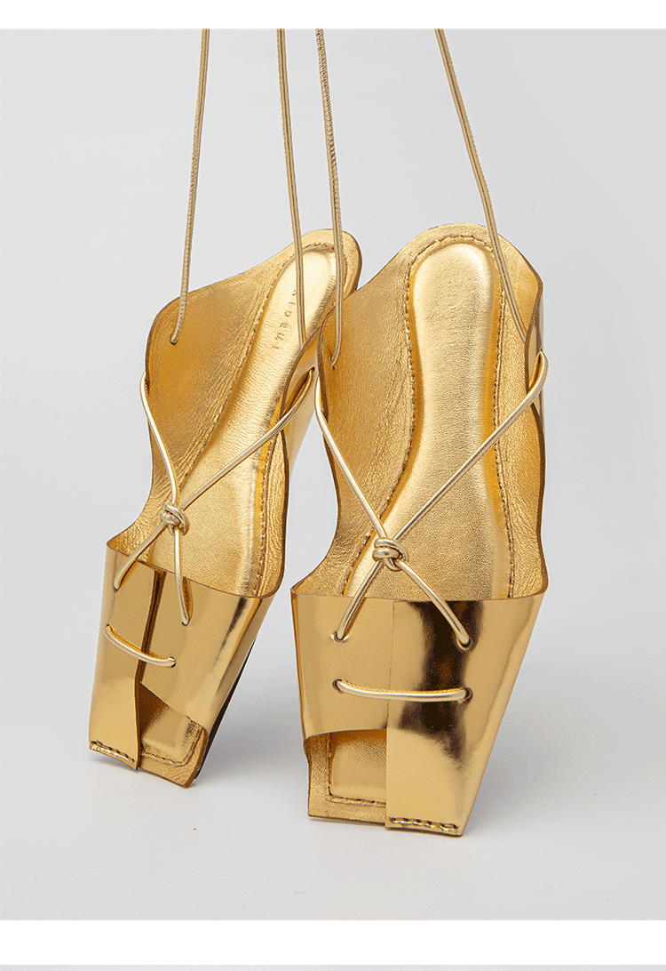 HIDEMI 极简露趾设计感系带式凉鞋 黑白拼色/金色/银色