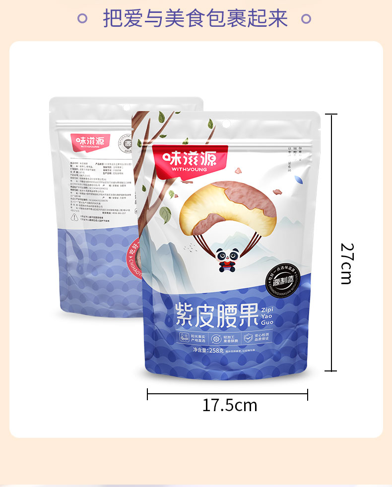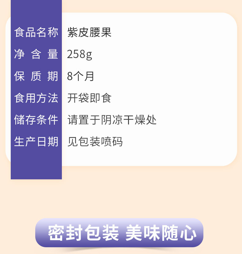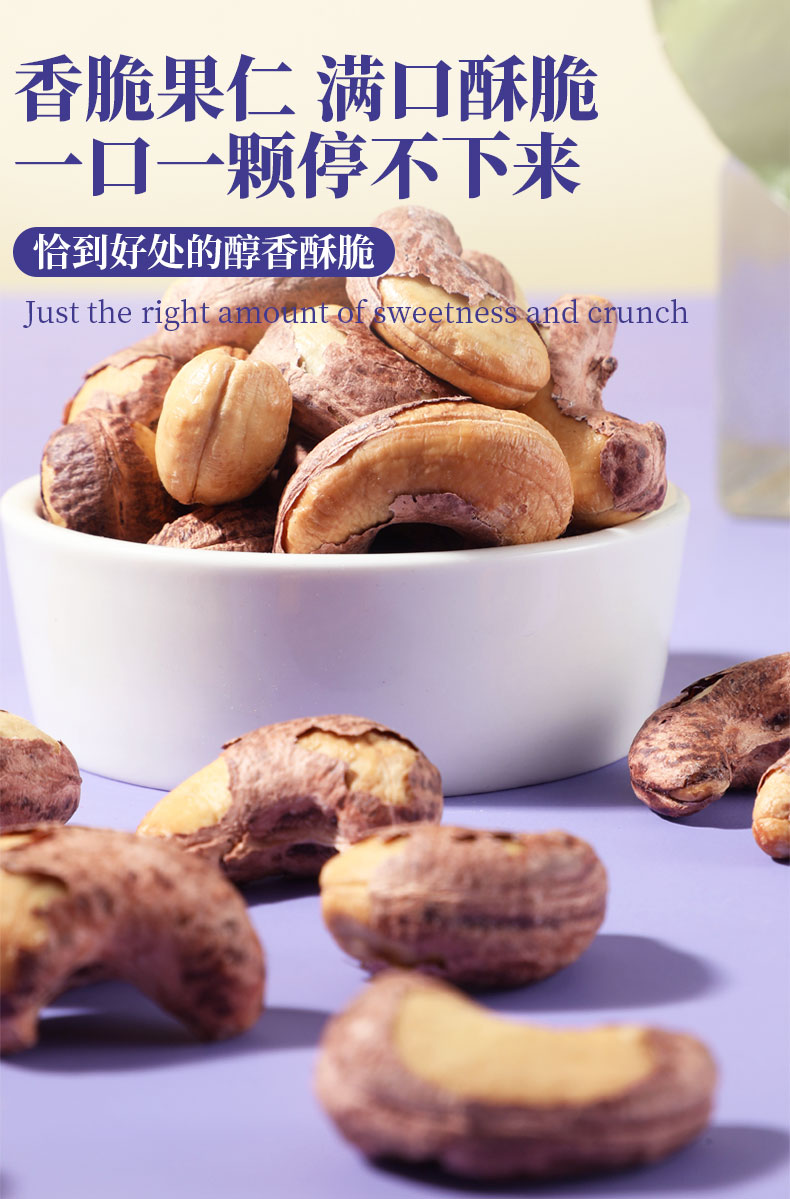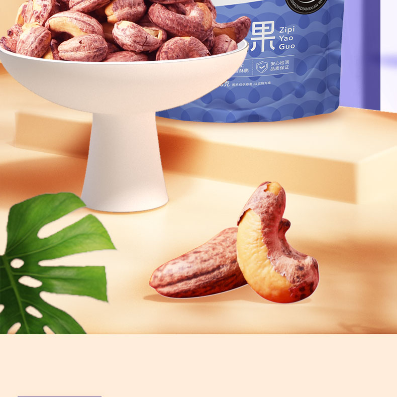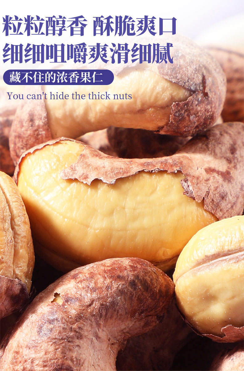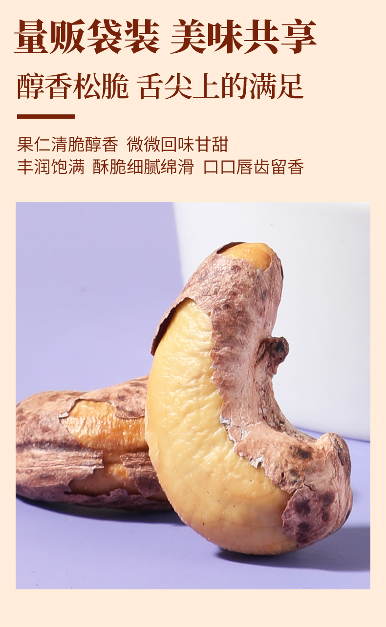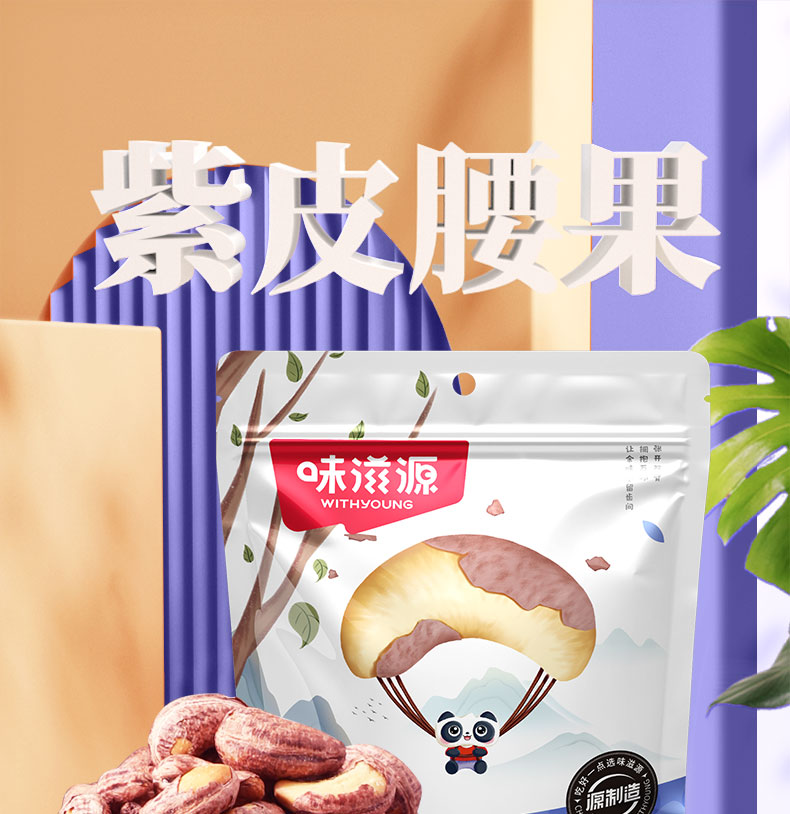 味滋源紫皮腰果仁258g大颗粒带皮坚果炒货特产淡盐焗味干货零食品【FX】