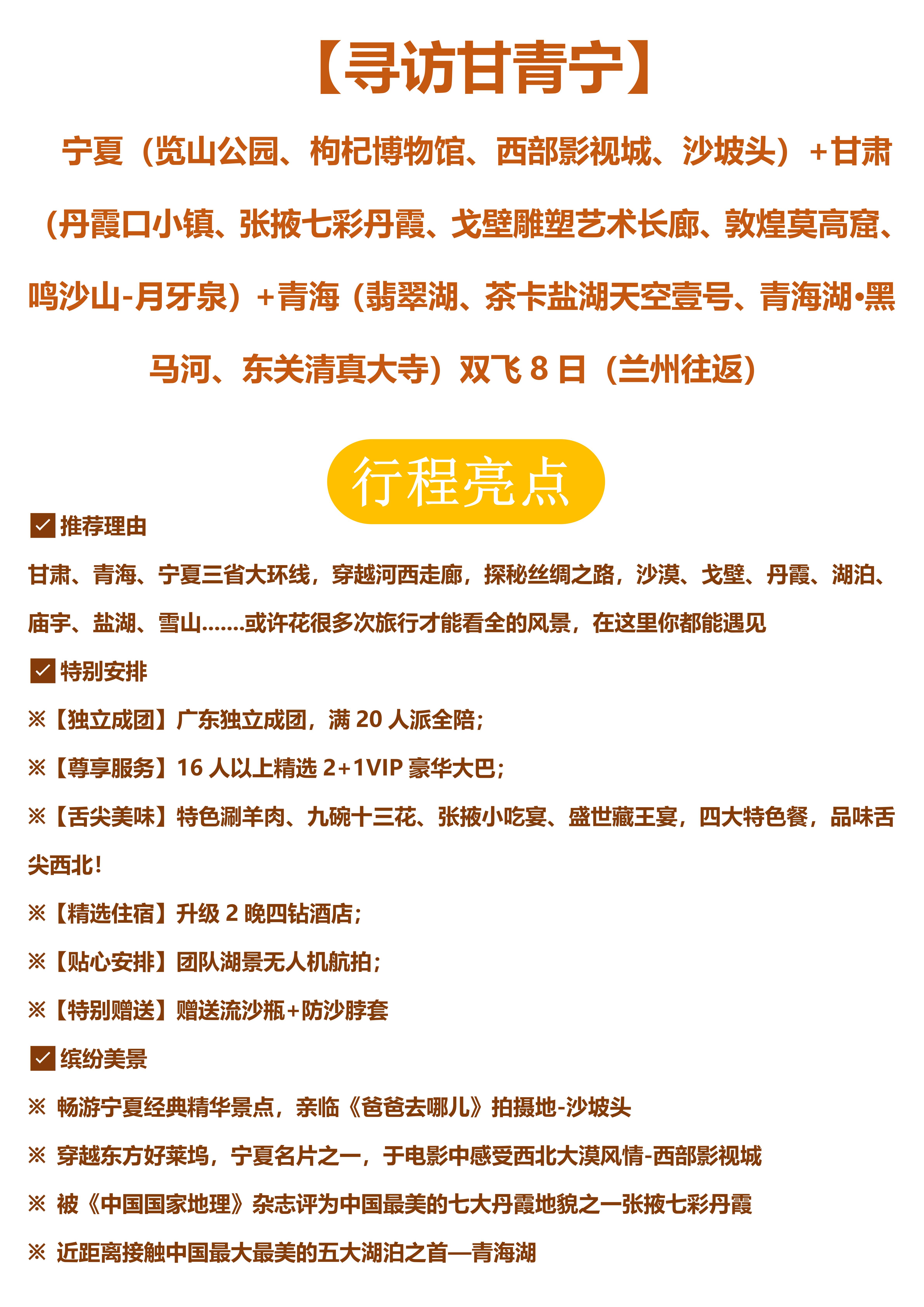 【寻访甘青宁】宁夏+青海+甘肃三省联游大环线双飞8日