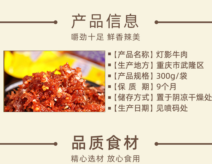 灯影牛肉丝陪都记忆300g五香藤椒麻辣地道川渝滋味休闲零食.