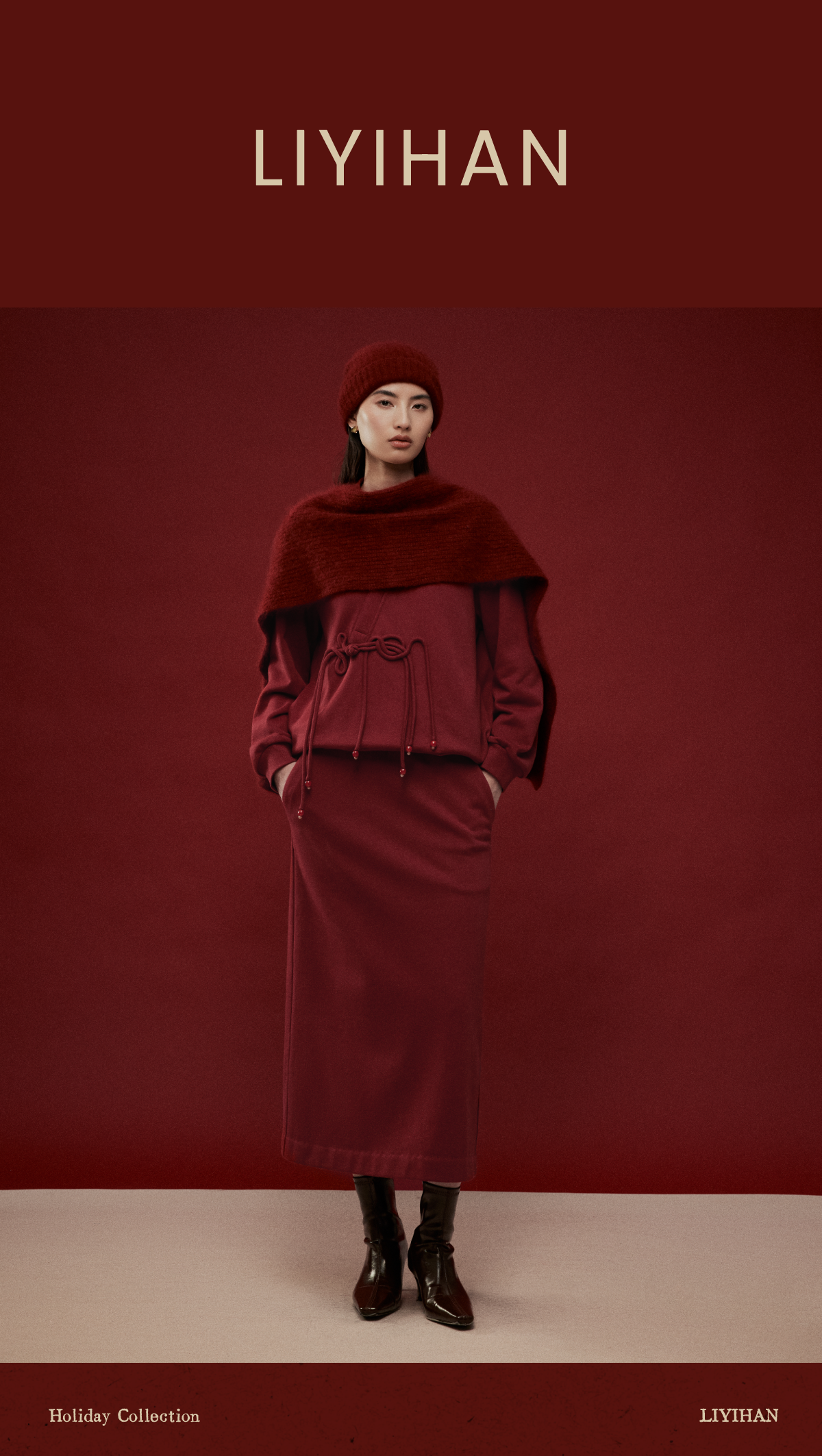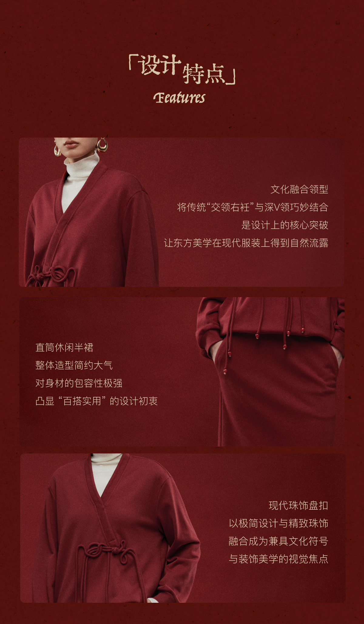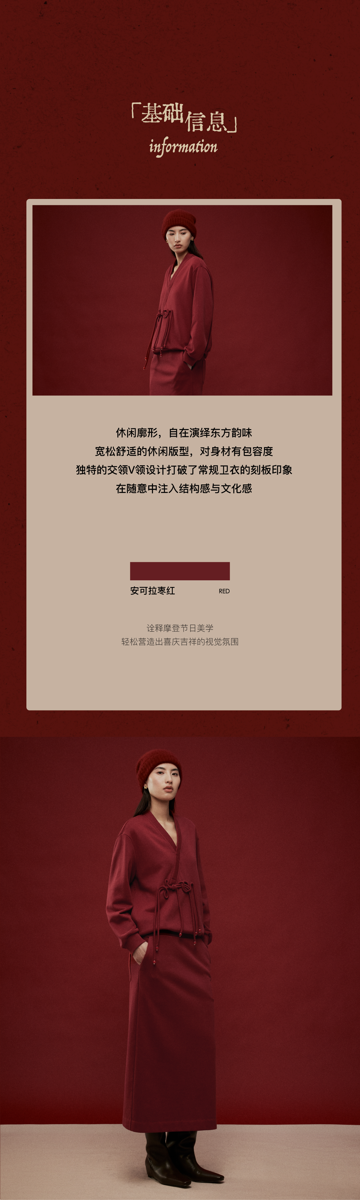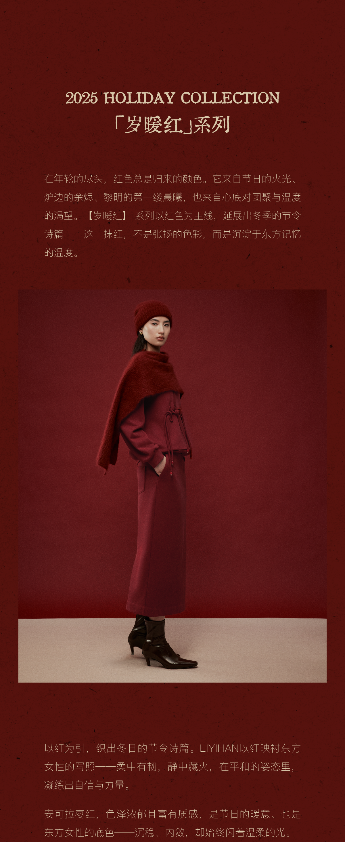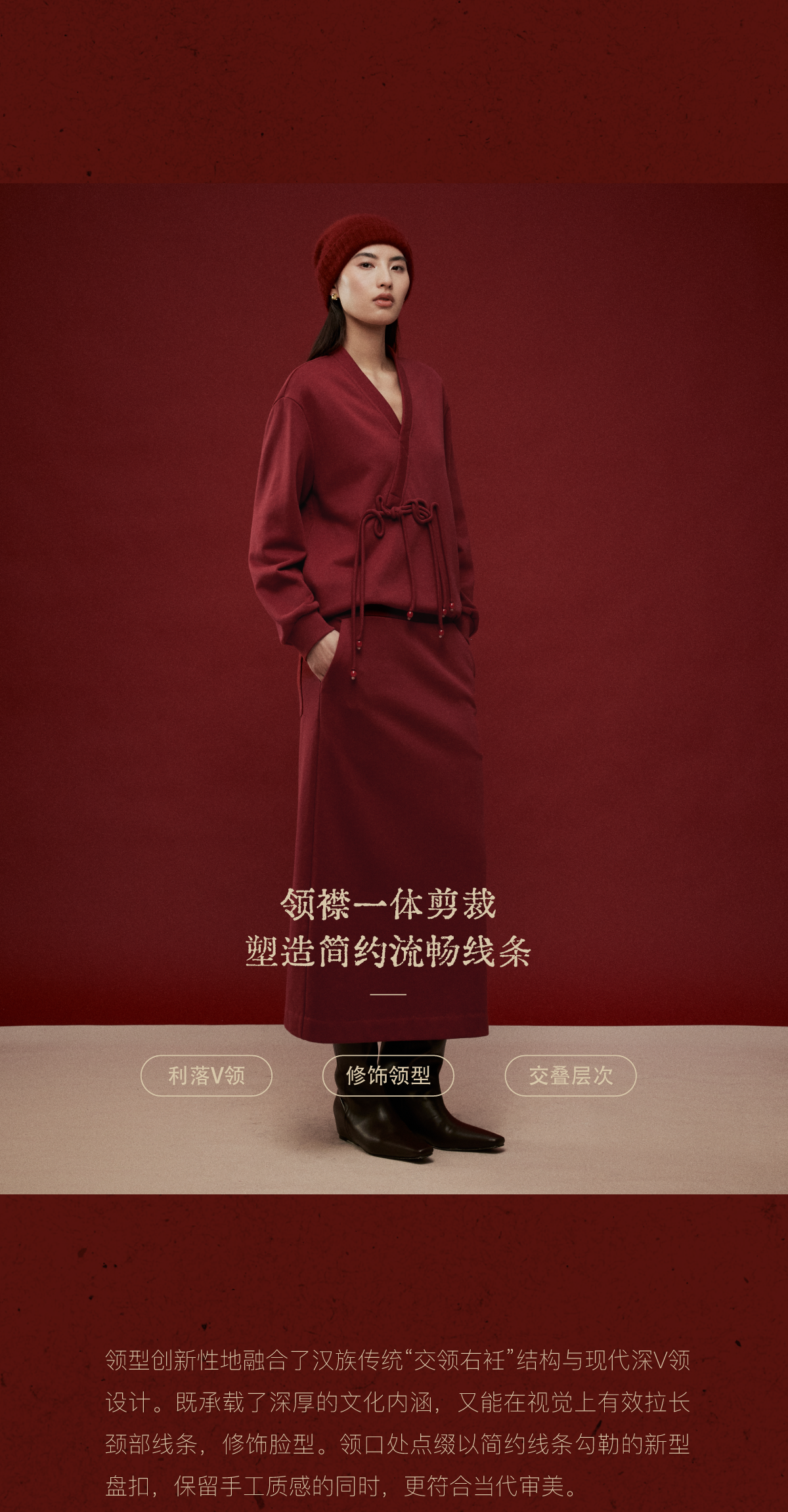 LIYIHAN岁暖红2025冬季新款新中式棉质盘扣V领红色套装