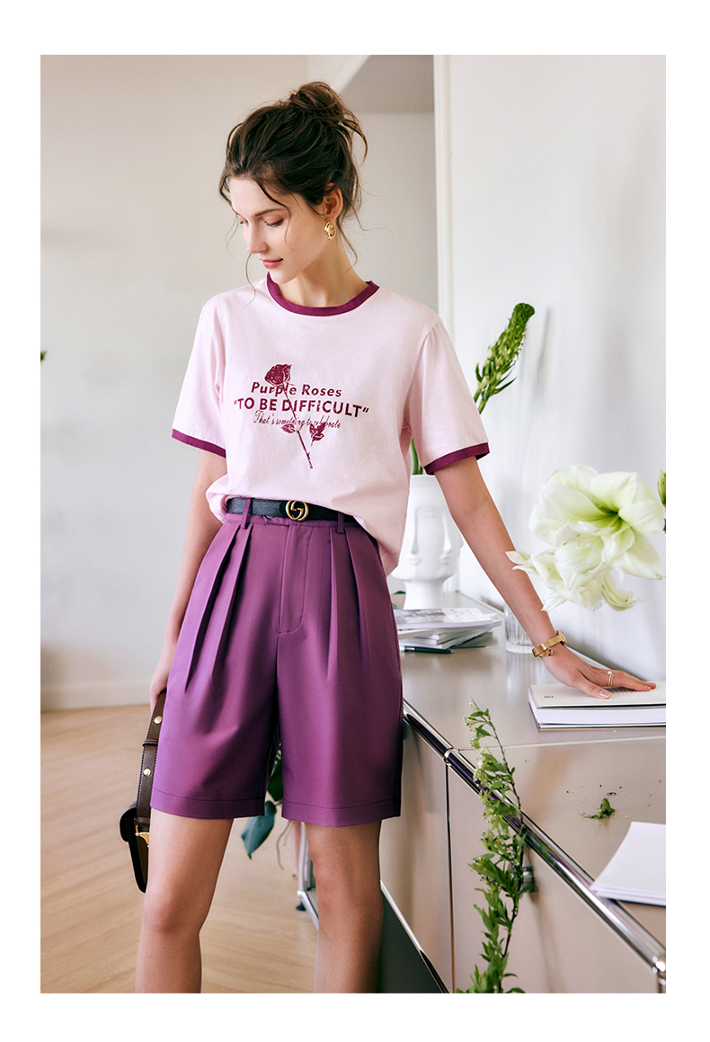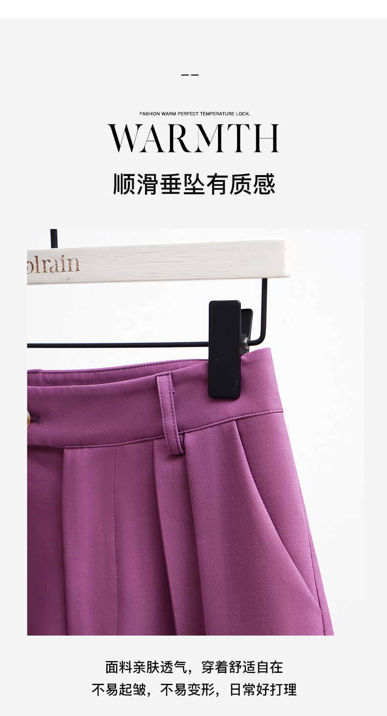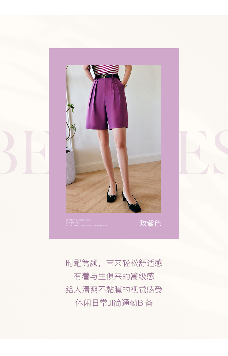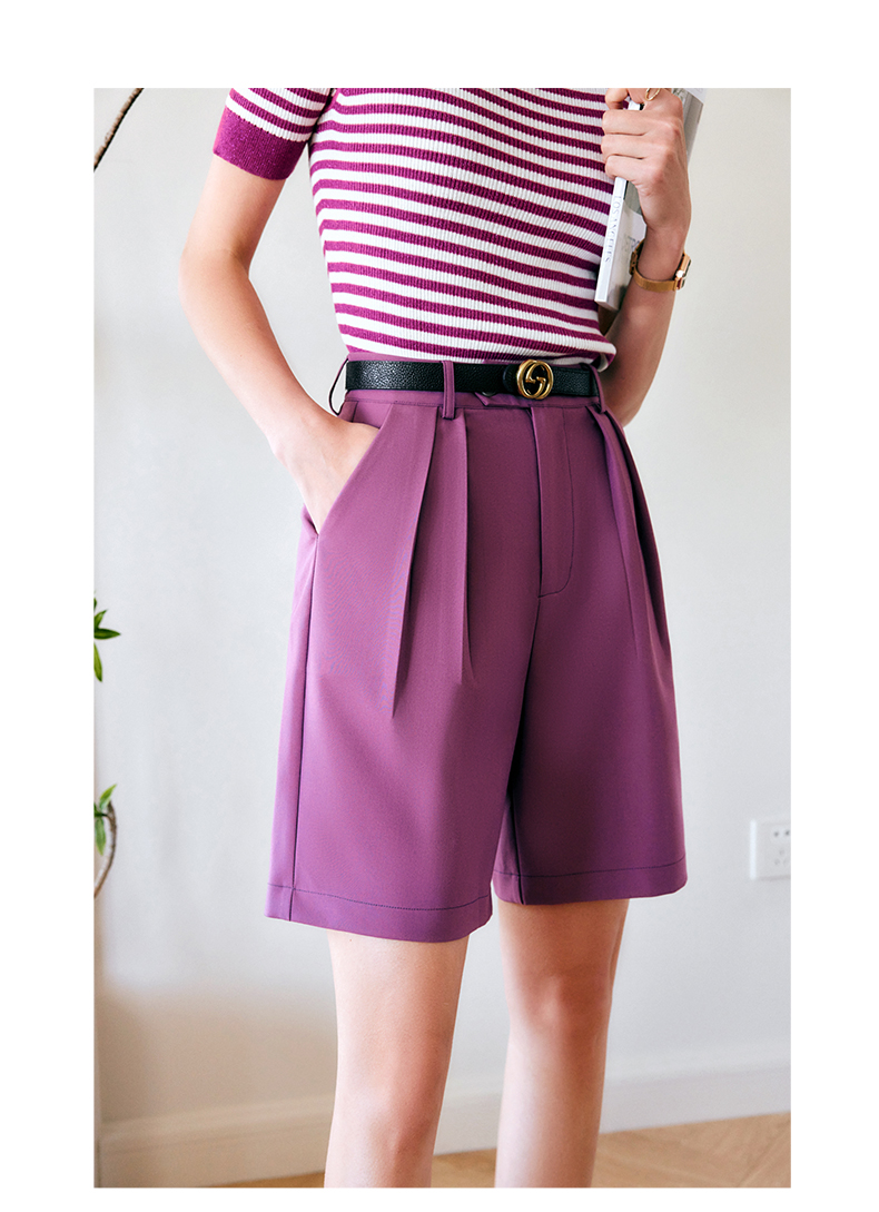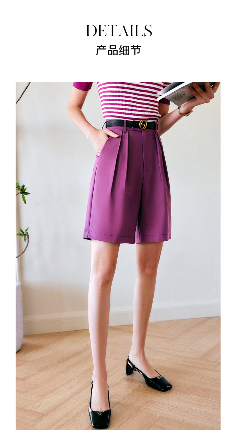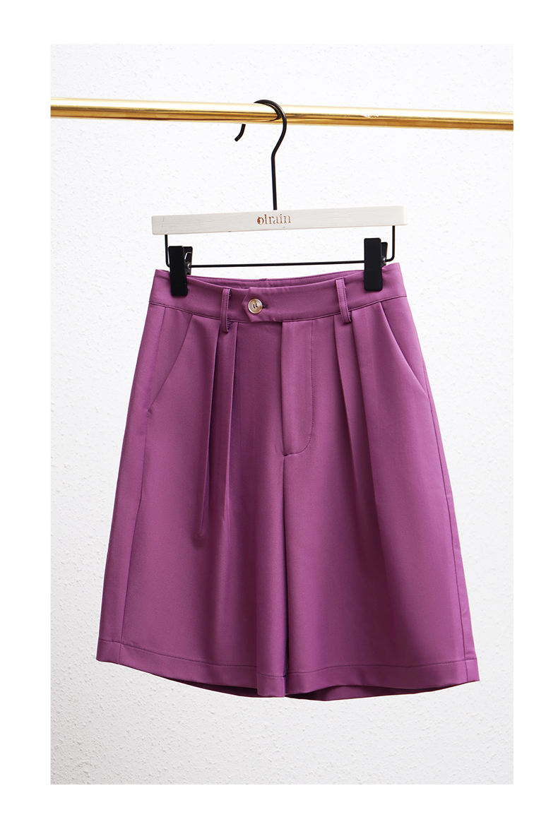 欧芮儿OLrain法式紫色休闲裤女夏季2022年新款气质阔腿西装短裤