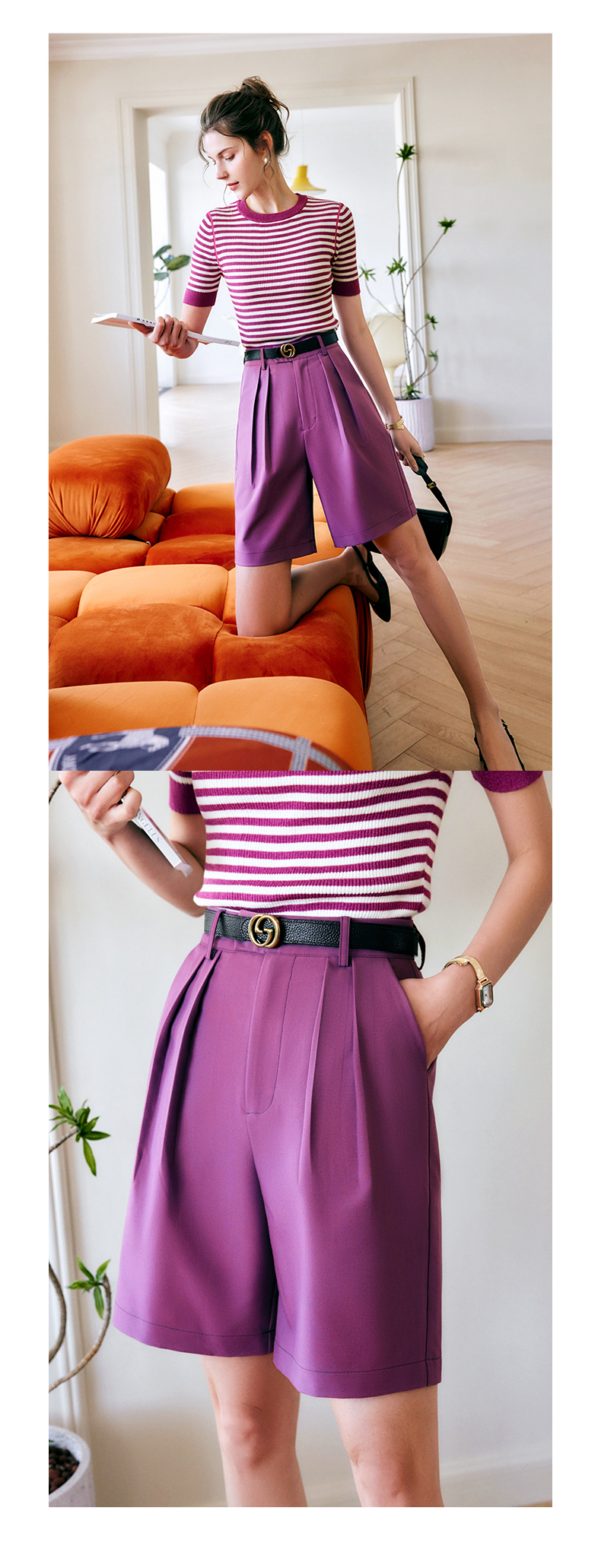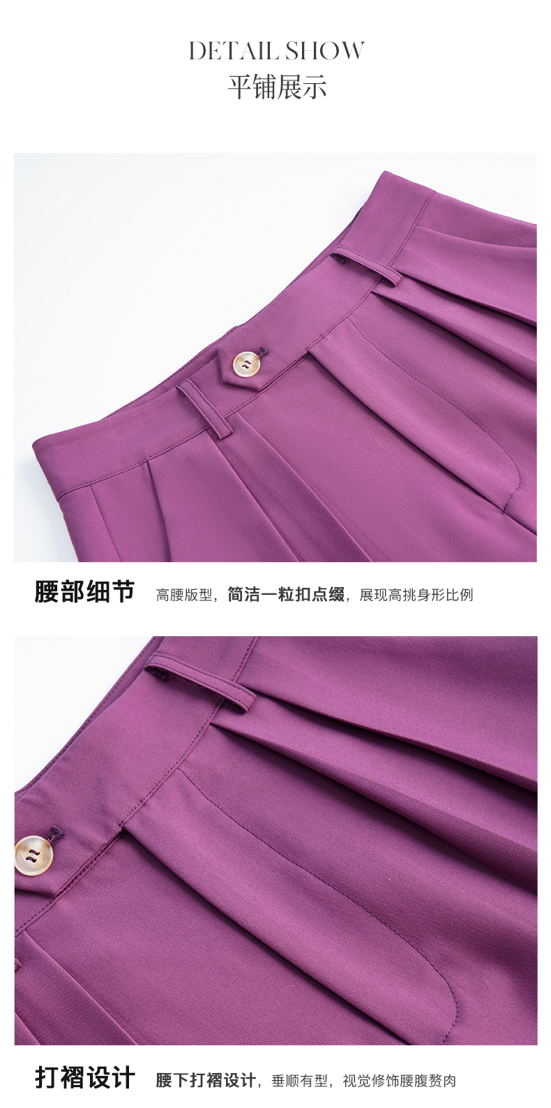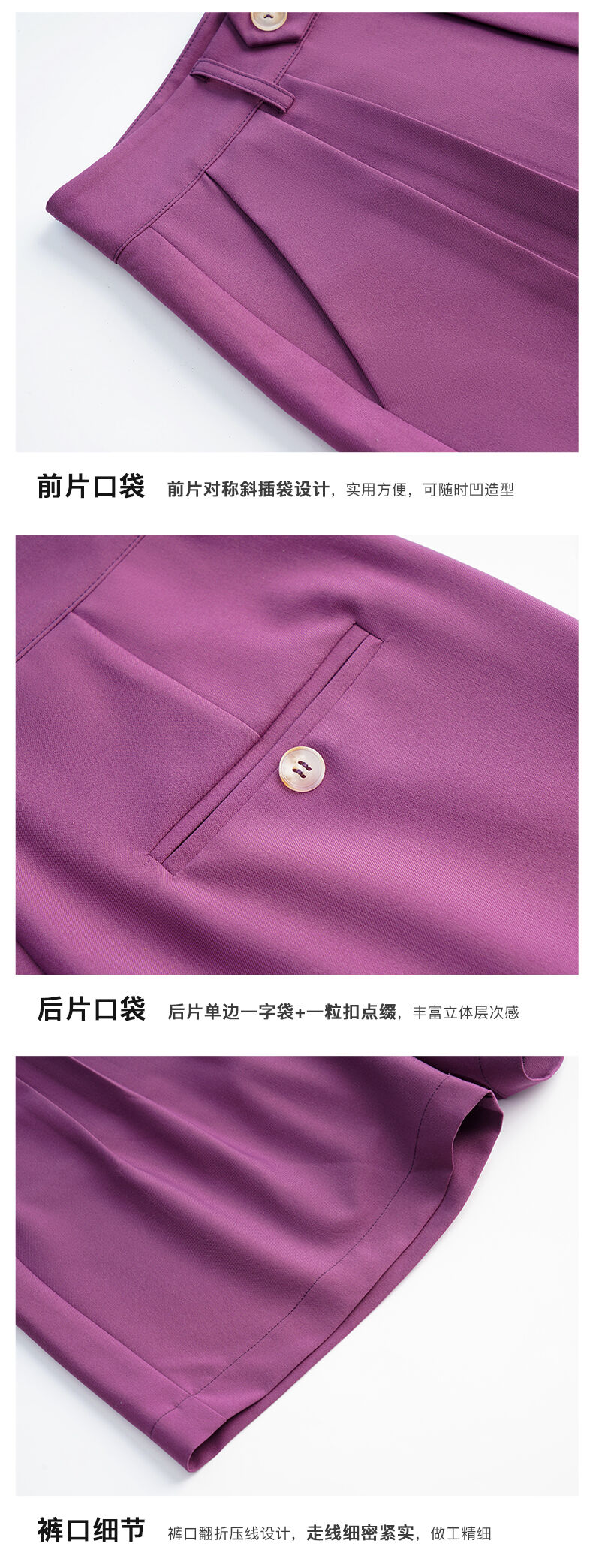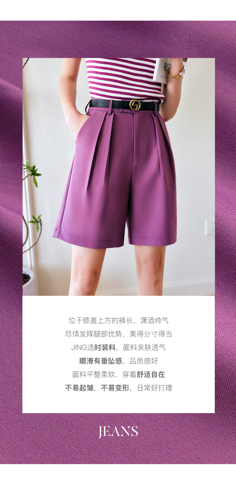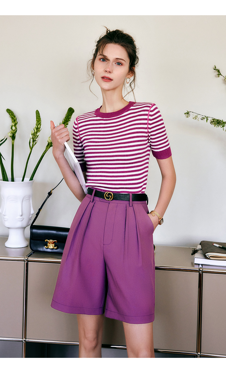 欧芮儿OLrain法式紫色休闲裤女夏季2022年新款气质阔腿西装短裤