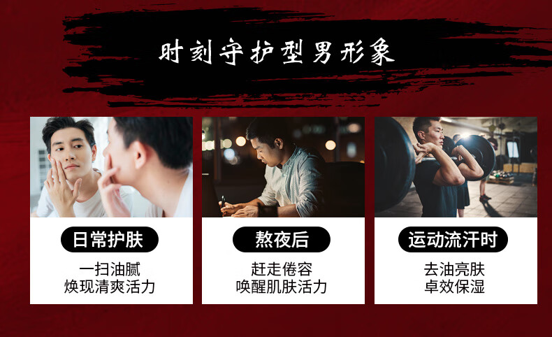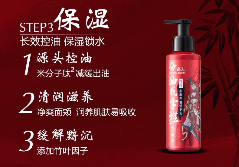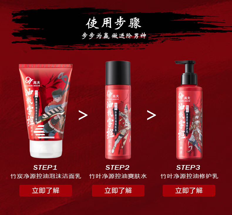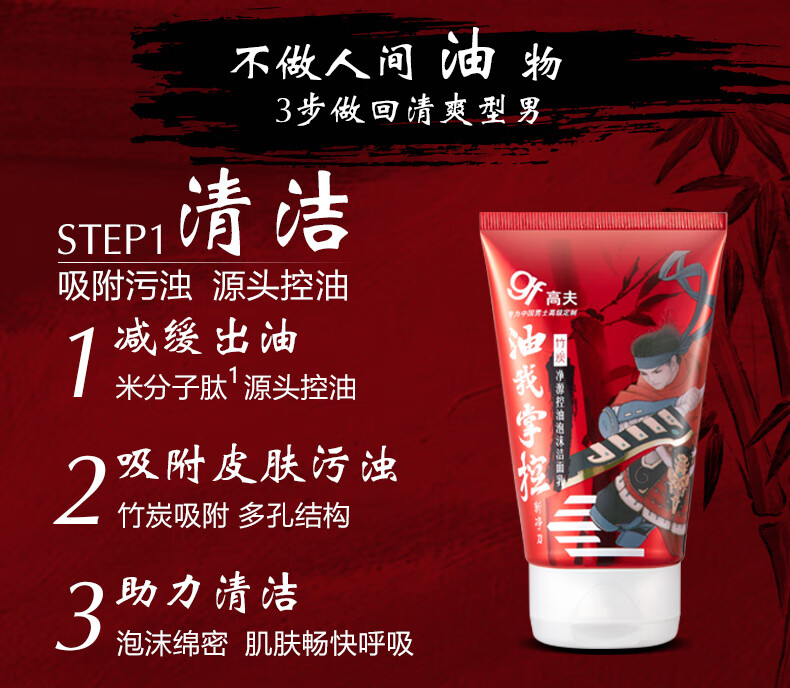 高夫竹炭净源控油三部曲(洗面奶100g+爽肤水125ml+乳液125ml+洗面奶50g*2+竹炭面膜*5 )男士水乳护肤礼盒