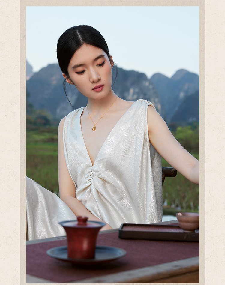 周六福5G黄金项链女款2代无极金系列时髦金计价足金颈饰串珠链坠