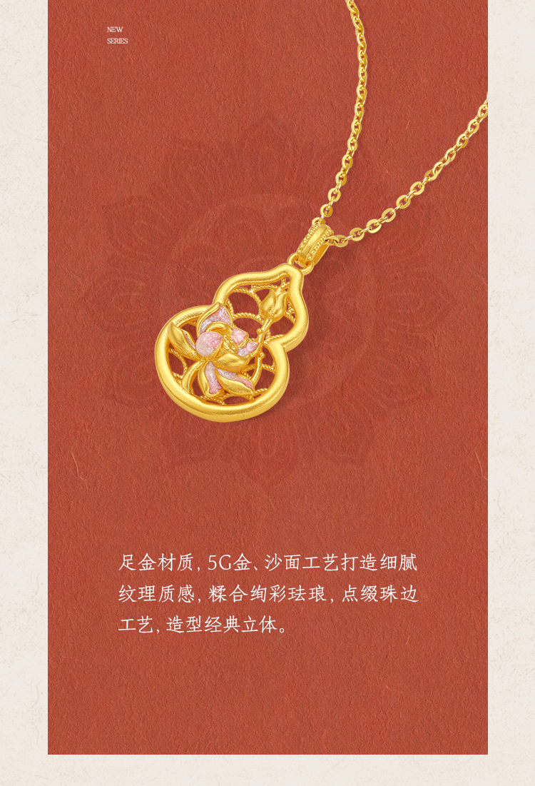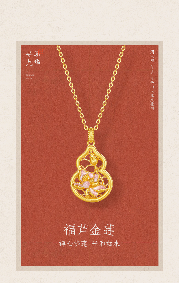 周六福5G足金计价吊坠禅心佛莲好运葫芦金莲九华山系列节日礼物