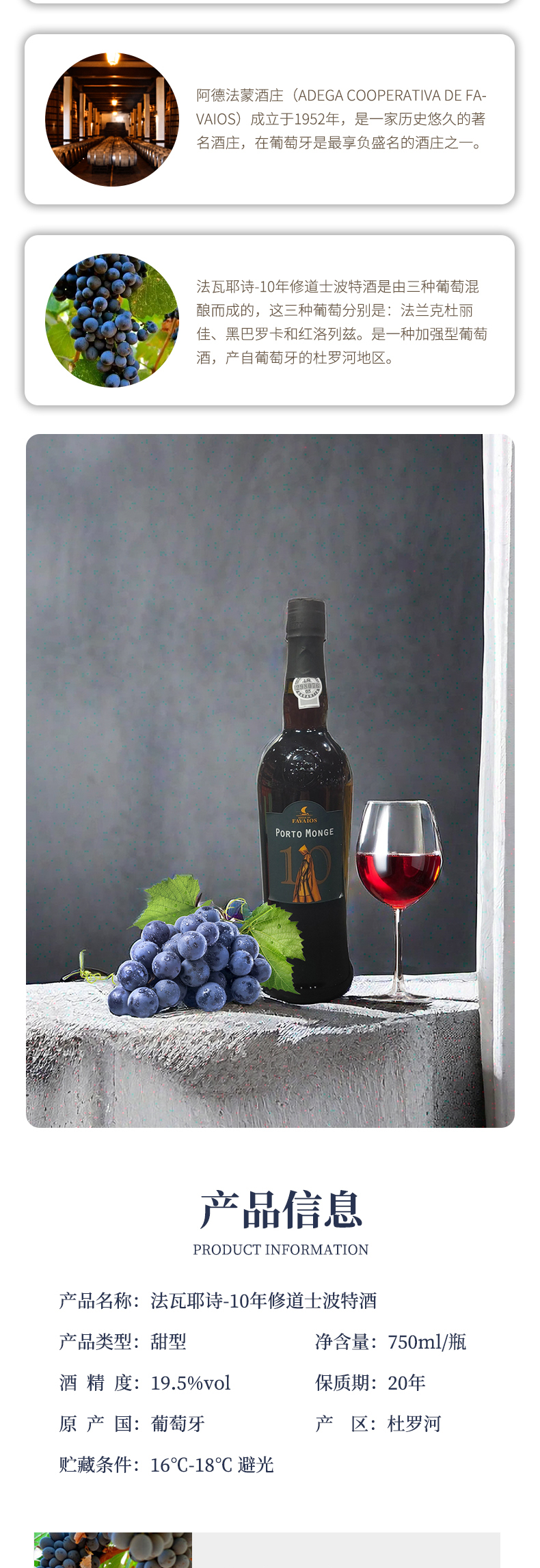 葡萄牙进口法瓦耶诗10年修道士波特酒750ml