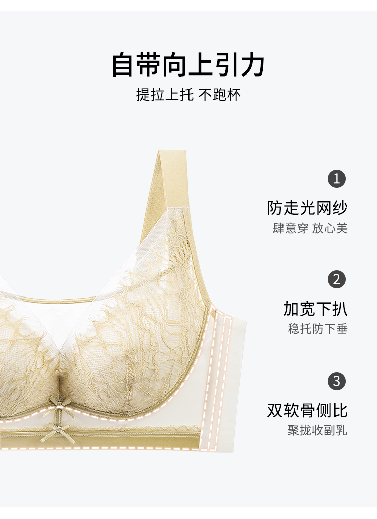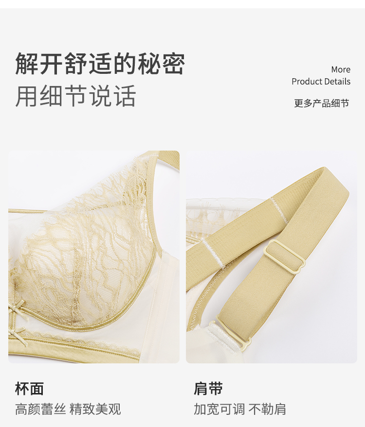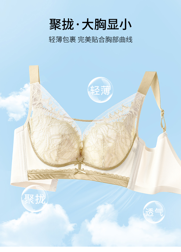 【B-D全罩杯】熳洁儿 内衣女大胸显小睫毛蕾丝文胸轻薄透气聚拢防下垂23261551 商品图7
