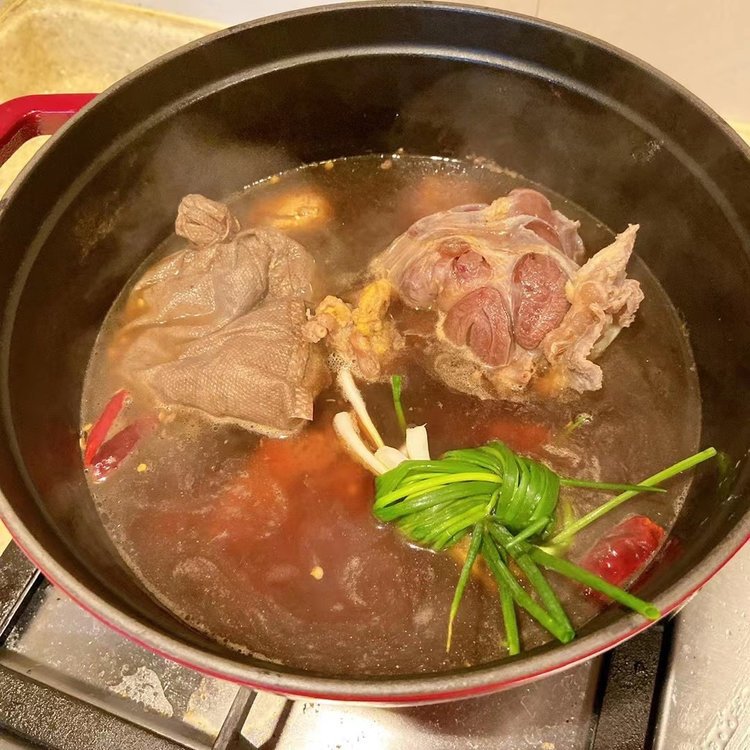 较为家常的烹饪方式是整块去卤或者煮。卤至用筷子能较轻易插入肌肉中心时,即告成功。推荐在卤汁内浸泡一晚,更为酥软入味。