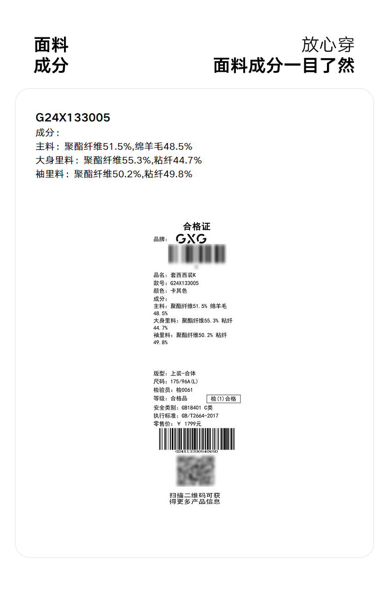 GXG男装 含羊毛商务休闲西装男士正装 24年秋G24X133005