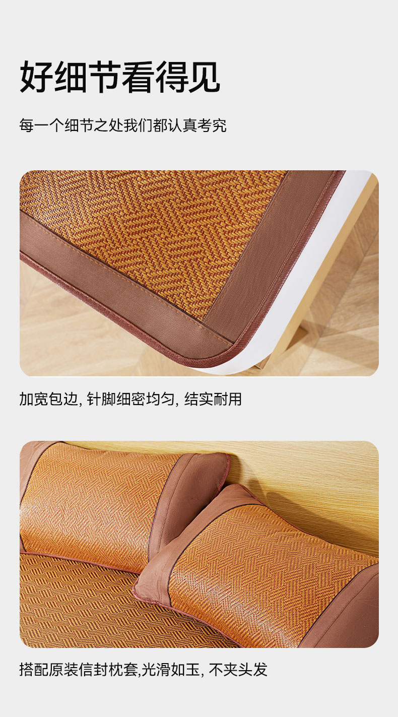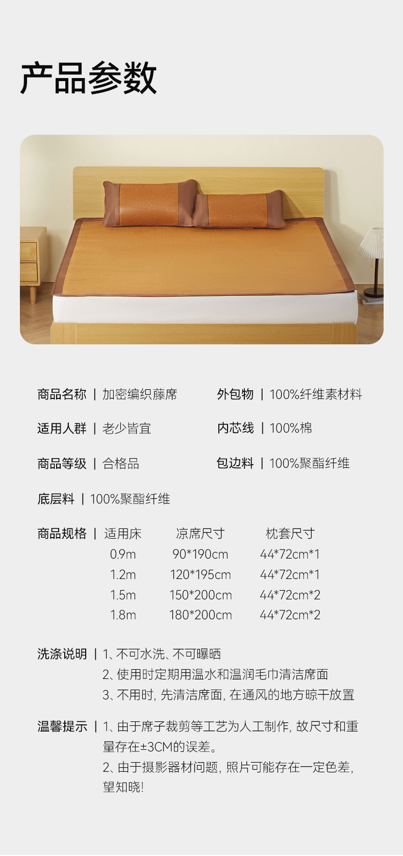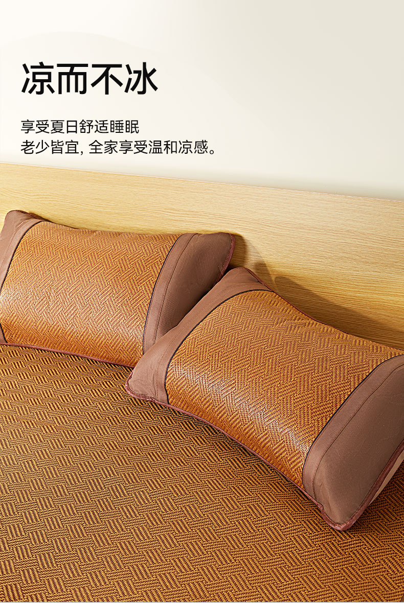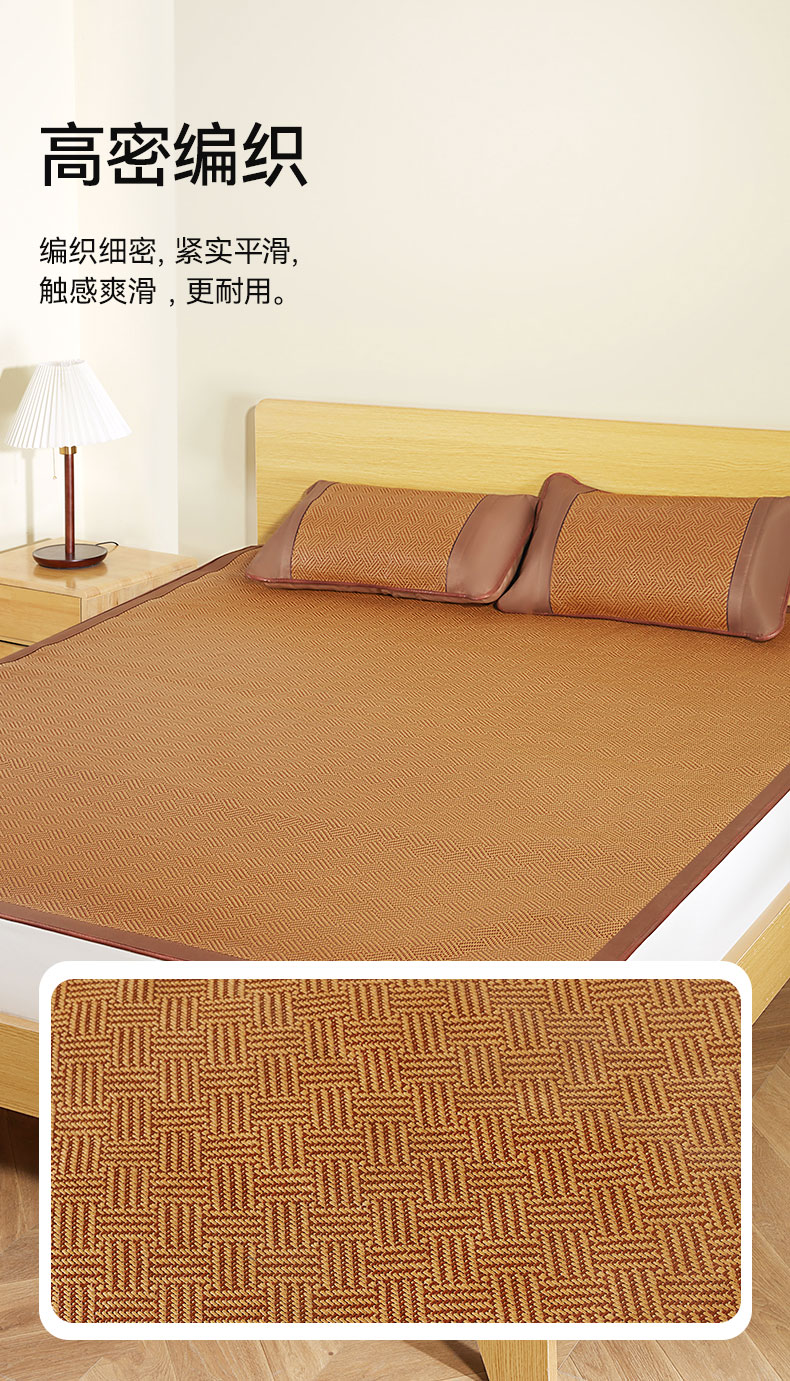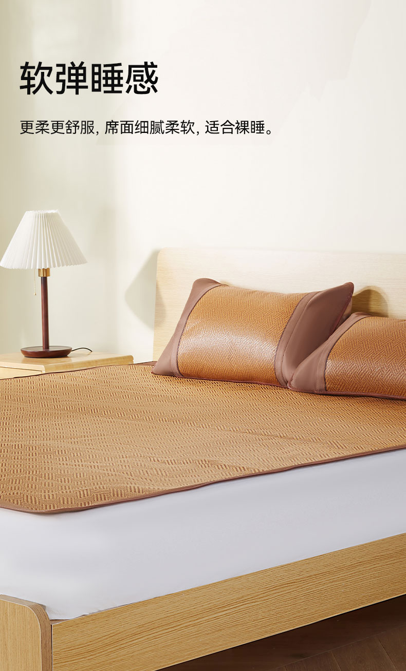 洁丽雅藤席凉席三件套夏季2024新款家用冰丝草席学生宿舍夏天编织