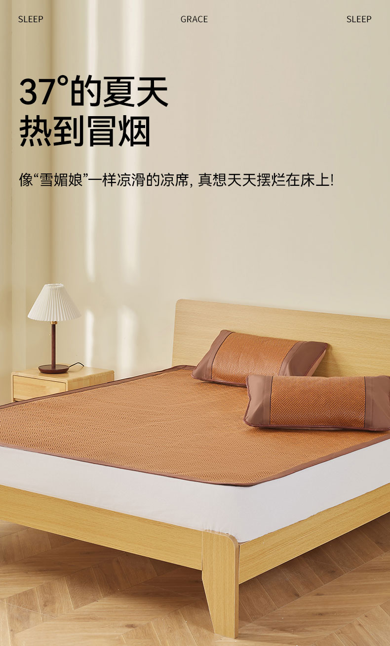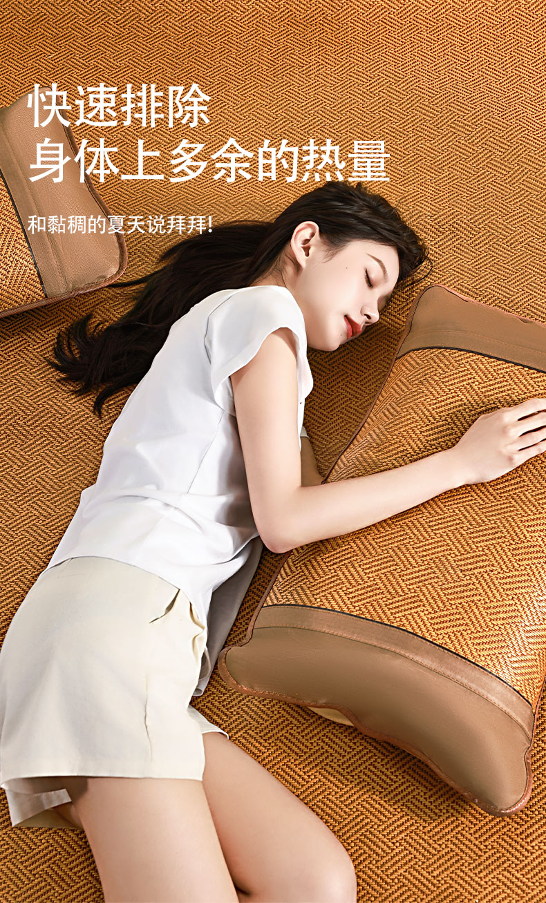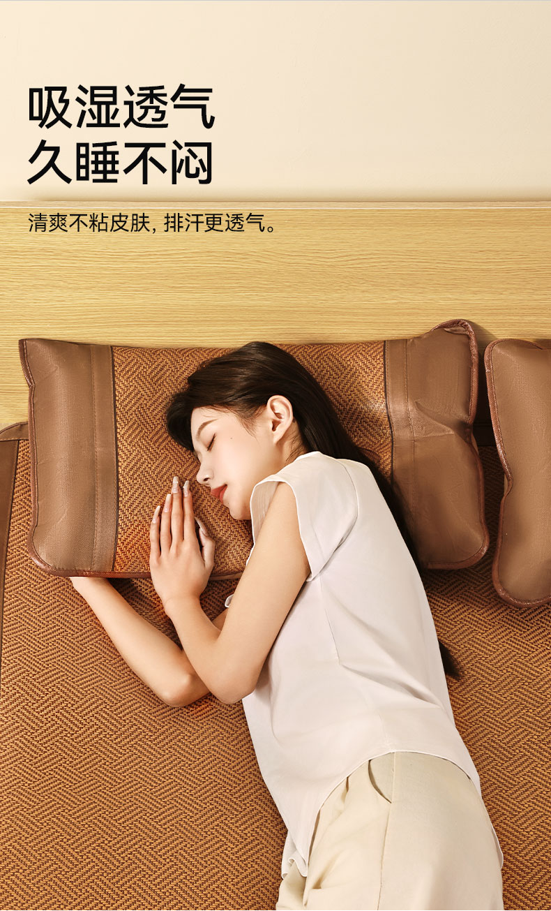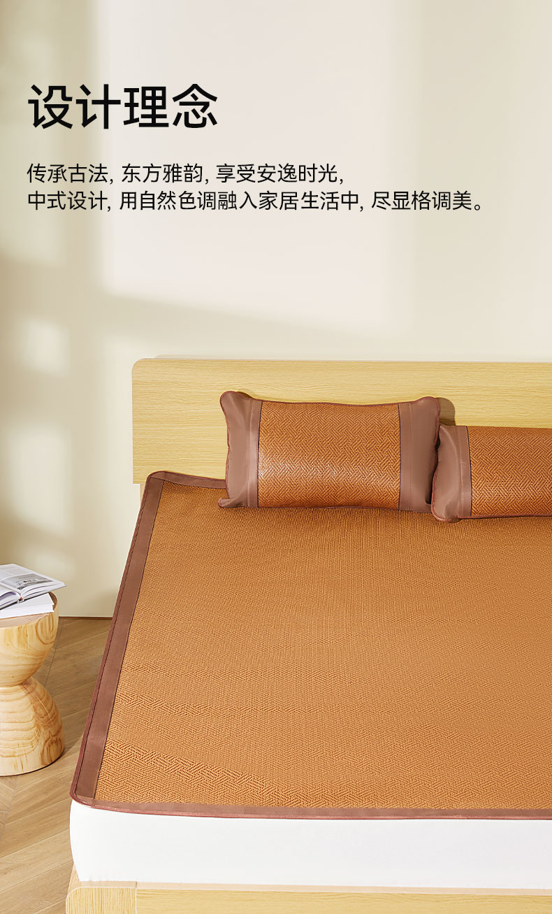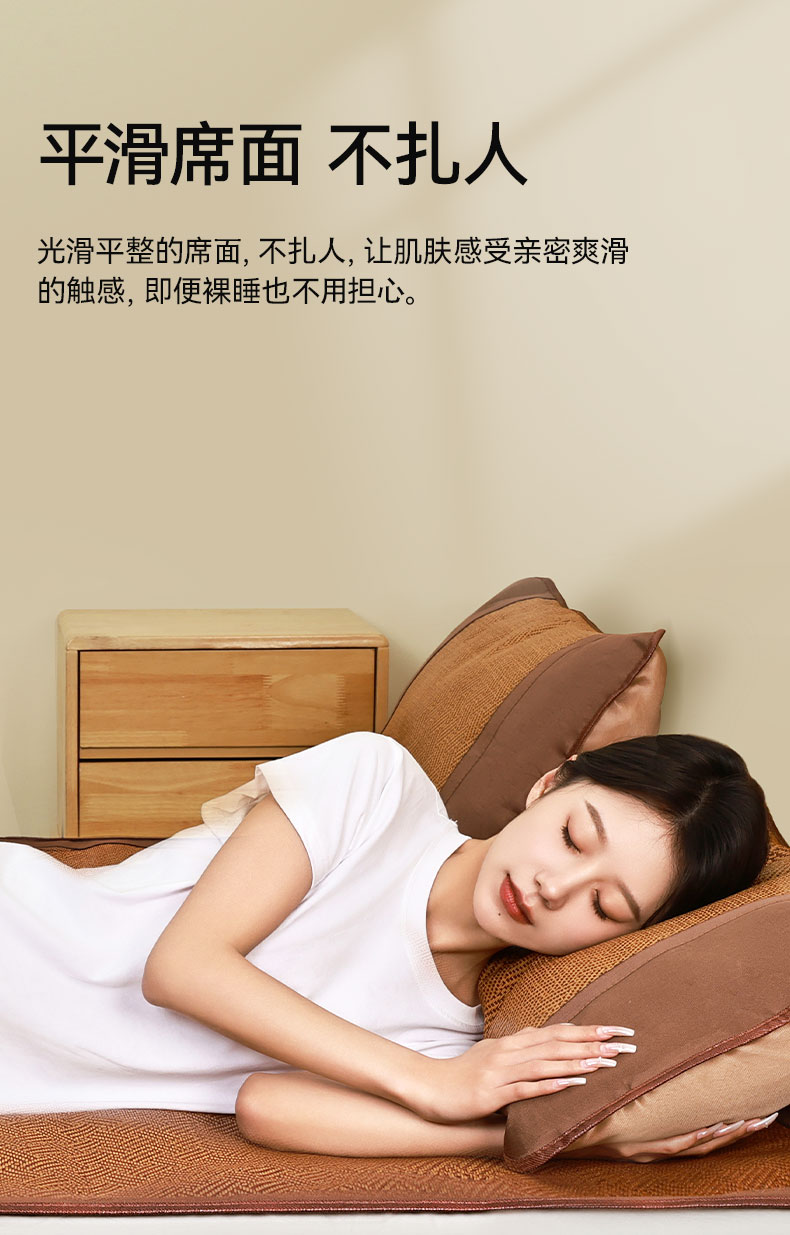 洁丽雅藤席凉席三件套夏季2024新款家用冰丝草席学生宿舍夏天编织